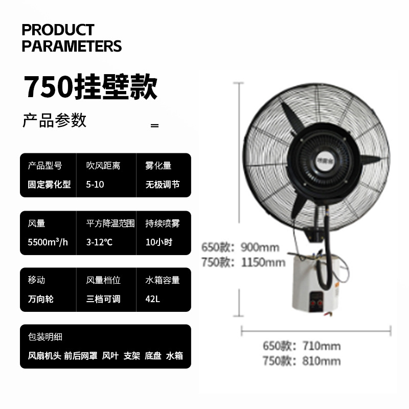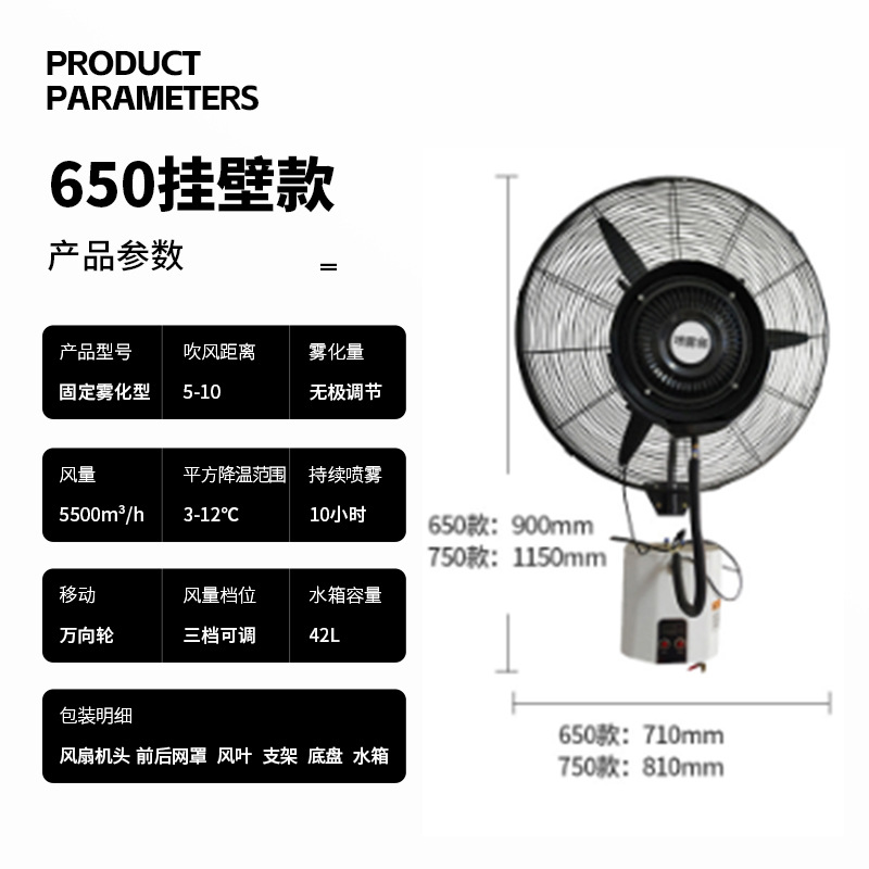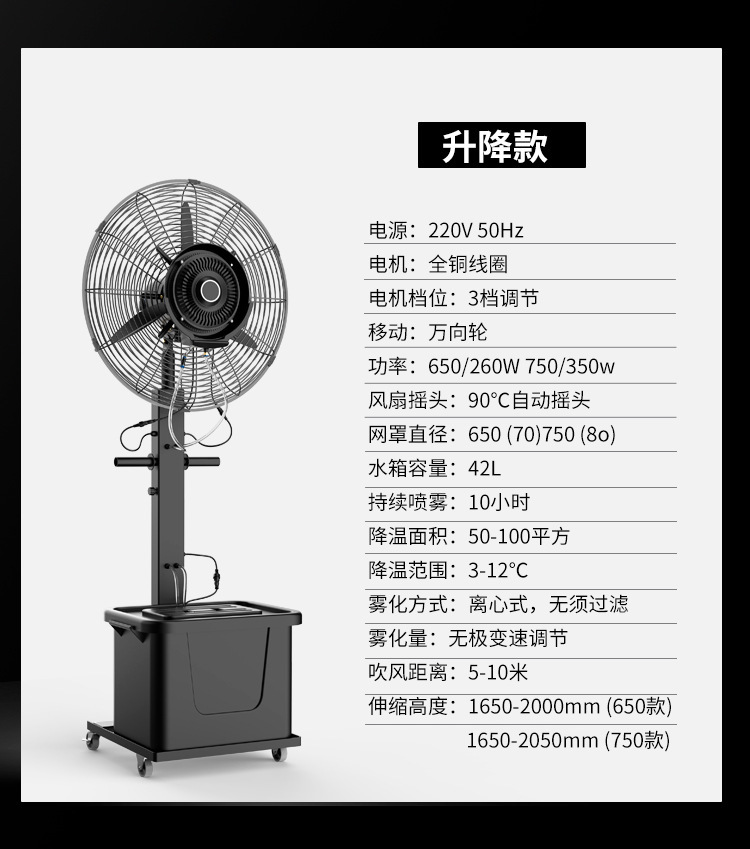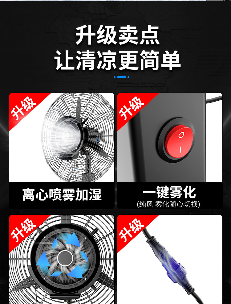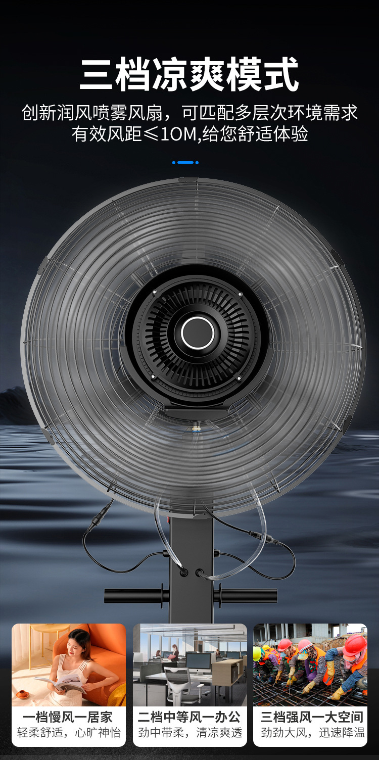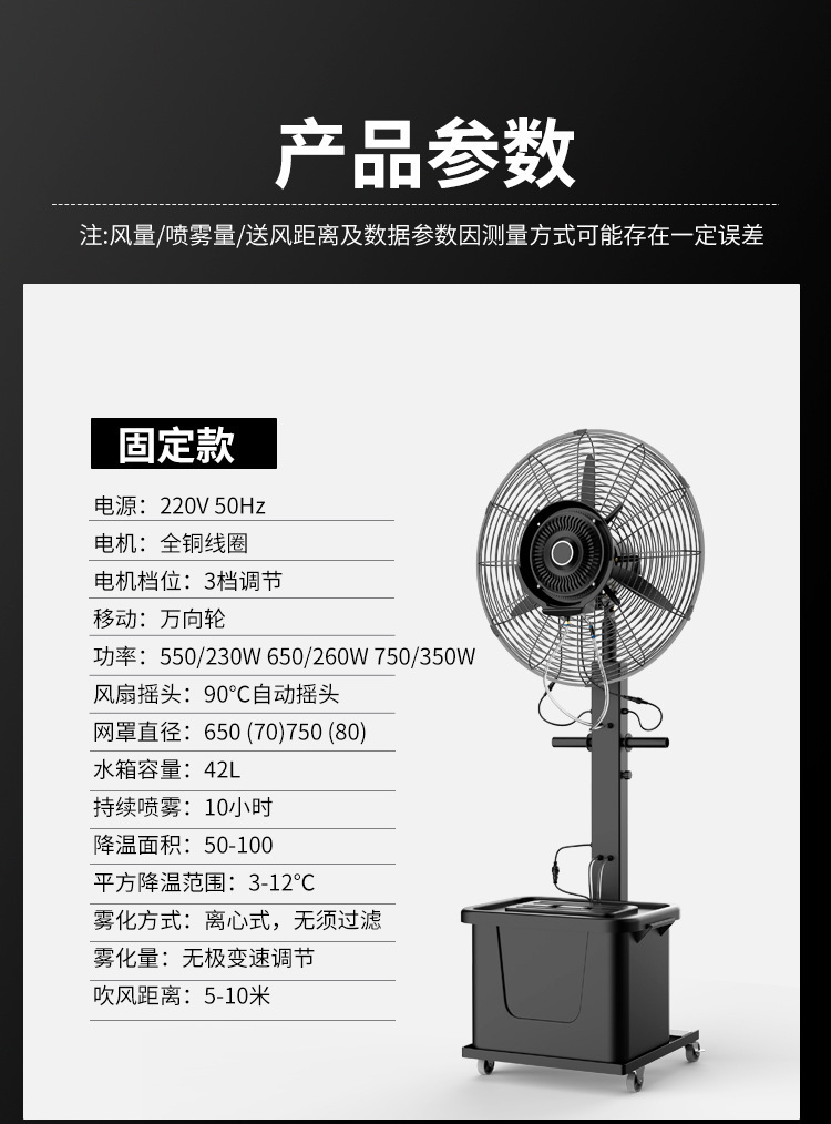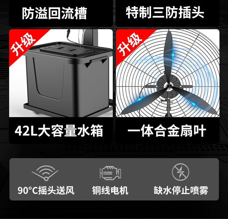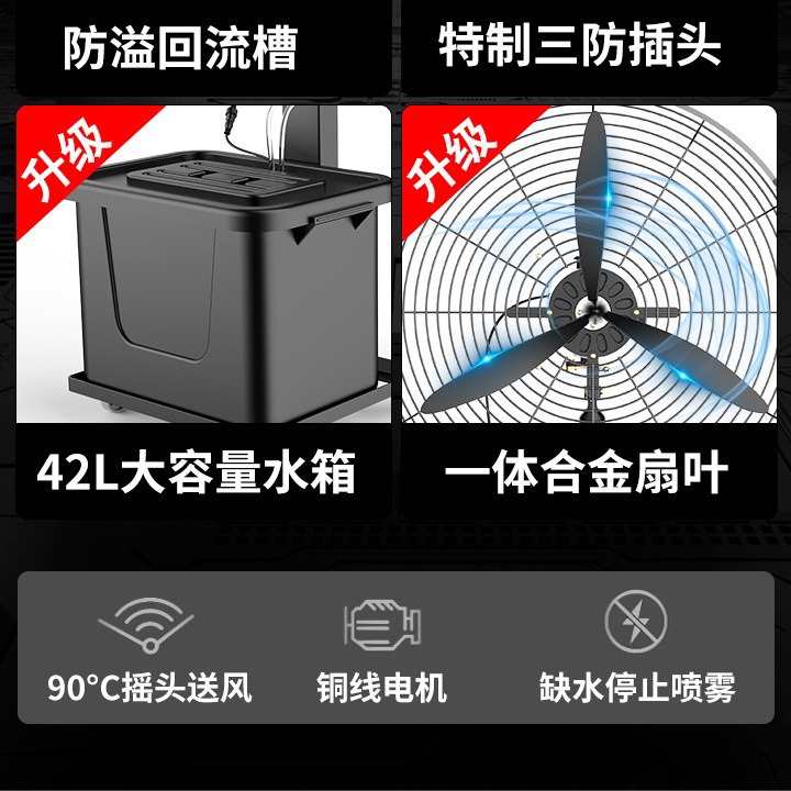 豪华工业喷雾风扇降温加湿雾化冰水制冷风扇大功率强力户外落地扇