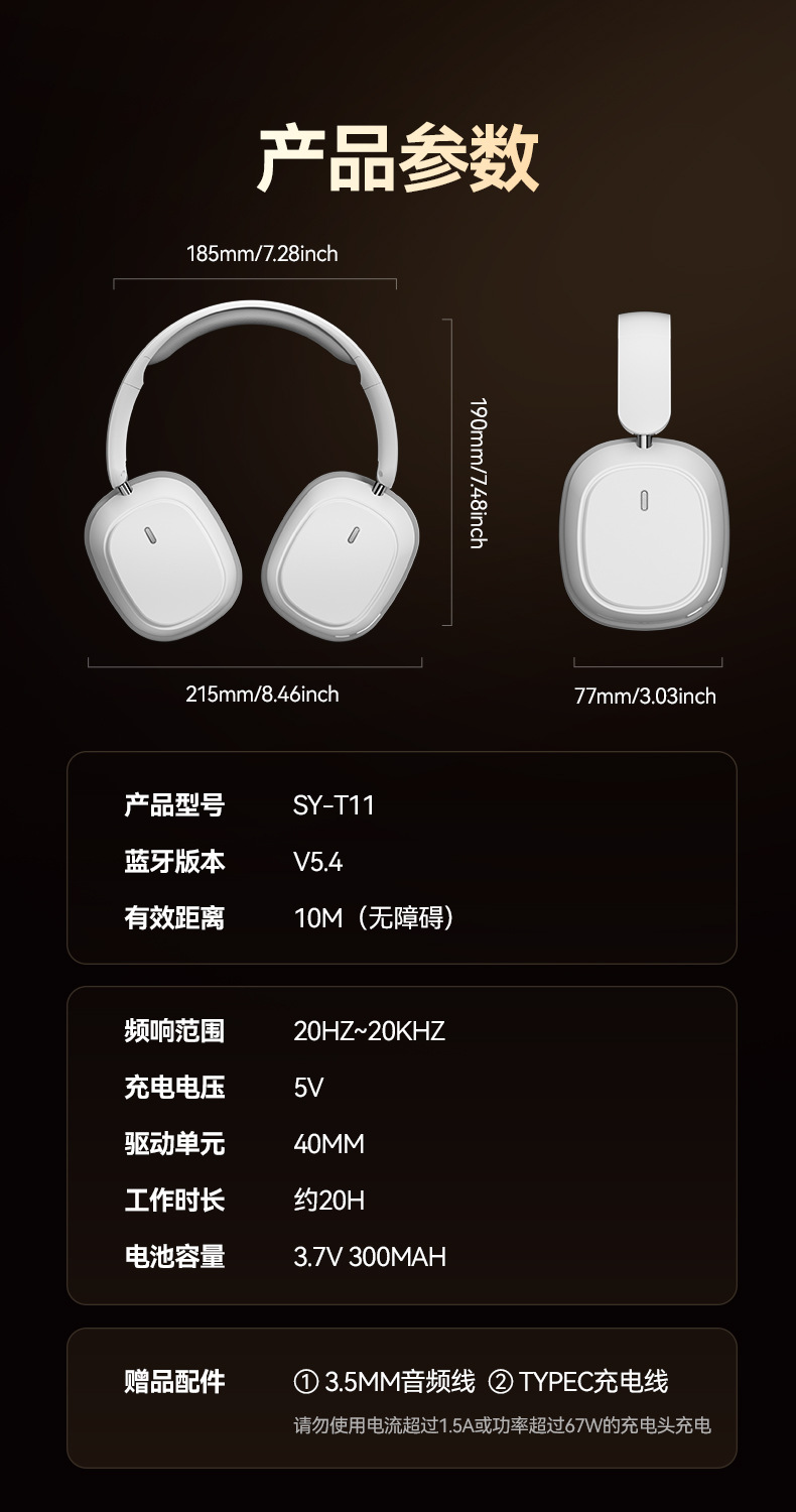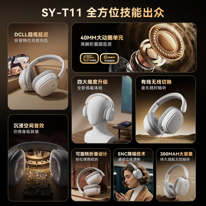 SY-T11 跨境蓝牙耳机笔记本电脑手机无线超长续航头戴式耳麦耳机