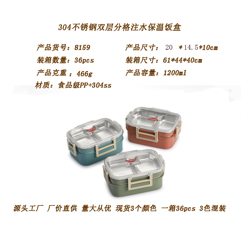 ins网红日式双层不锈钢分格饭盒学生食堂加热餐盒便携保温便当盒
