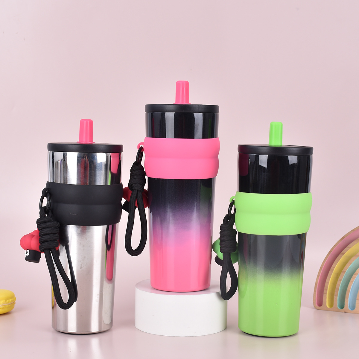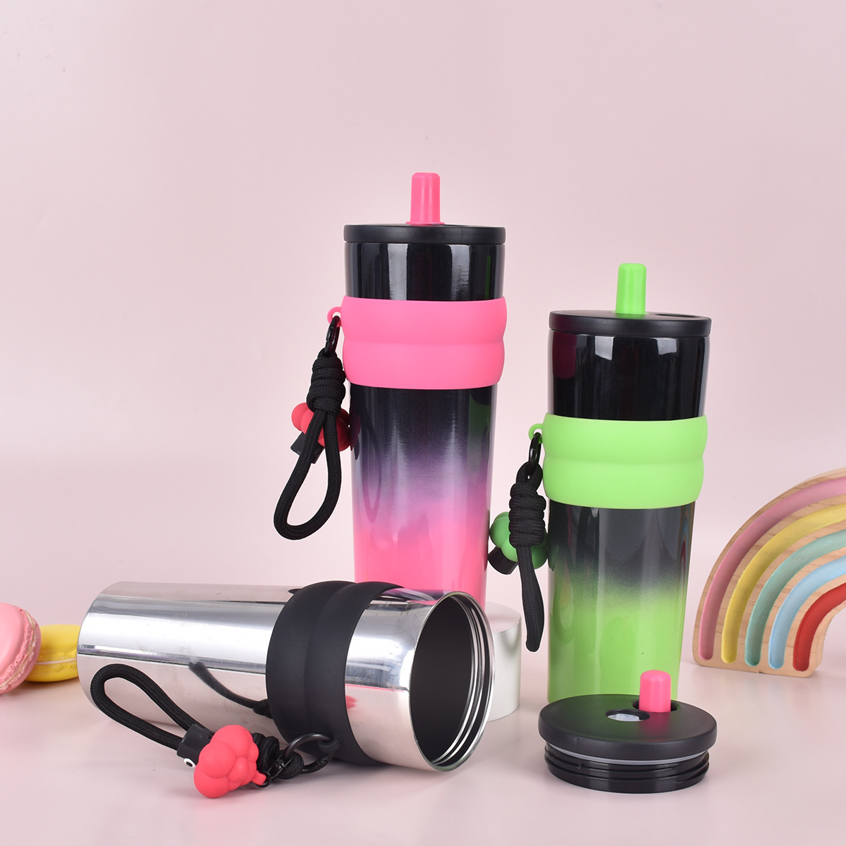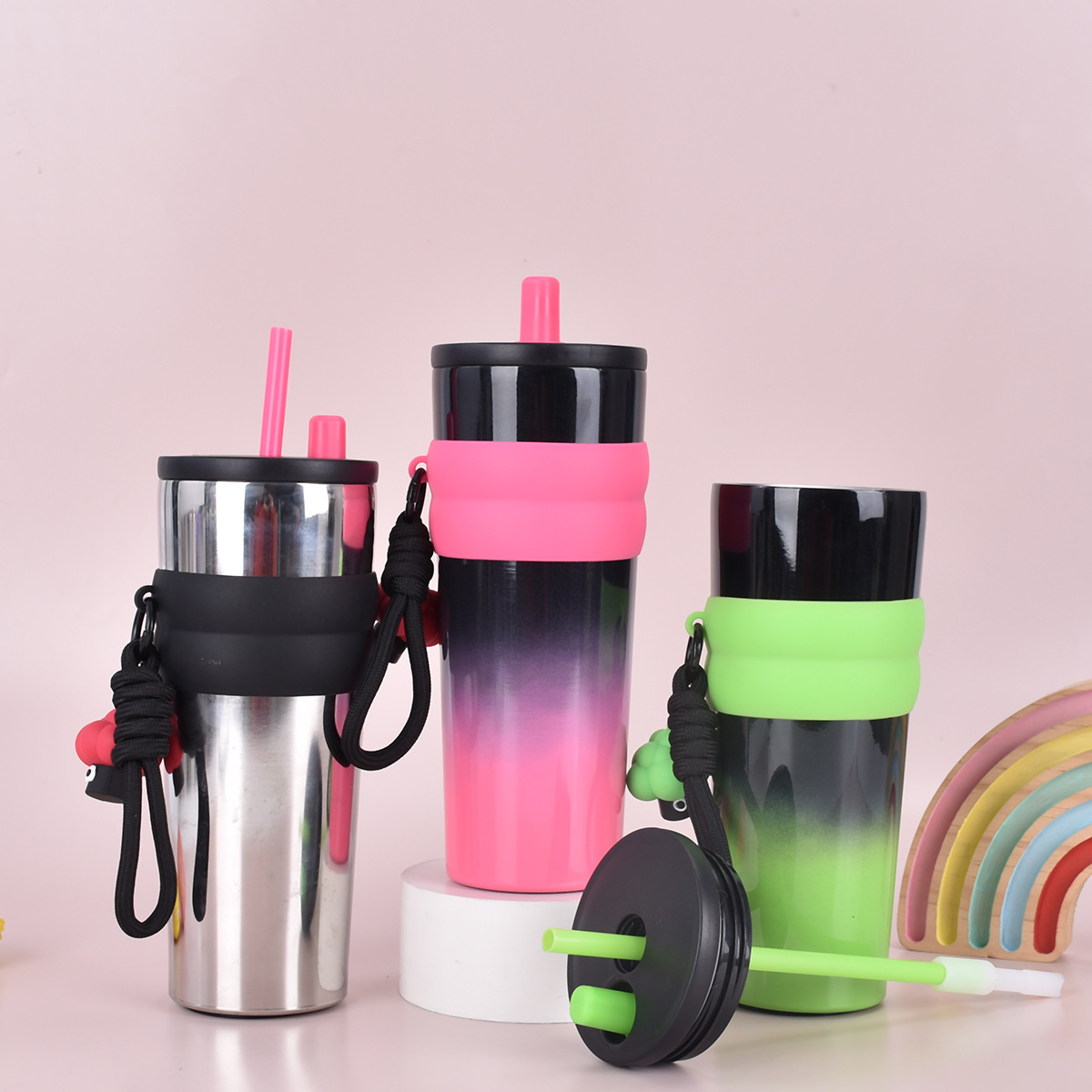 跨境高颜值保温杯渐变带吸管随行咖啡杯极光星夜带提绳冰霸杯批发