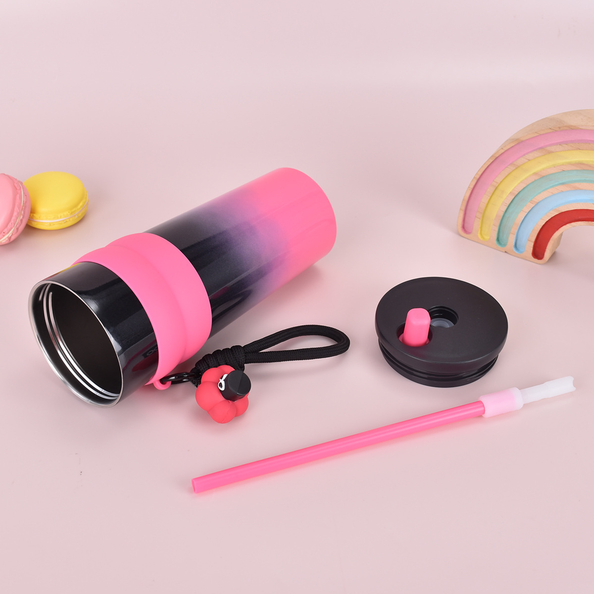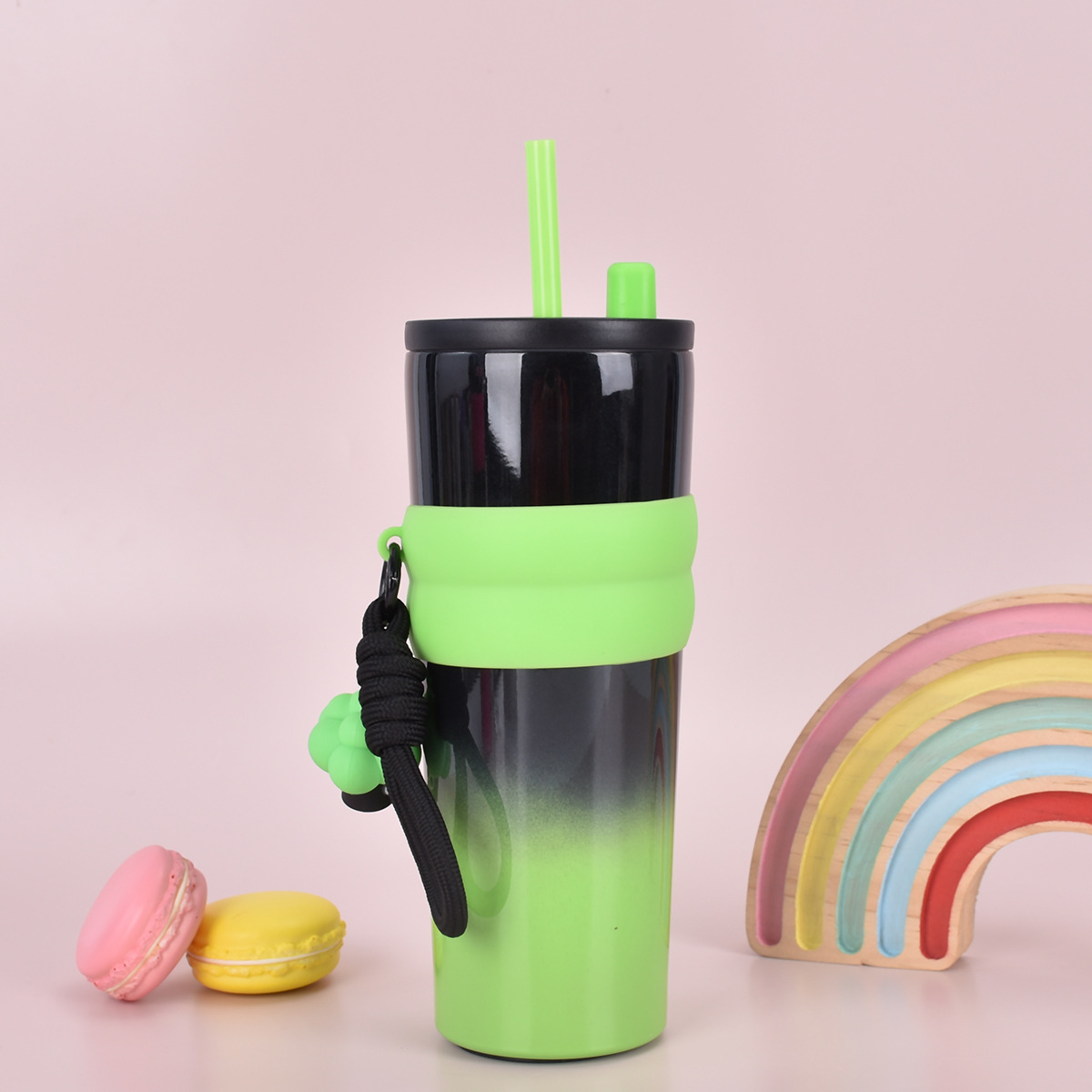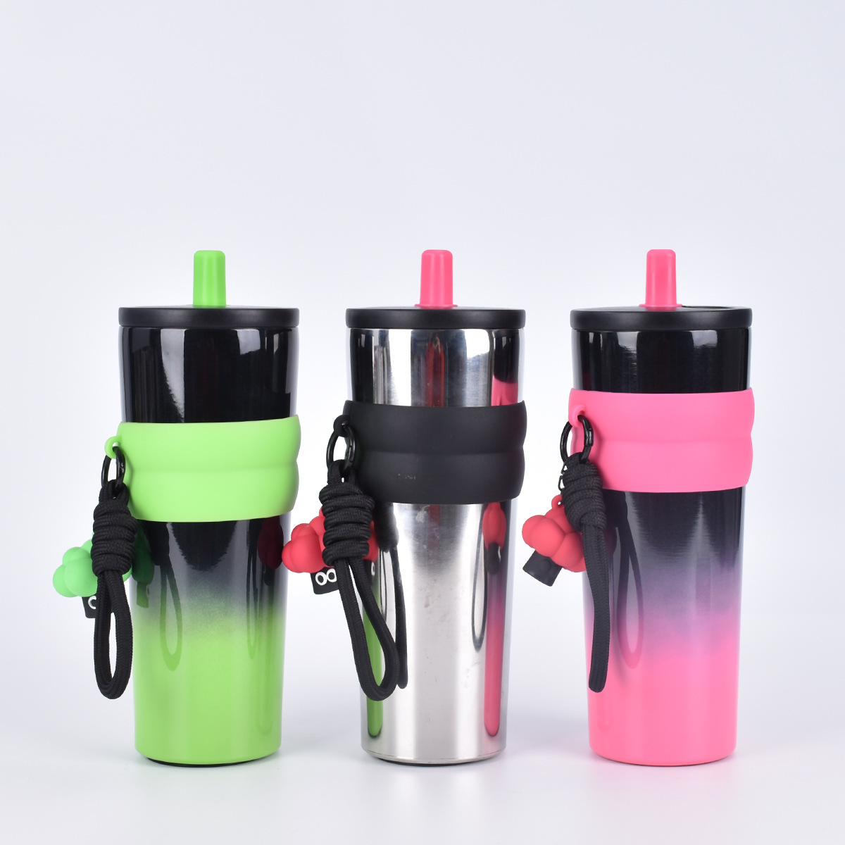 跨境高颜值保温杯渐变带吸管随行咖啡杯极光星夜带提绳冰霸杯批发