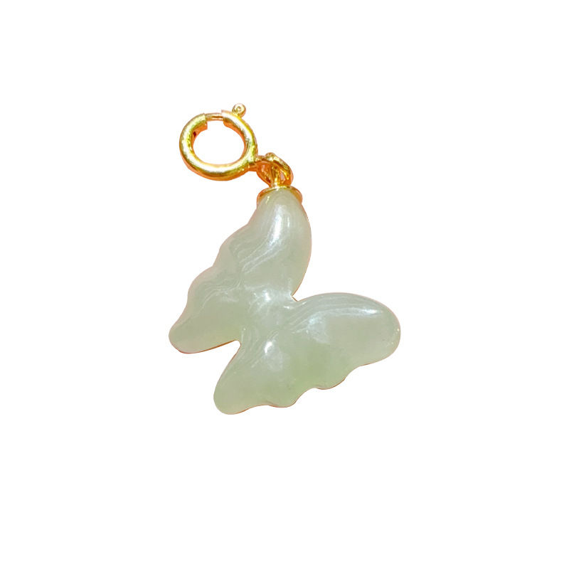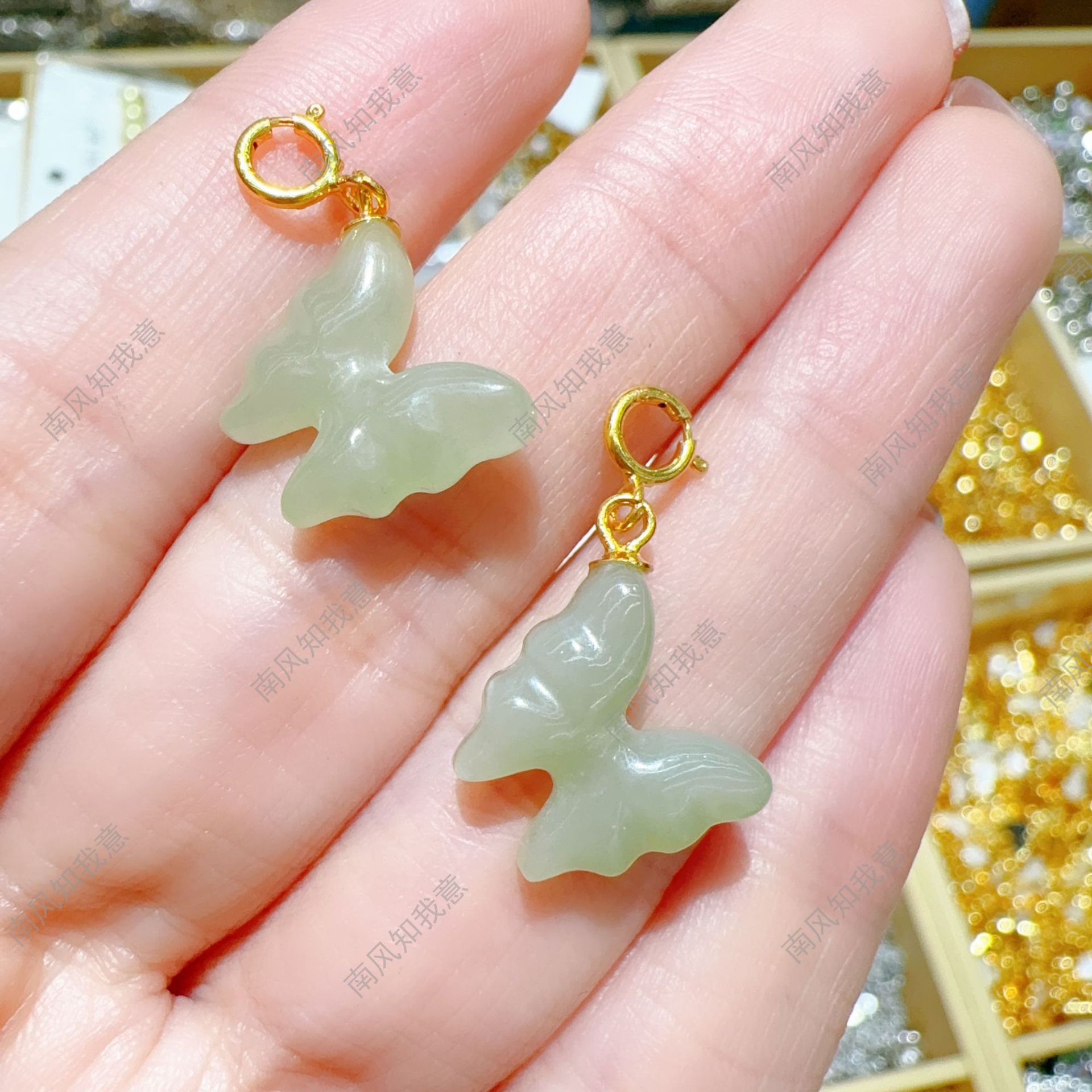 s925 silver natural hotian jade pendant butterfly spring fastener head chain pendant ancient style alluvial gold niche accessories