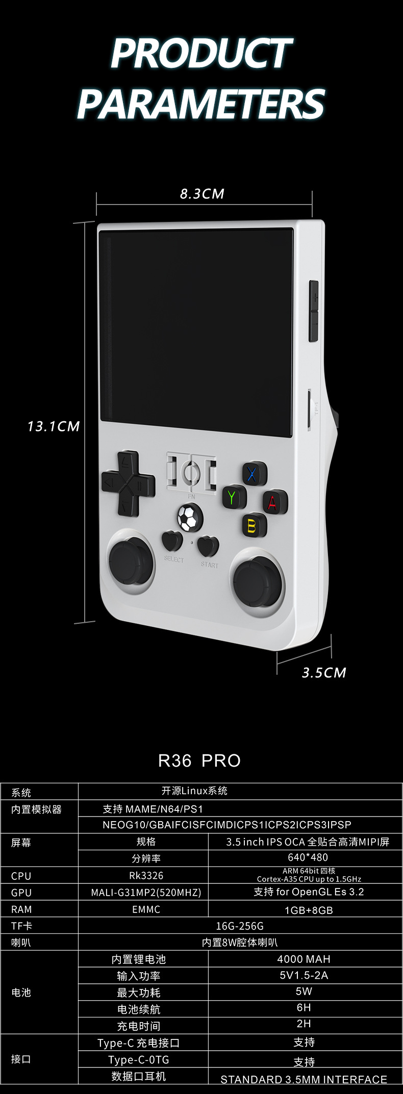 R36pro 跨境游戏机Linux系统经典复古街机游戏开源掌上便携游戏机