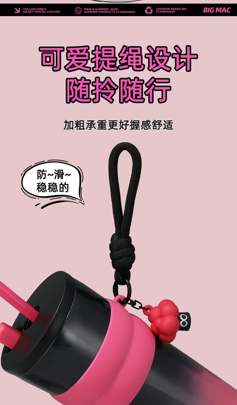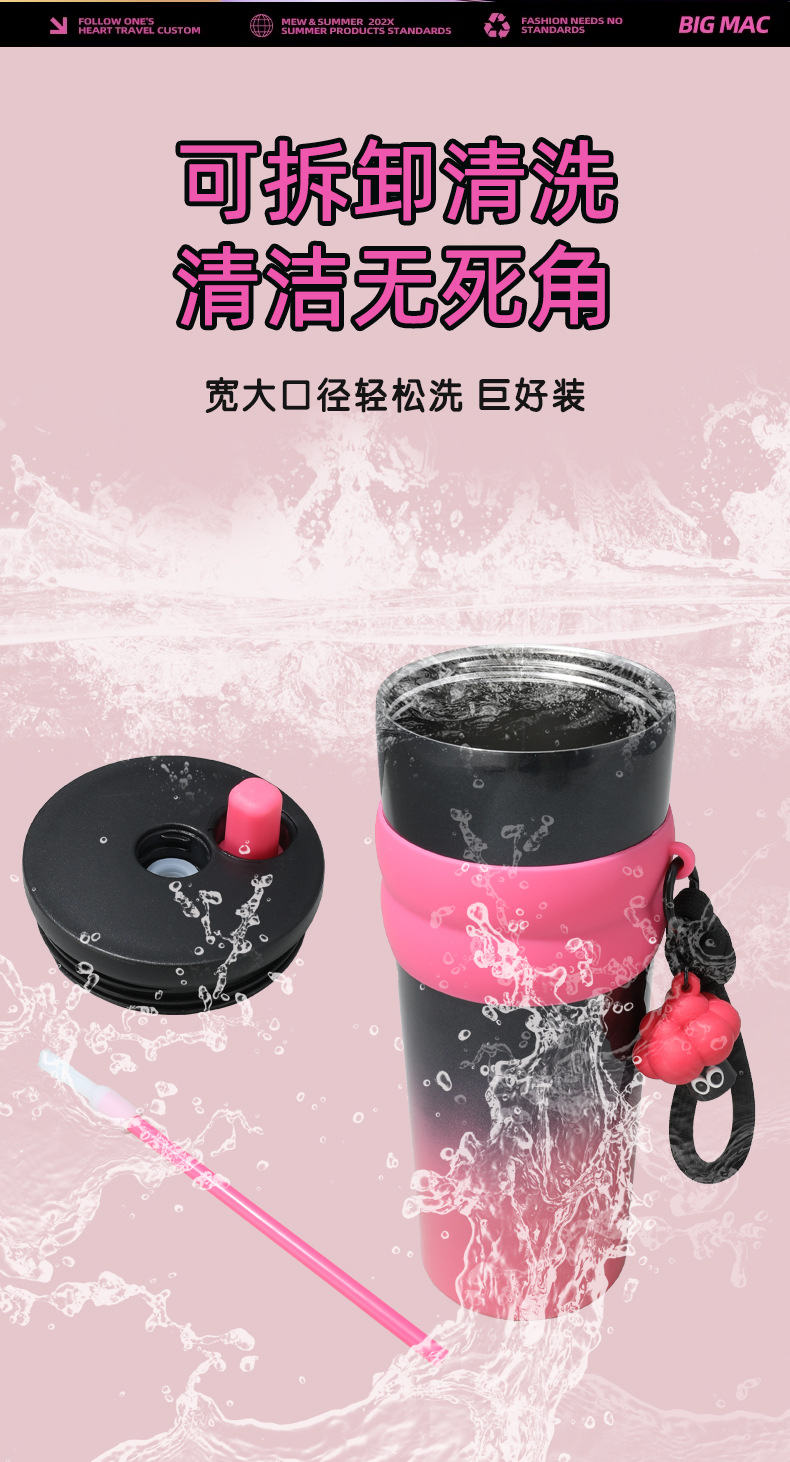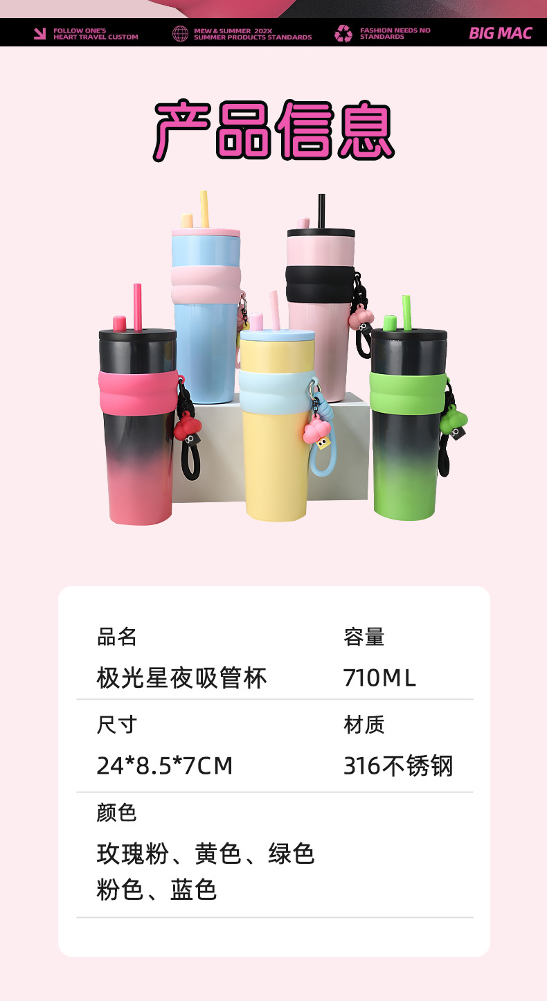 跨境高颜值保温杯渐变带吸管随行咖啡杯极光星夜带提绳冰霸杯杯子