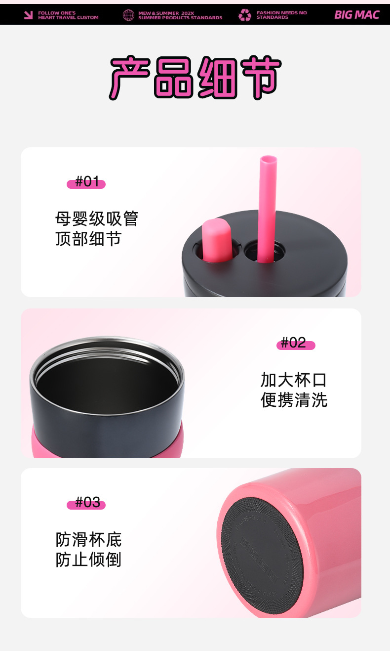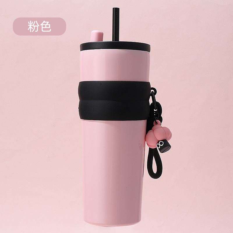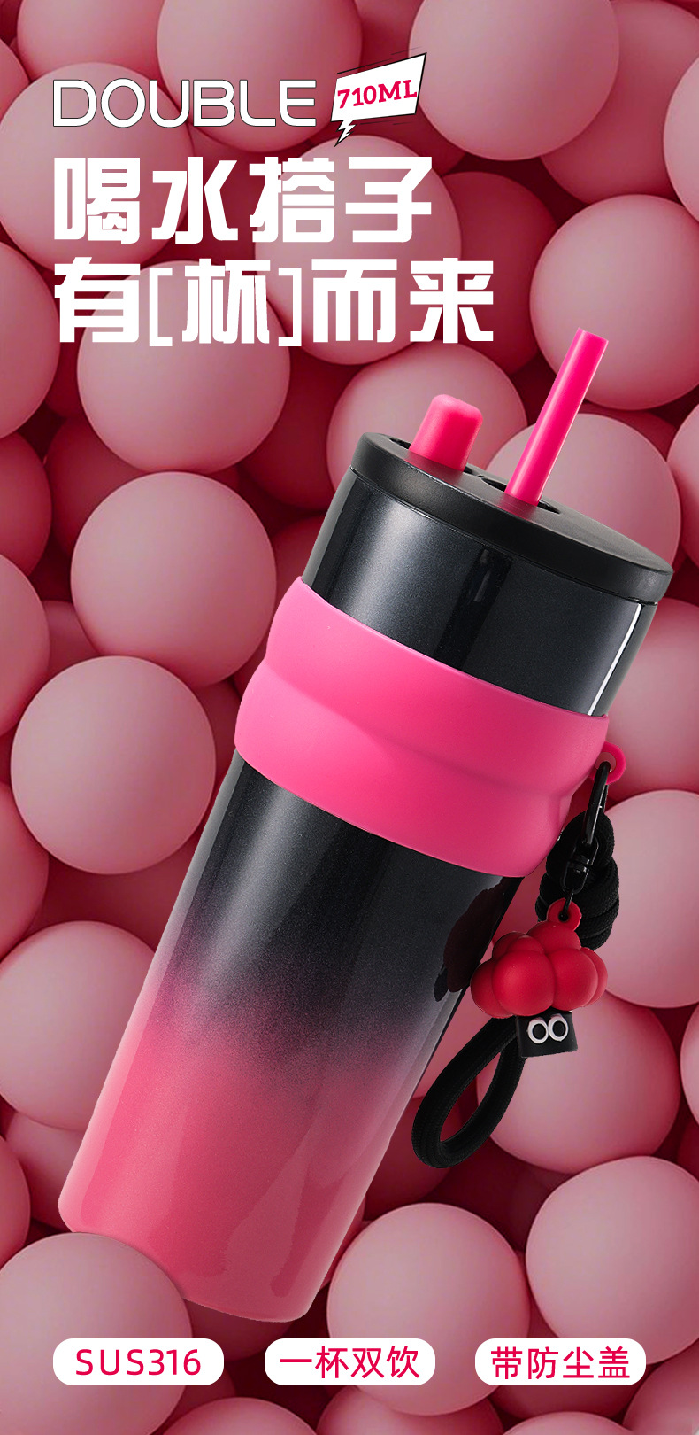 跨境高颜值保温杯渐变带吸管随行咖啡杯极光星夜带提绳冰霸杯杯子