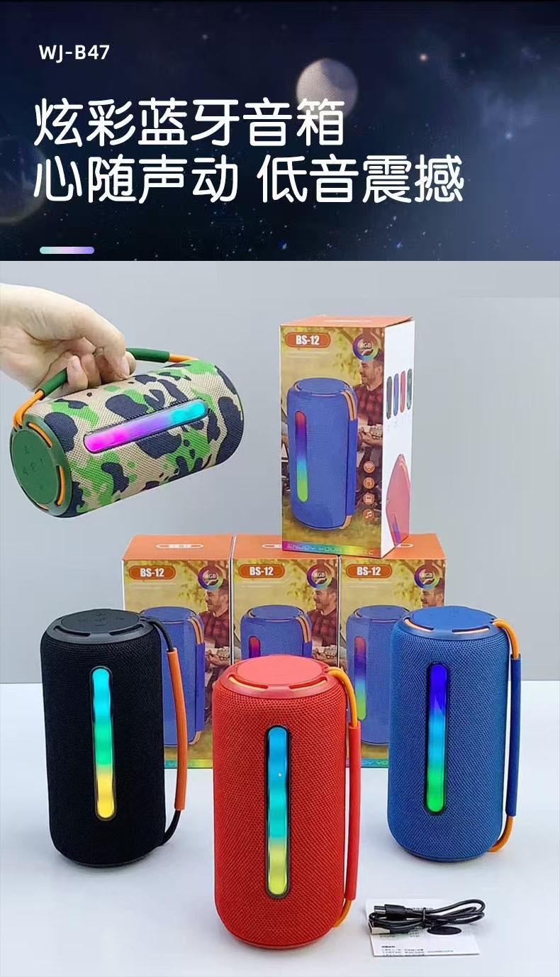 BS-12 跨境蓝牙音箱氛围灯户外手提低音炮家用高颜值桌面迷你音响