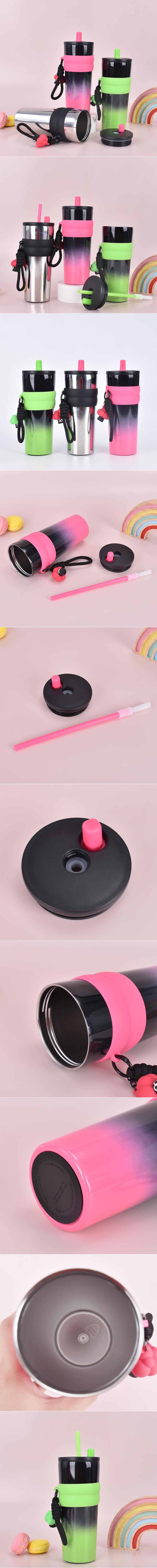 跨境高颜值保温杯渐变带吸管随行咖啡杯极光星夜带提绳冰霸杯批发