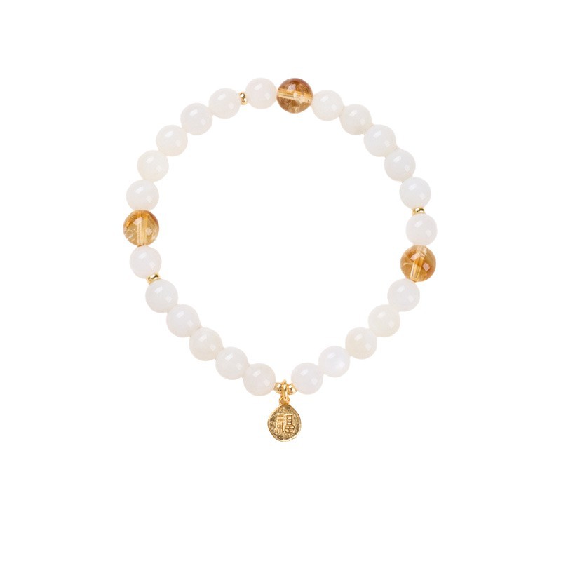 品名:【明曦】6mm月光石黄水晶 福字手链
