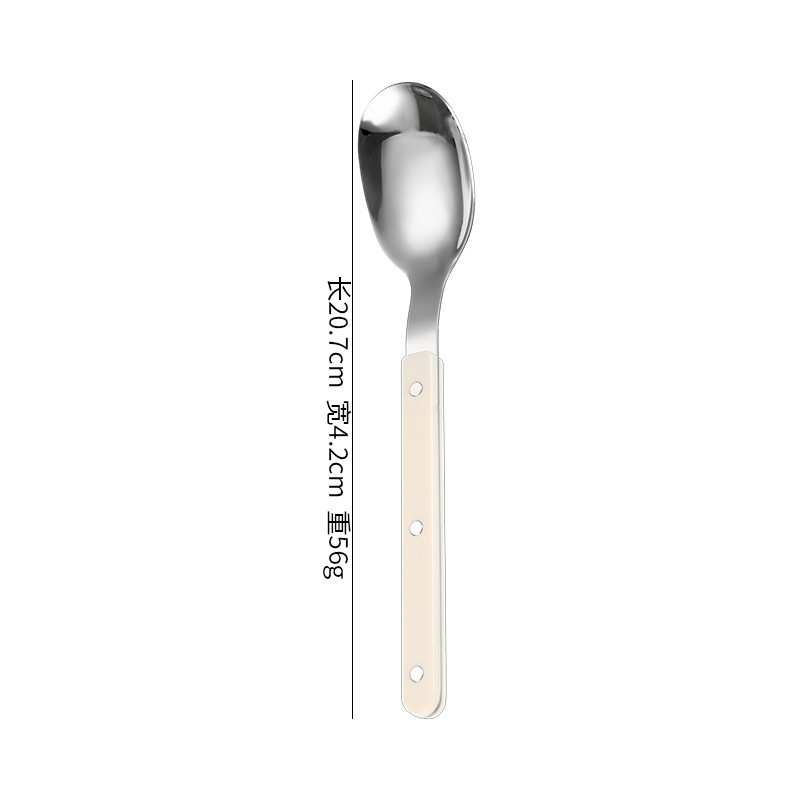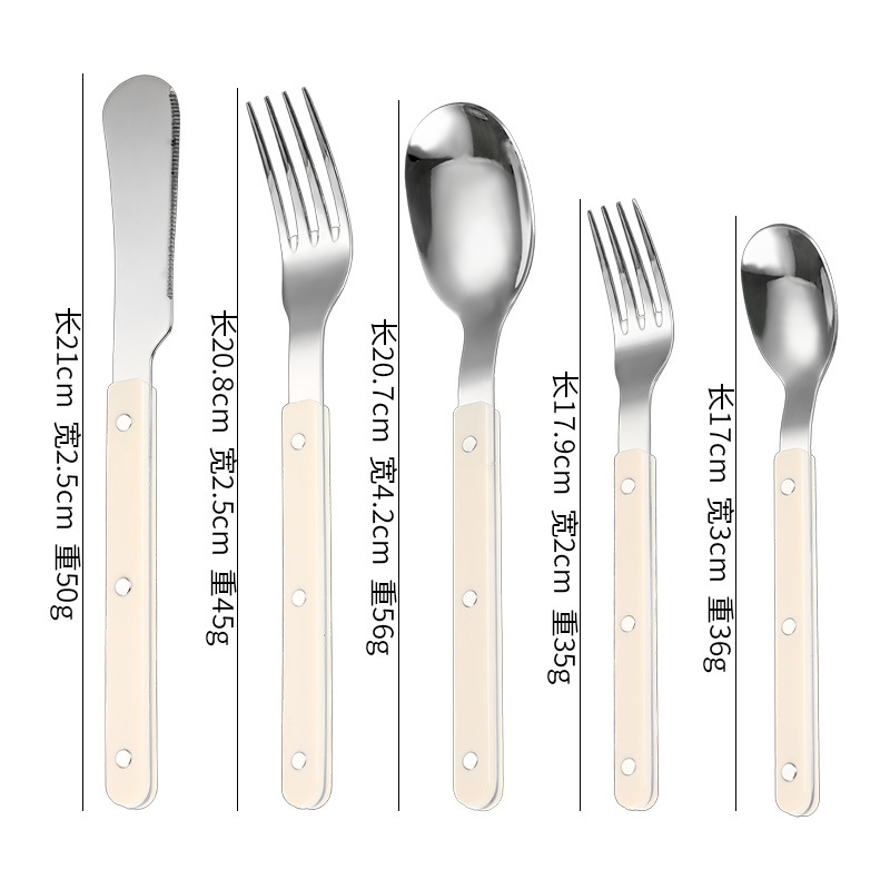 不锈钢柳钉夹柄430西餐刀叉勺餐具套装法式牛排刀叉甜品勺叉5件套