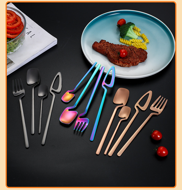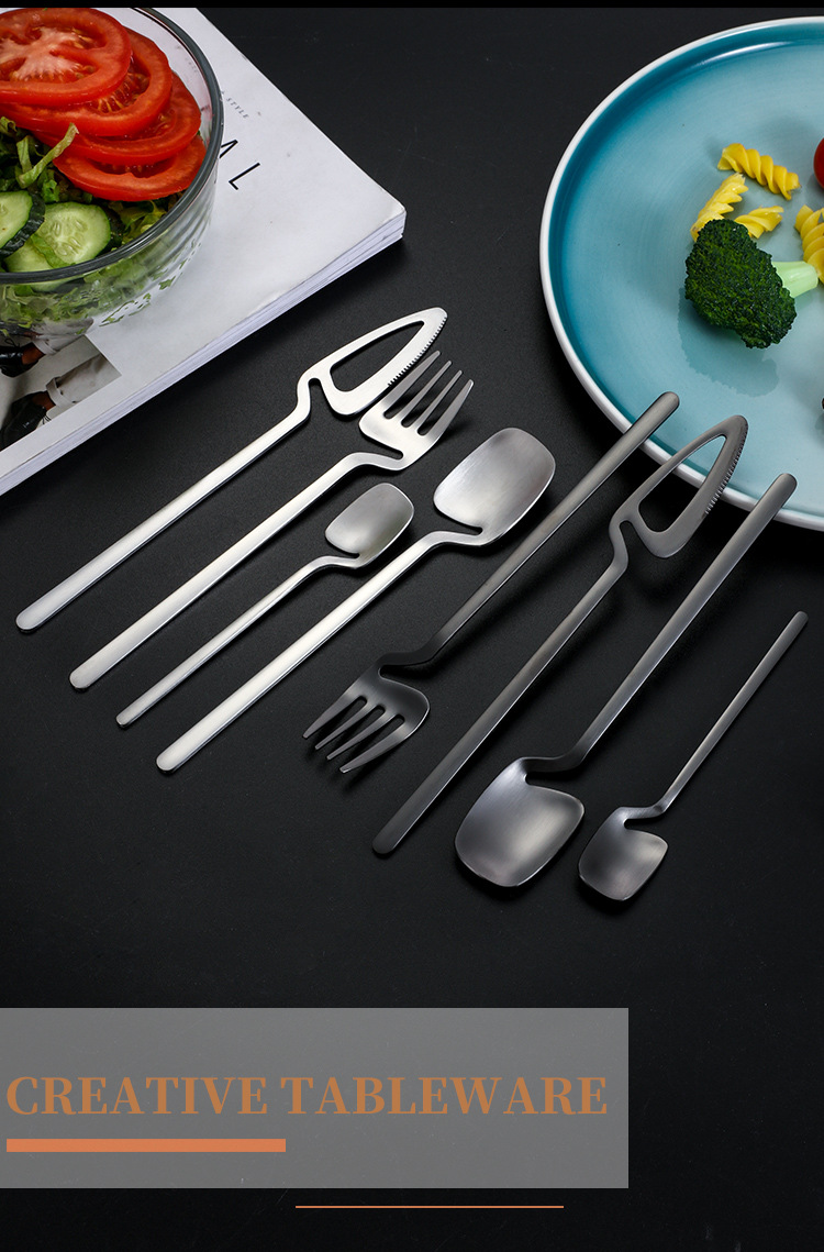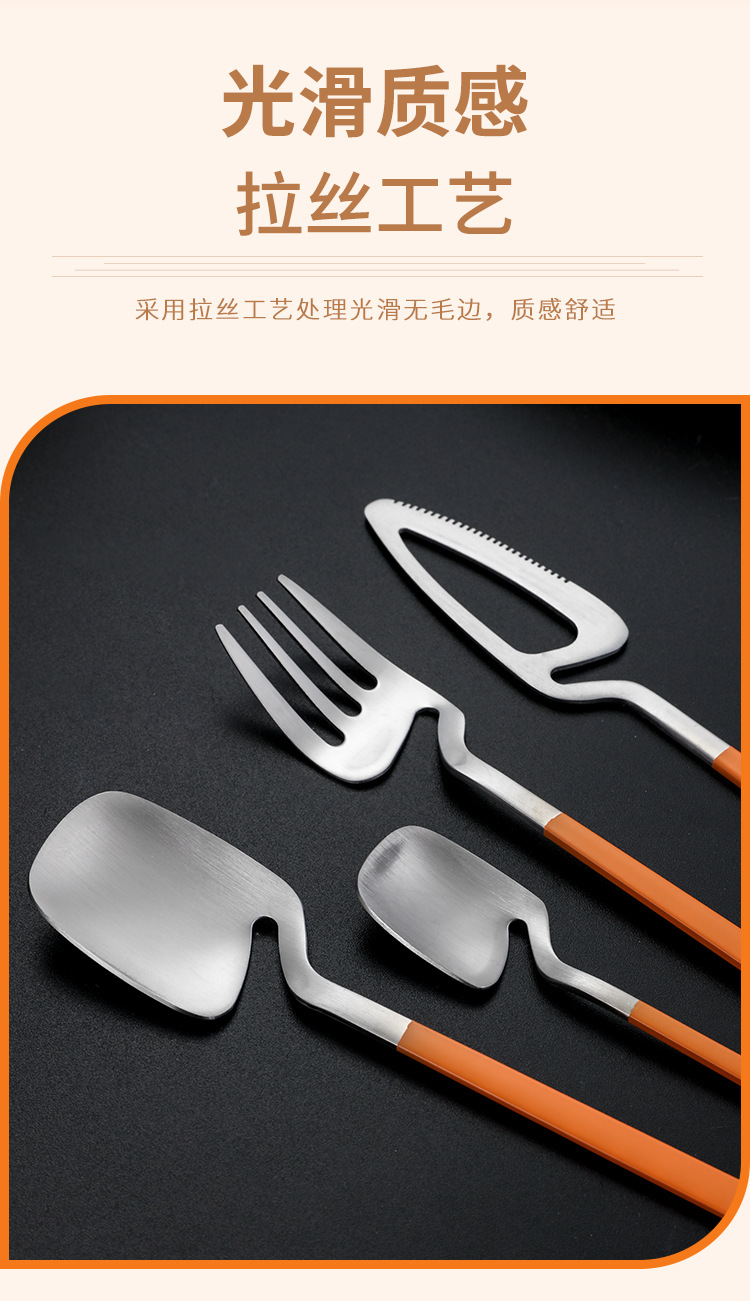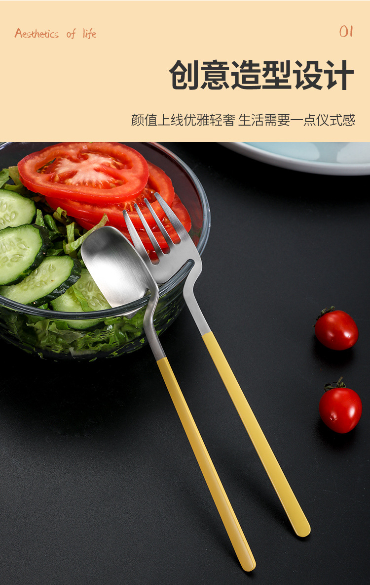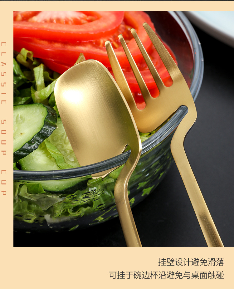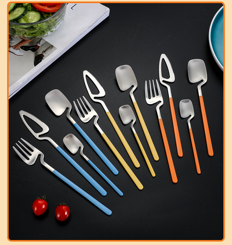 304不锈钢咖啡甜品勺挂杯壁西餐具牛排刀叉勺酒店砂光勺子四件套