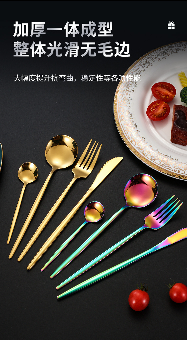 跨境不锈钢葡萄牙餐具刀叉勺四件套酒店西餐具牛排刀叉便携套装