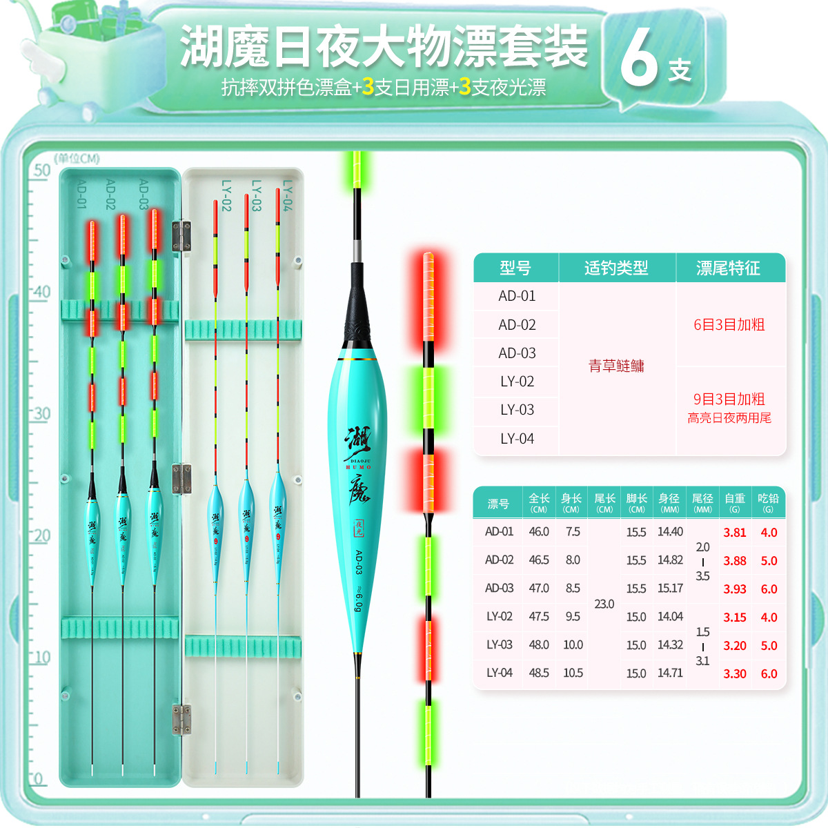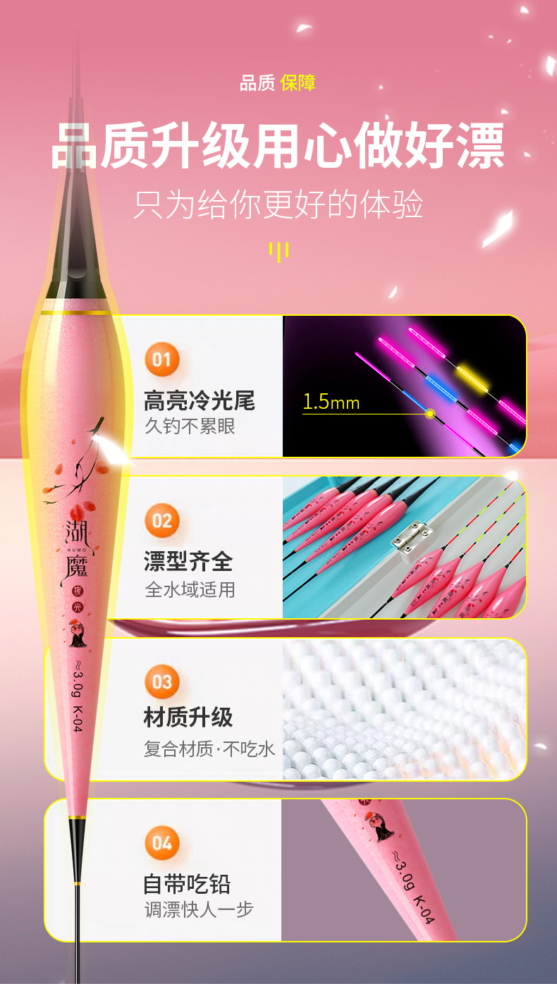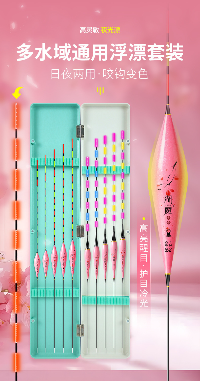 湖魔鱼漂套装一整套带漂盒夜光漂日夜两用电子漂加粗醒目纳米浮漂