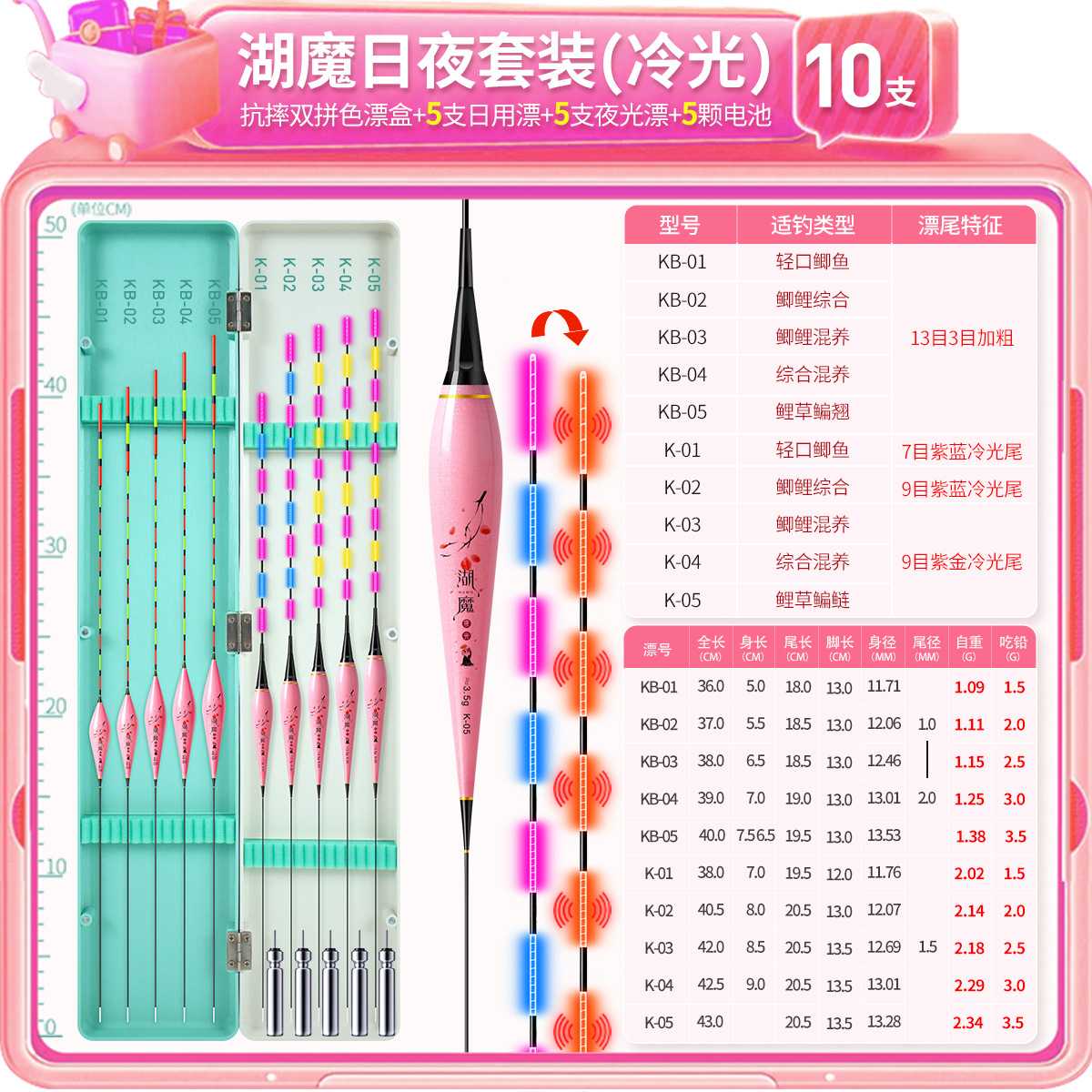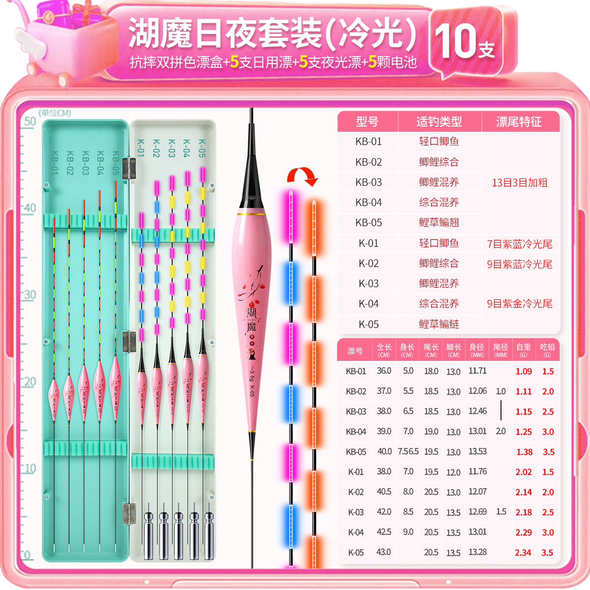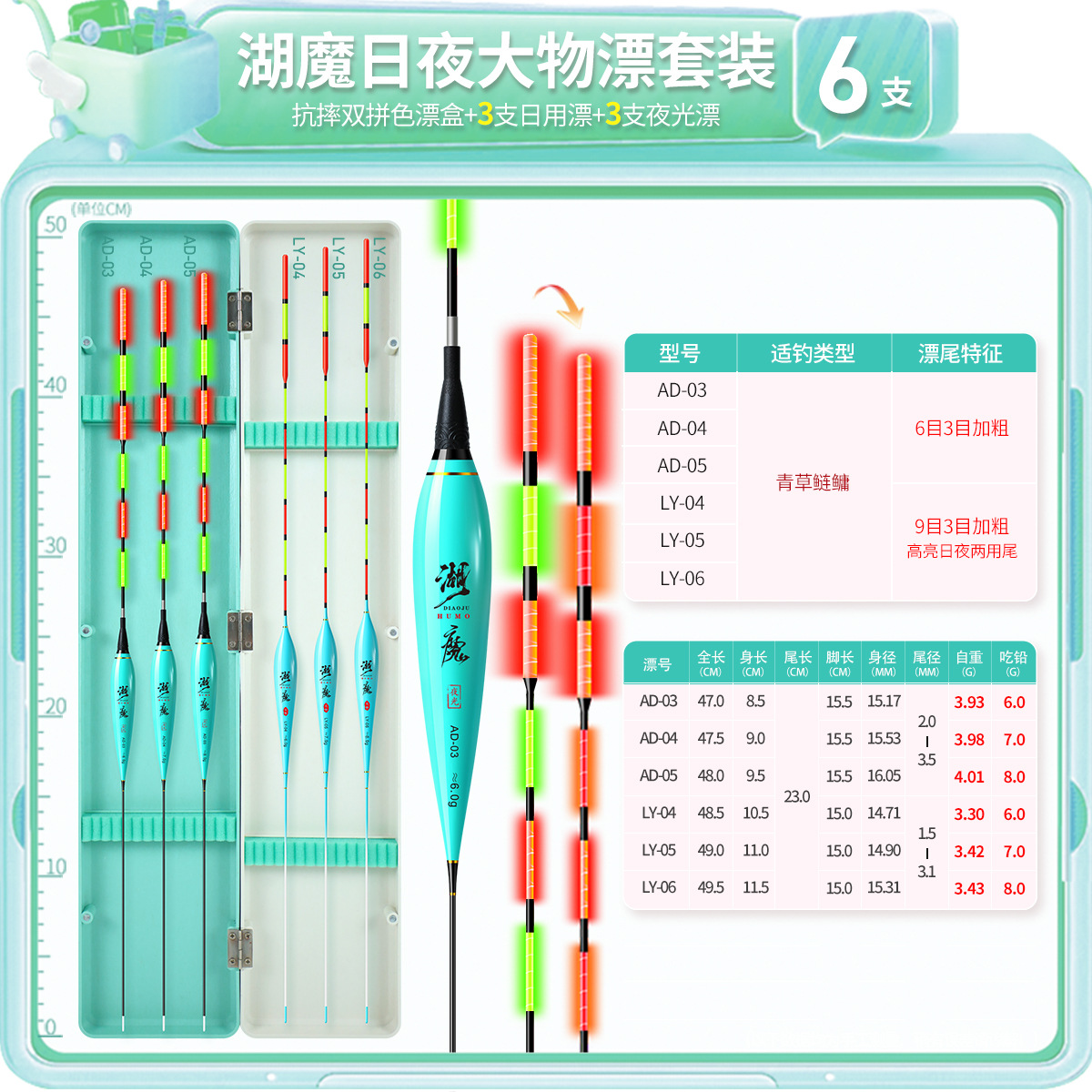 湖魔鱼漂套装一整套带漂盒夜光漂日夜两用电子漂加粗醒目纳米浮漂