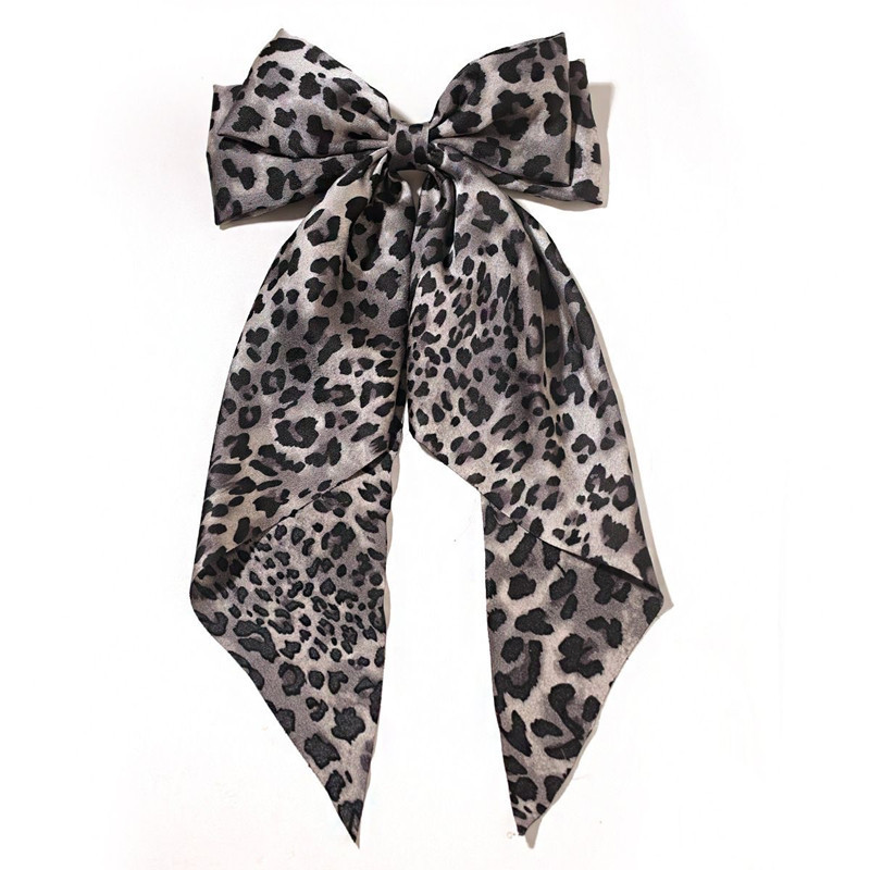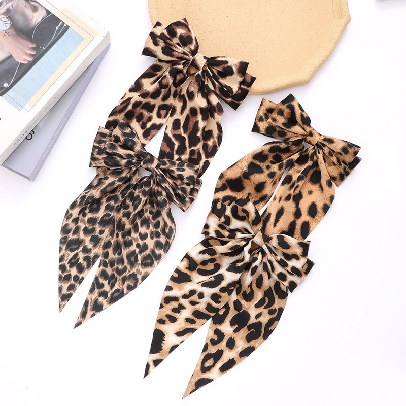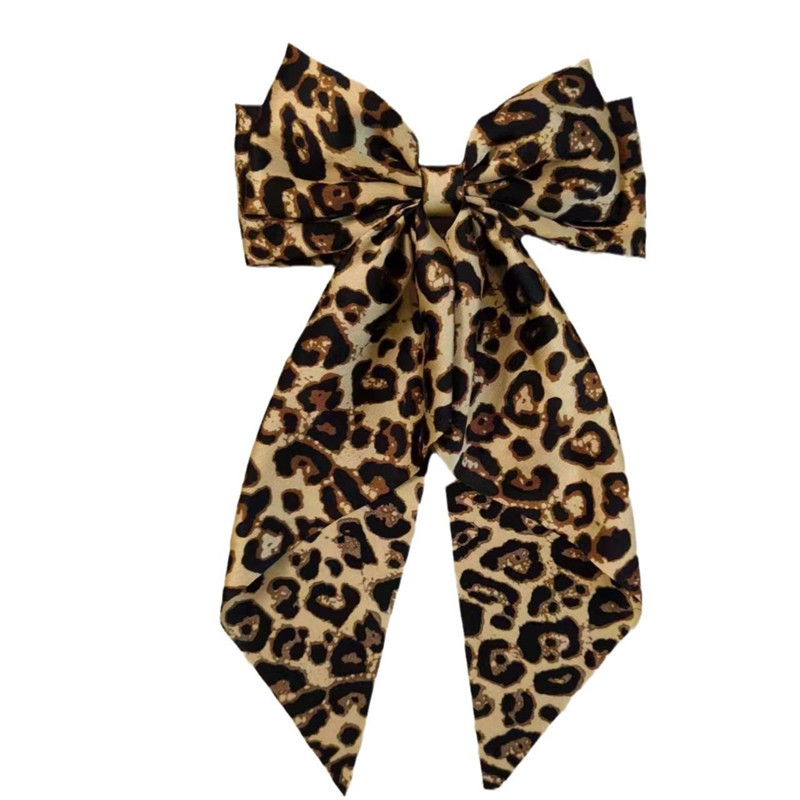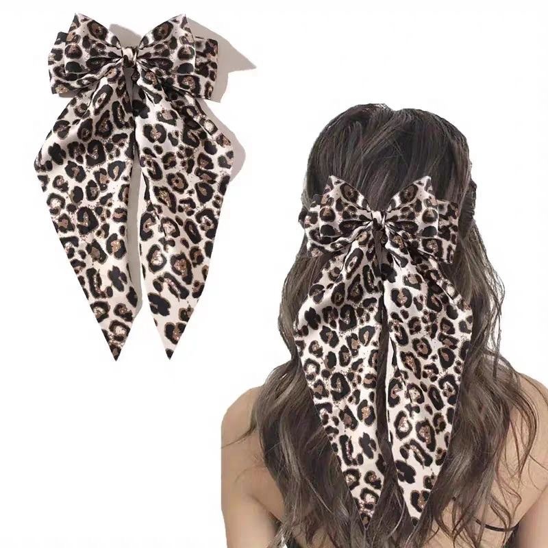 优雅豹纹蝴蝶结飘带弹簧夹甜美后脑勺发夹欧美节日派对头饰女批发