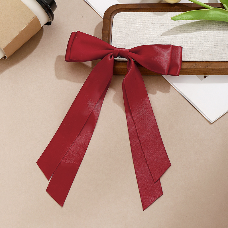 跨境热卖甜美蝴蝶结发夹顶夹韩版长款飘带鸭嘴夹发卡高级感配饰品