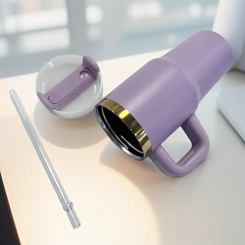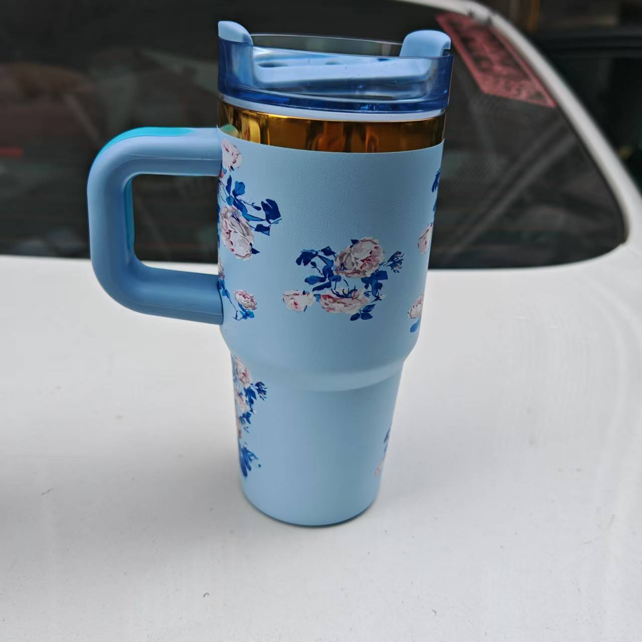 跨境热销美式304真空保温杯手柄便携车载汽车杯电镀3D冰霸杯定制
