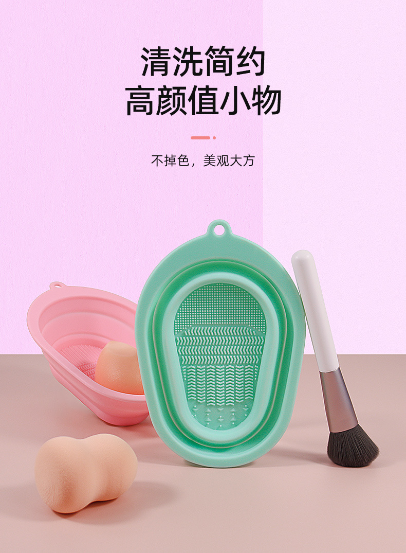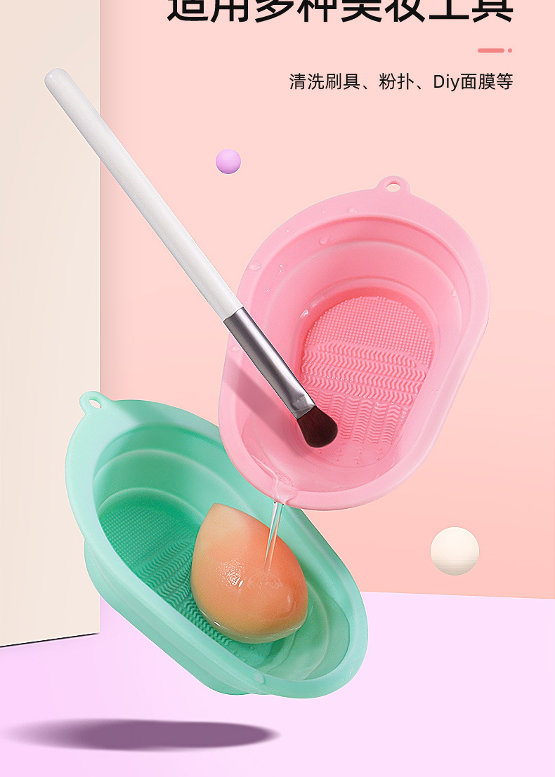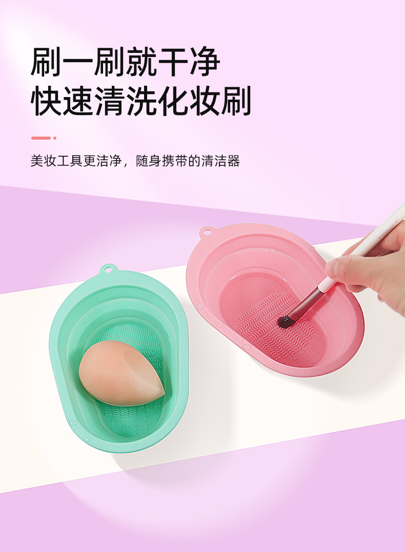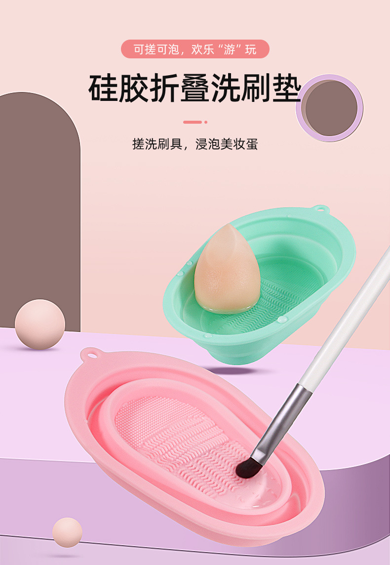 折叠硅胶洗刷垫 化妆工具清洗碗粉扑美妆工具清洗板化妆刷清洁垫