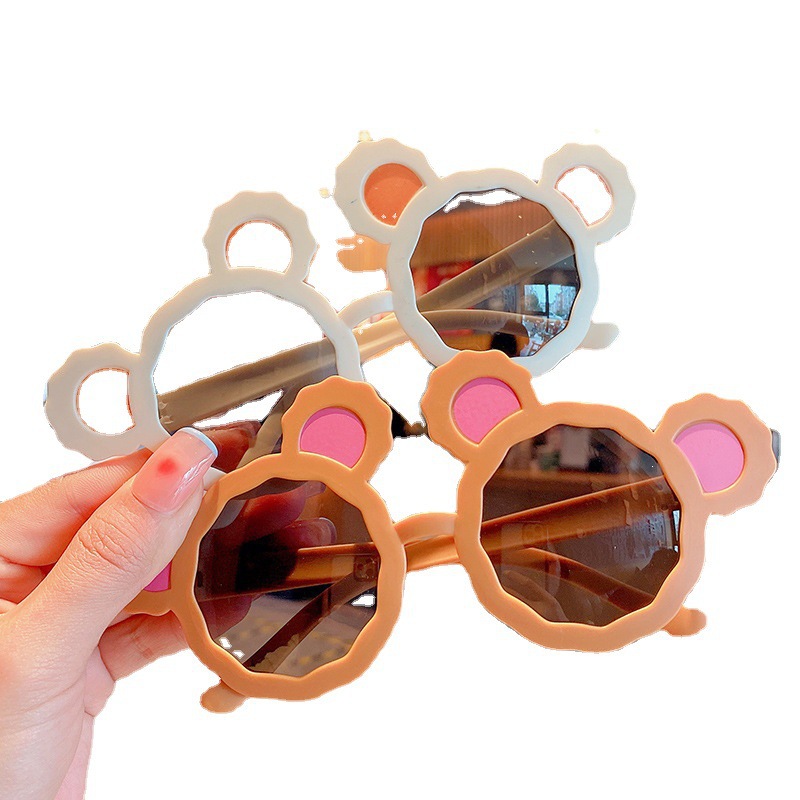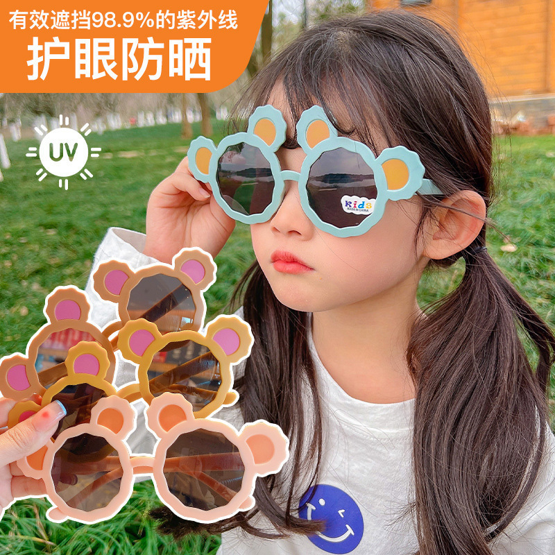 熊耳朵儿童太阳镜卡通可爱时尚墨镜女童太阳眼镜防紫外线眼镜批发