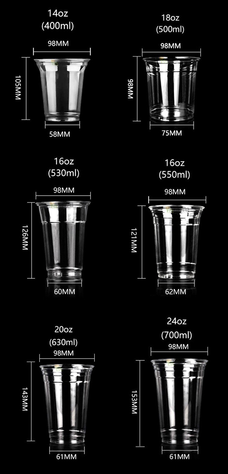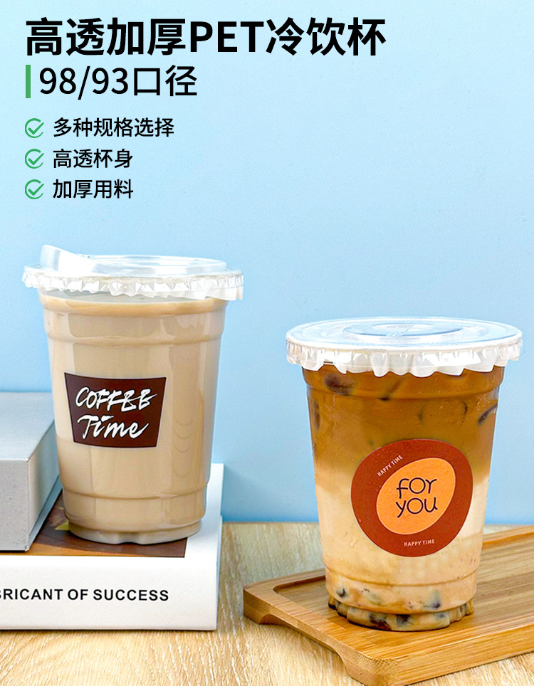 现货一次性咖啡杯子加厚高透98口径 一次性塑料透明PET奶茶杯带盖