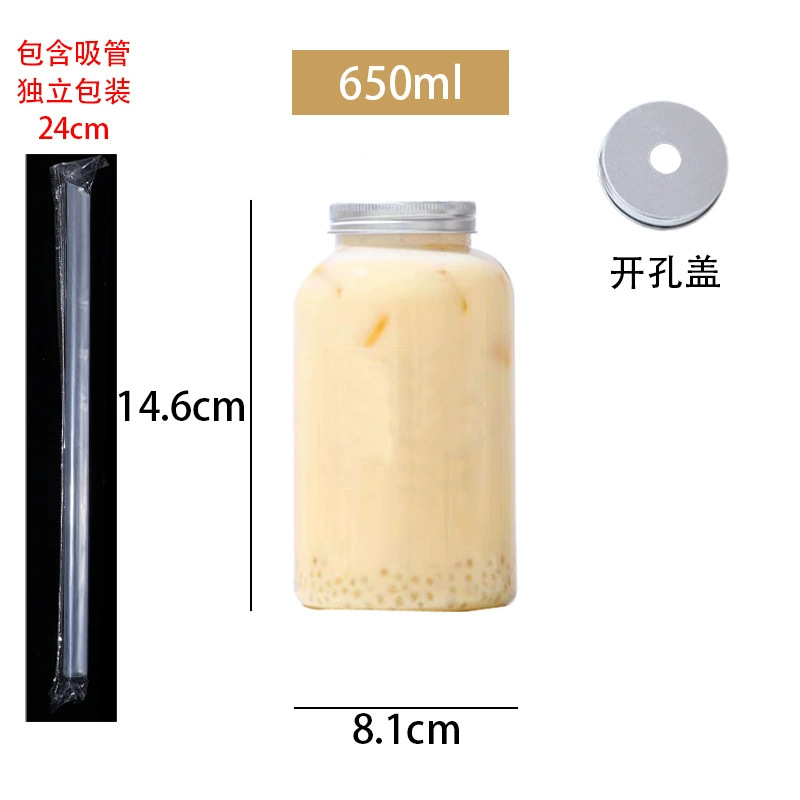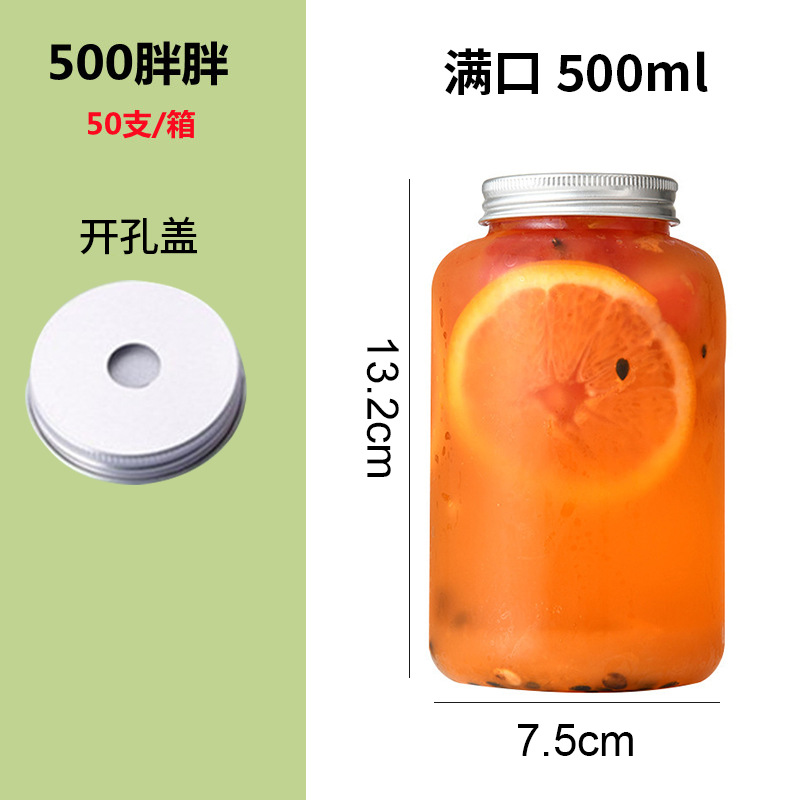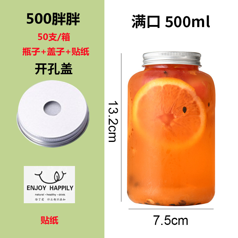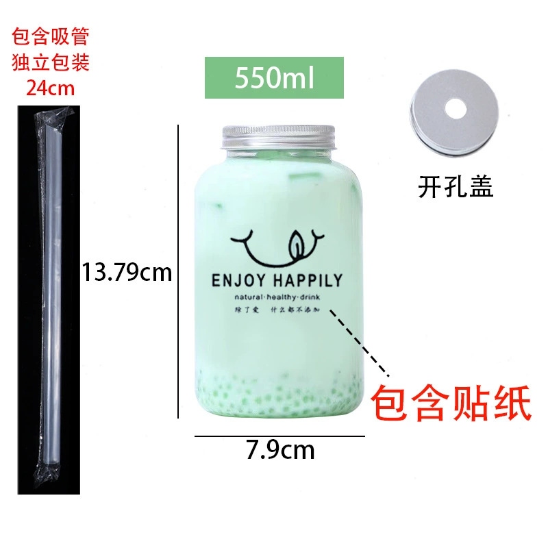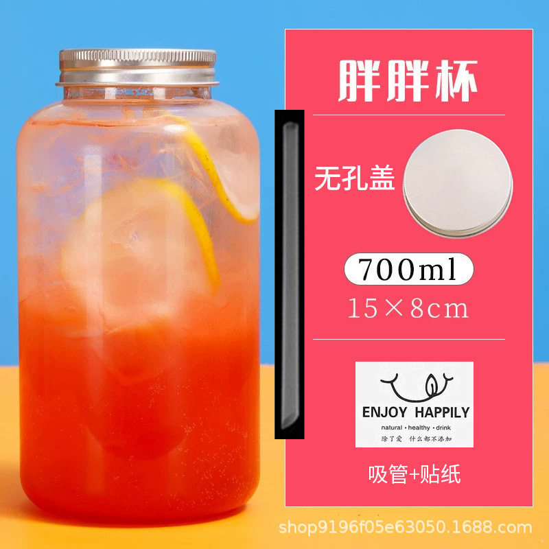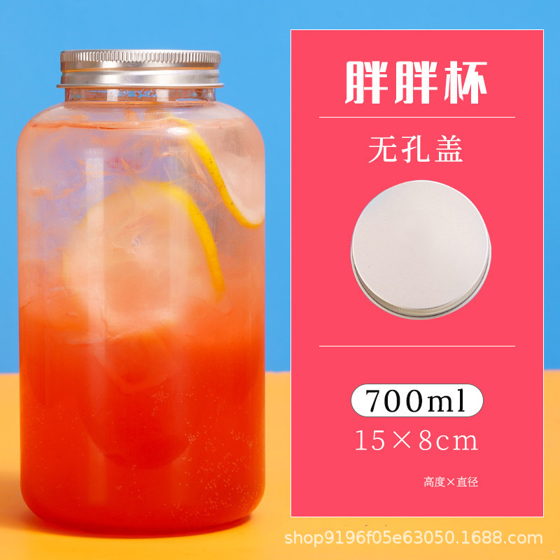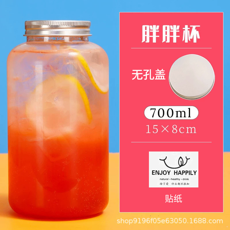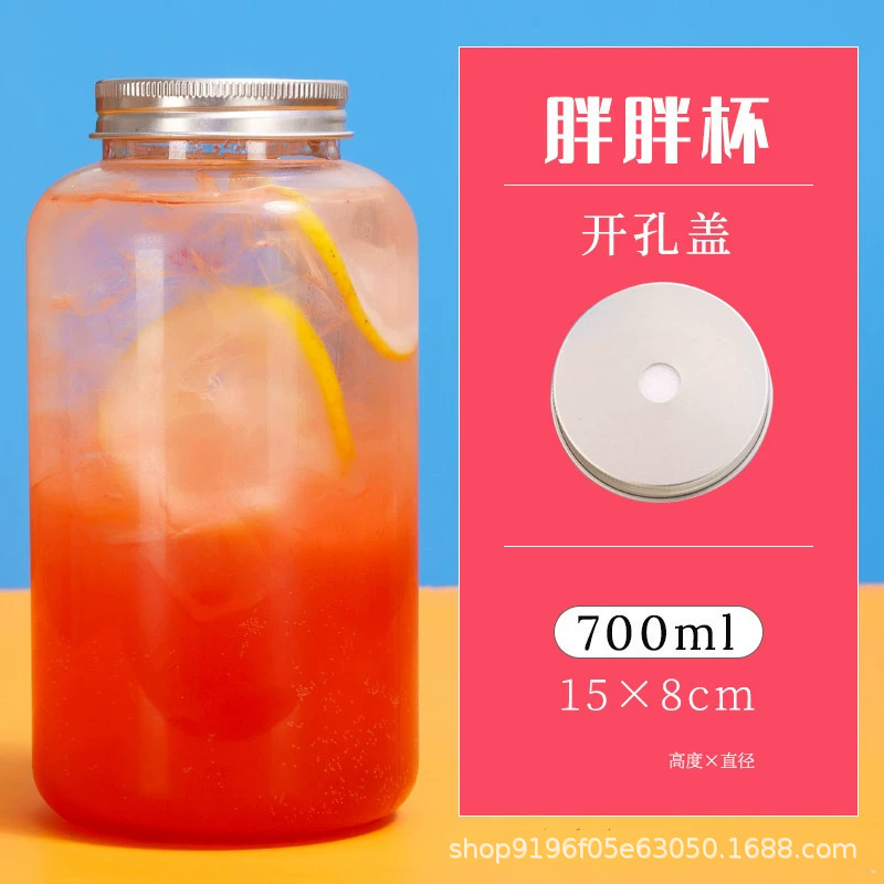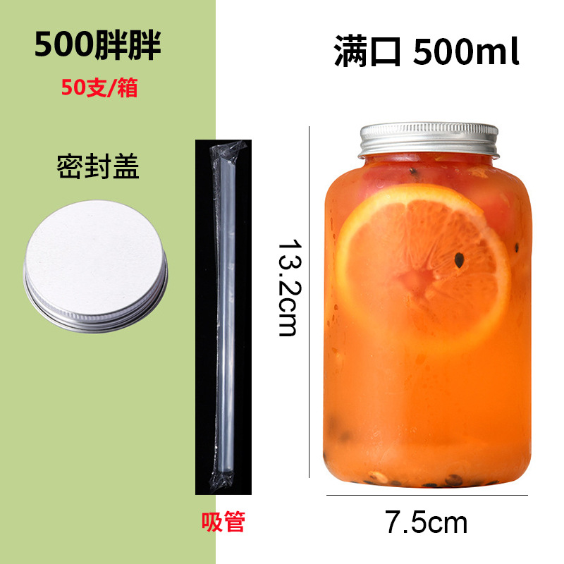 批发550ml奶茶瓶一次性pet塑料杯外卖带盖圆形网红胖胖果汁饮料瓶