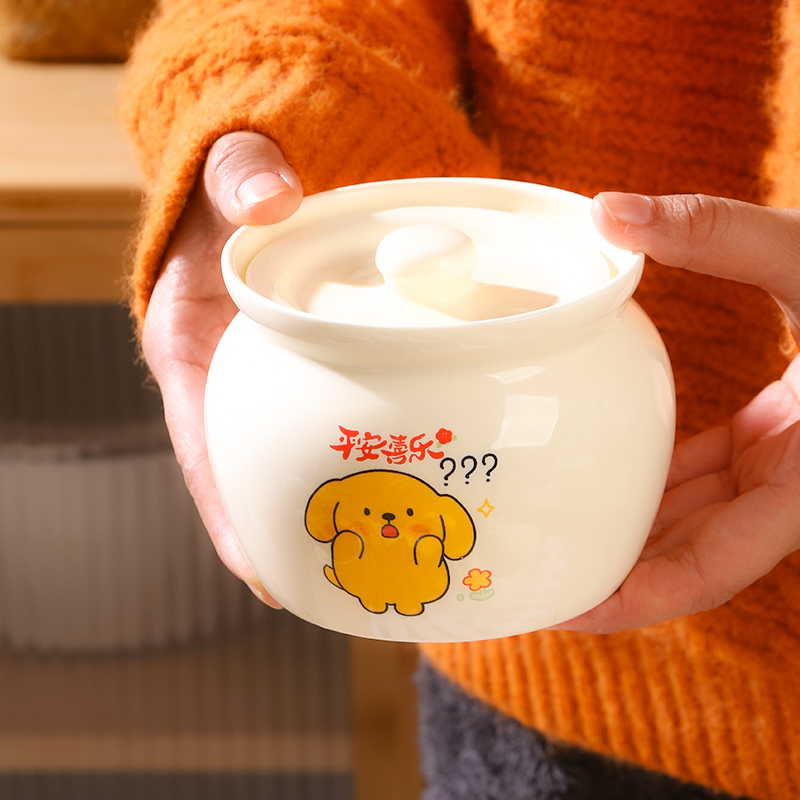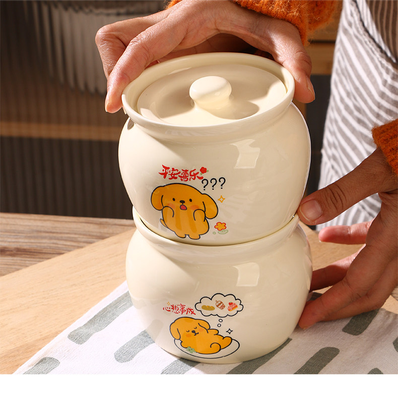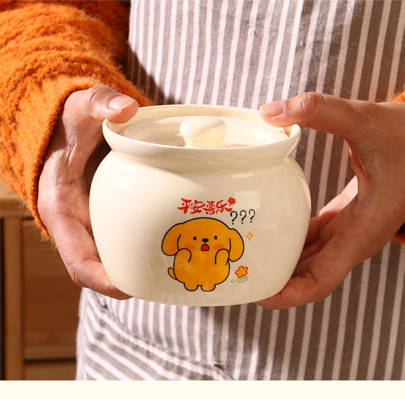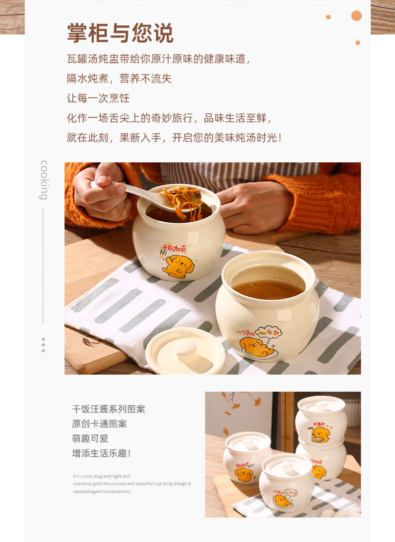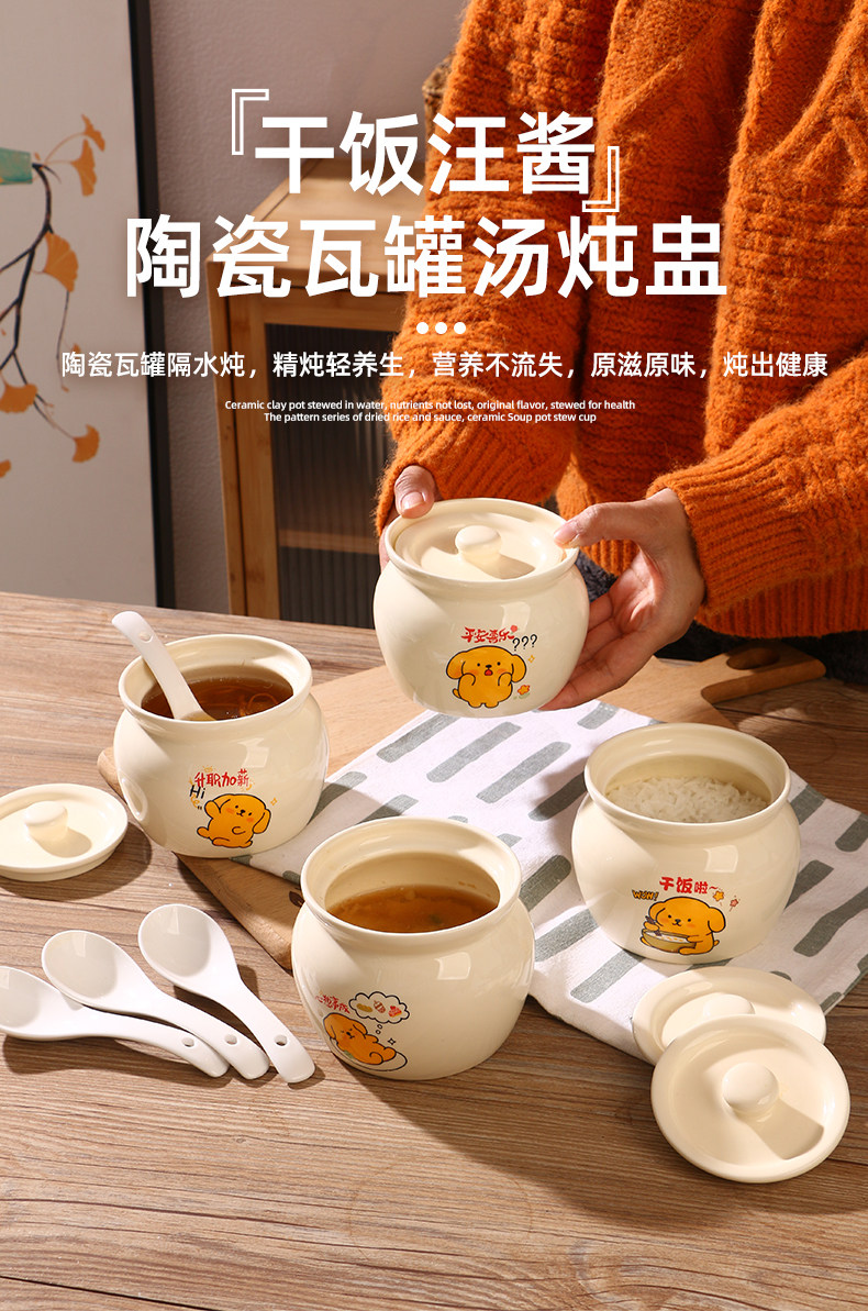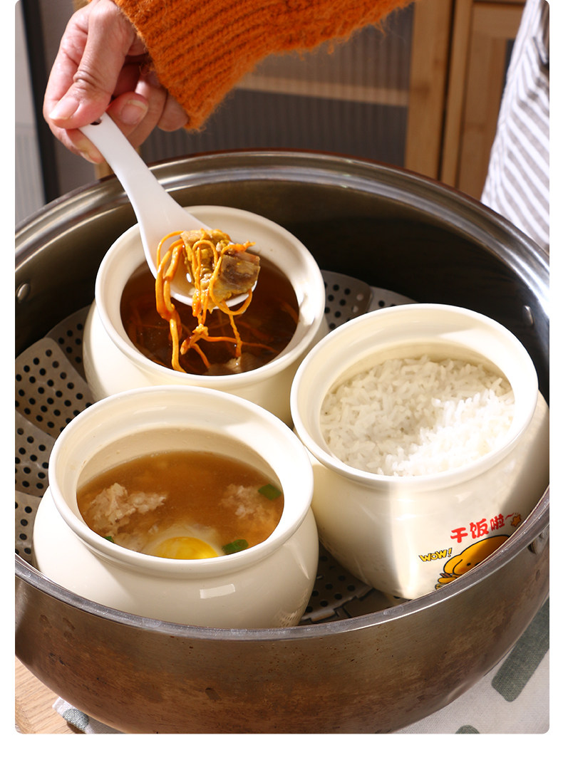 陶瓷瓦罐汤炖盅家用一人份隔水炖煨汤带盖汤盅煲汤蒸蛋炖罐辣椒罐