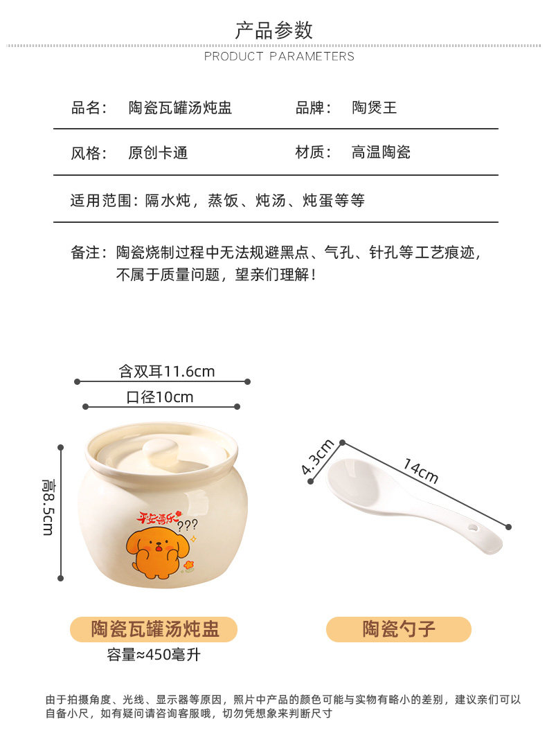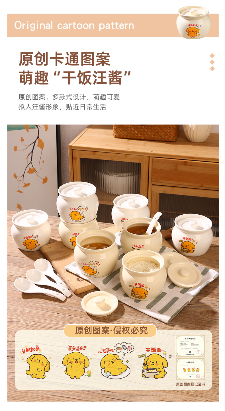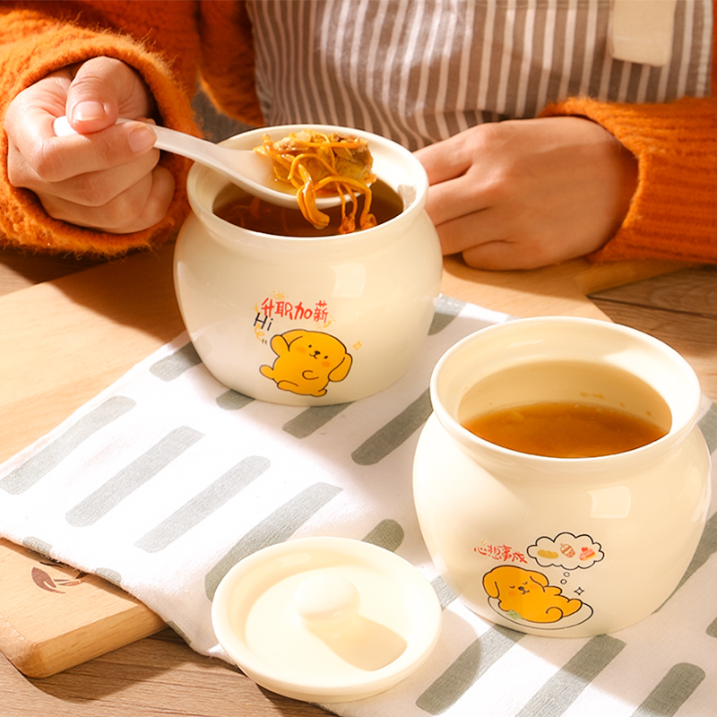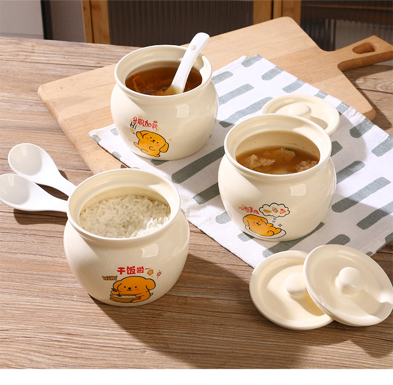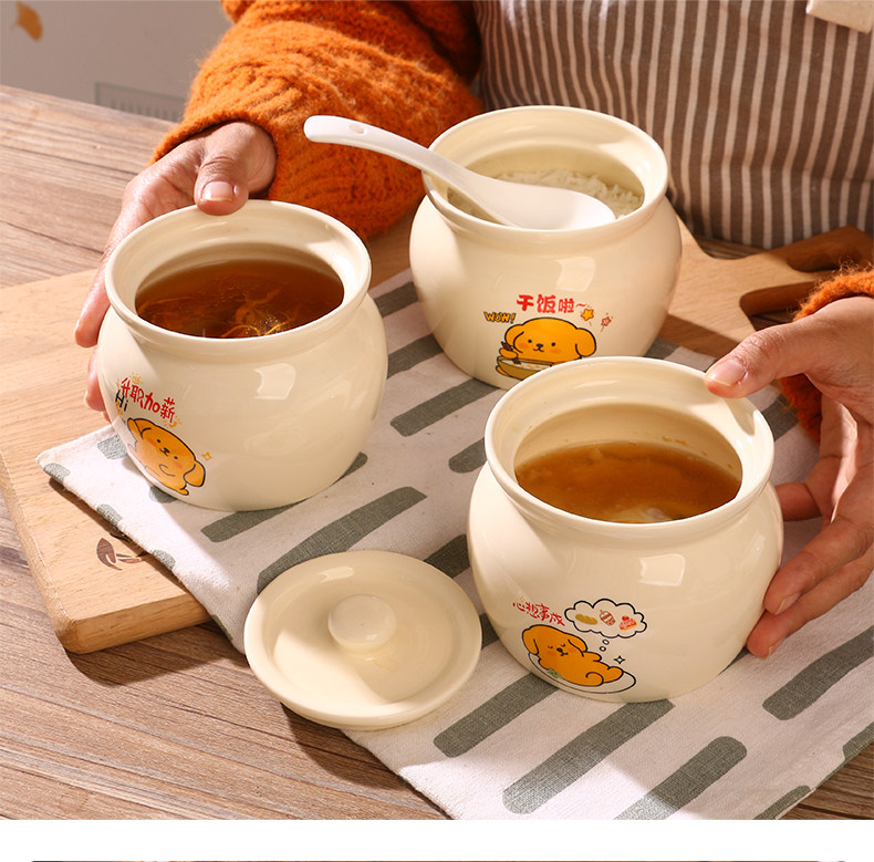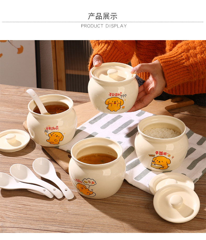 陶瓷瓦罐汤炖盅家用一人份隔水炖煨汤带盖汤盅煲汤蒸蛋炖罐辣椒罐