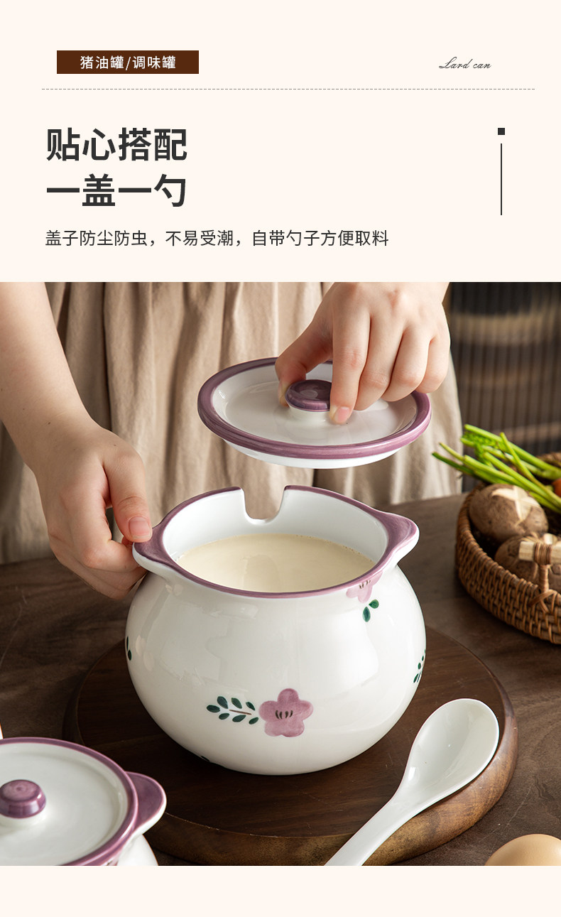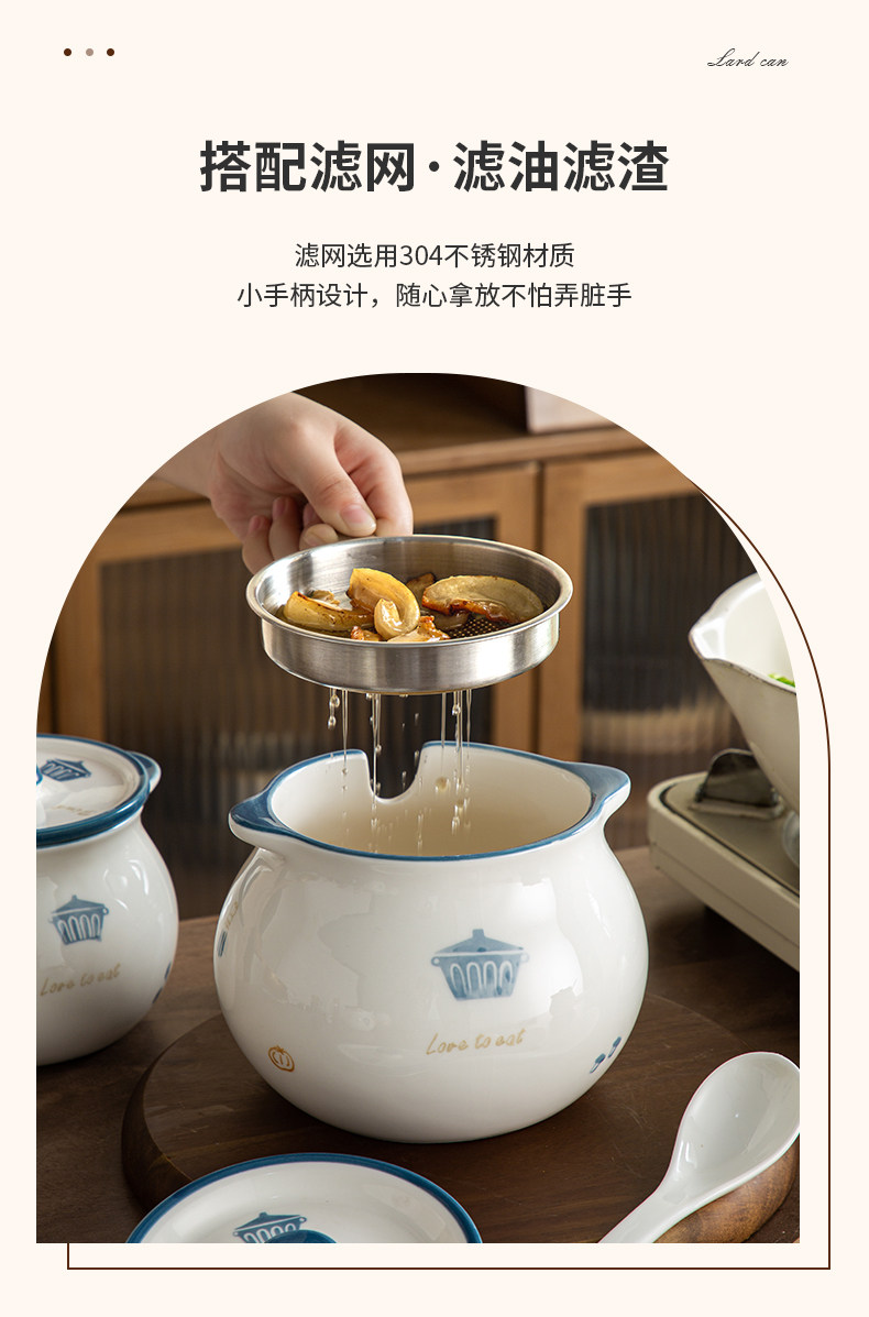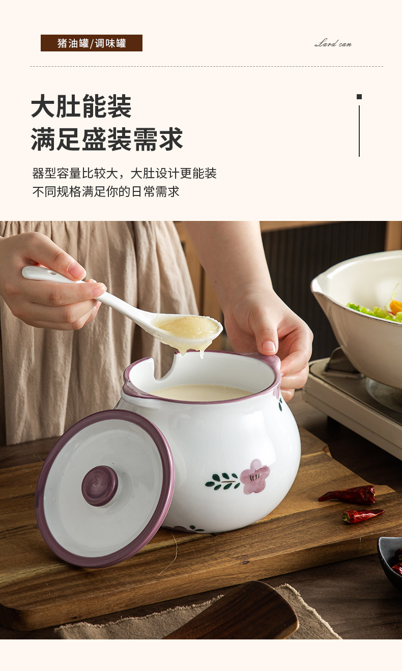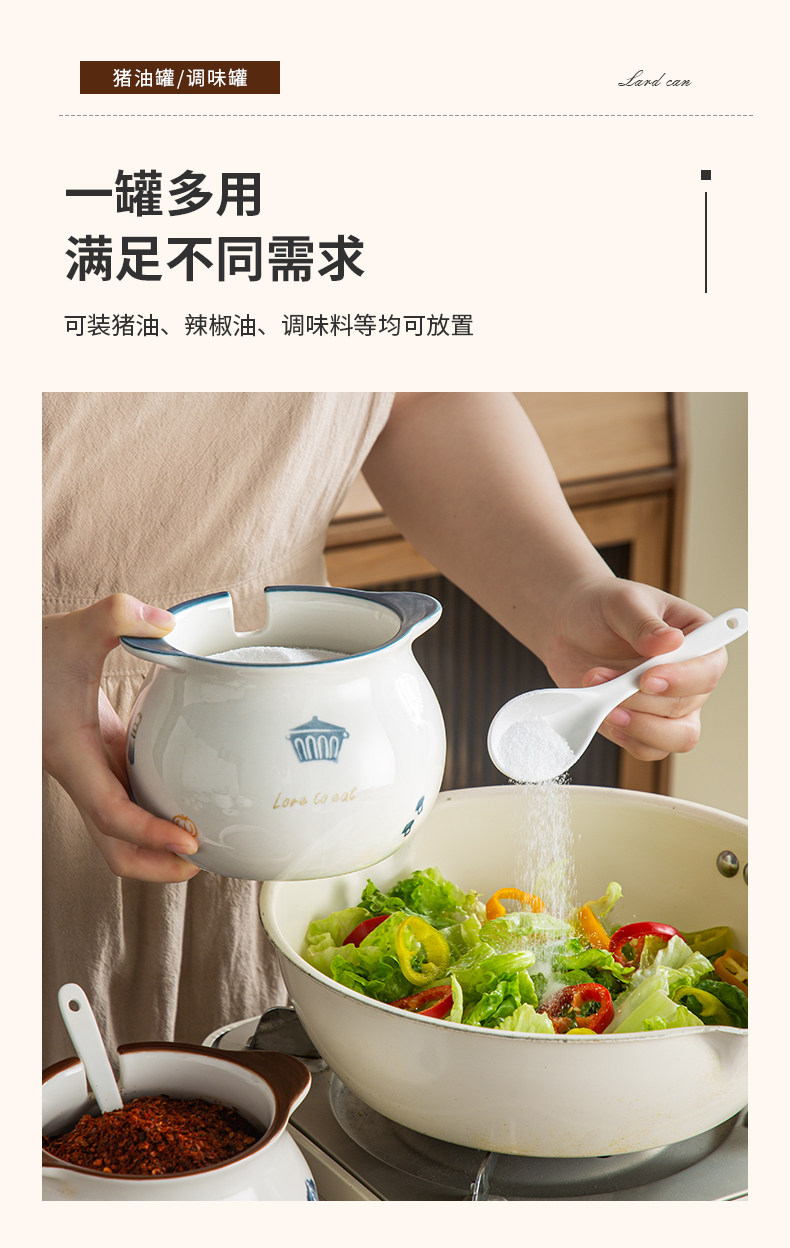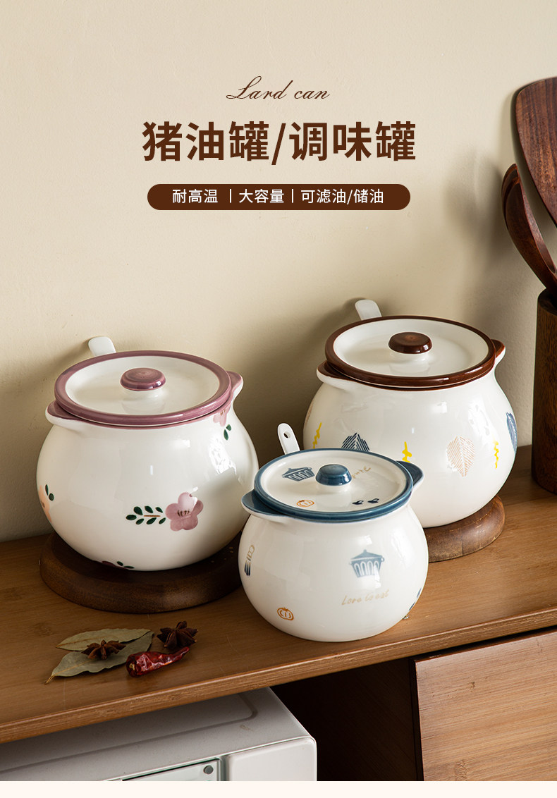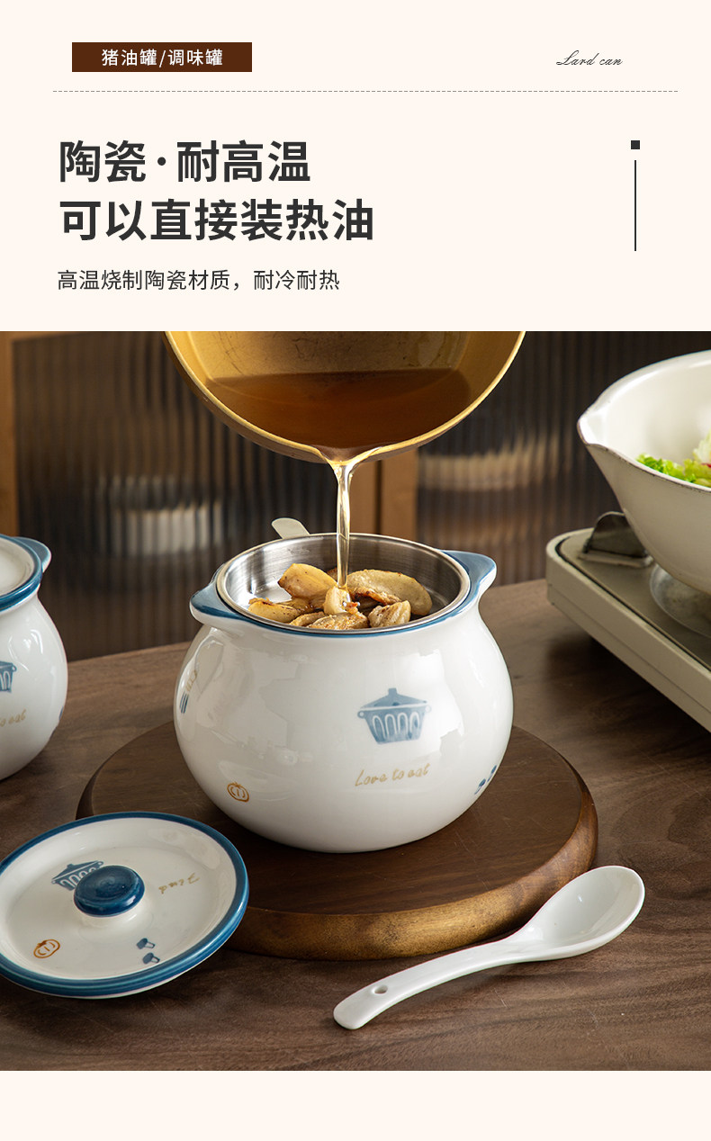 猪油罐陶瓷猪油罐家用耐高温带盖勺厨房油泼辣子罐大容量收纳调味