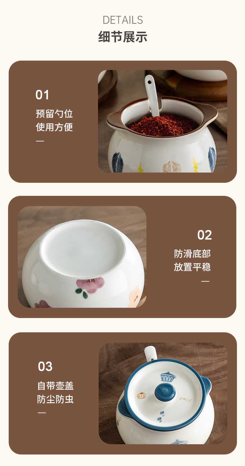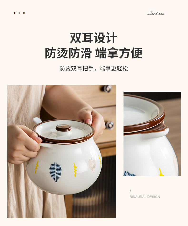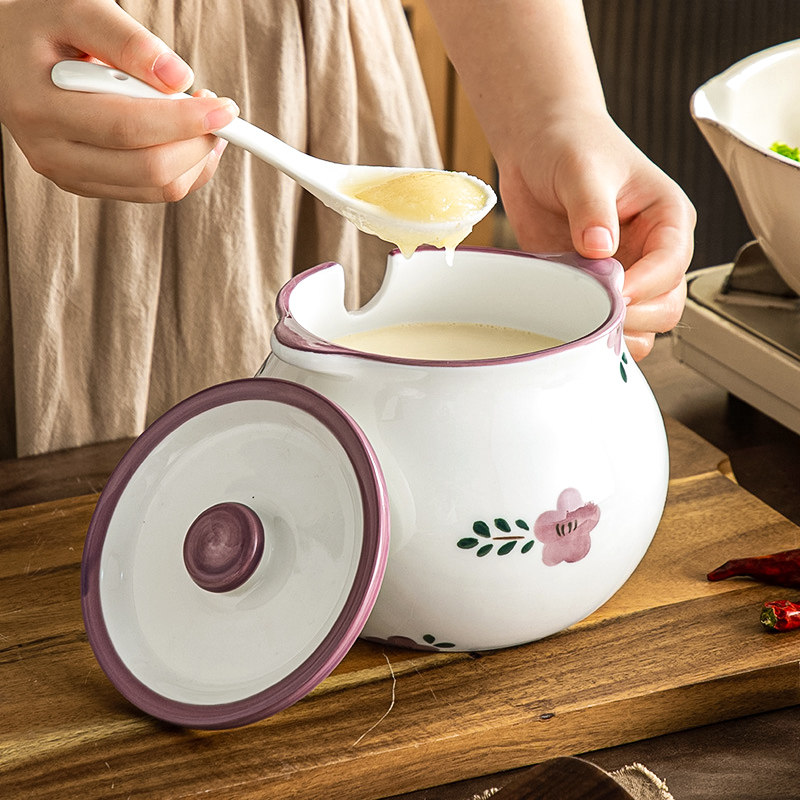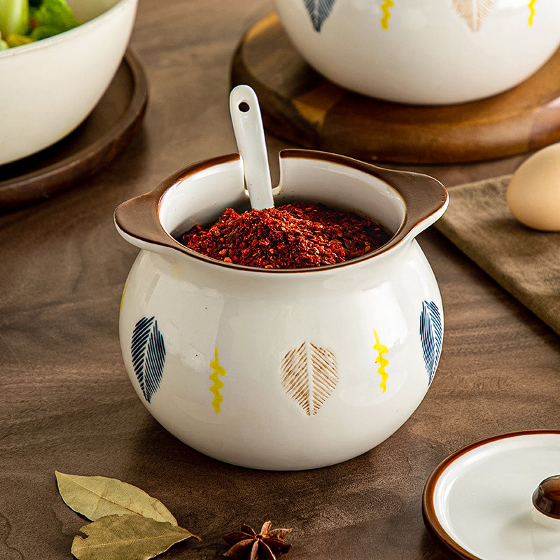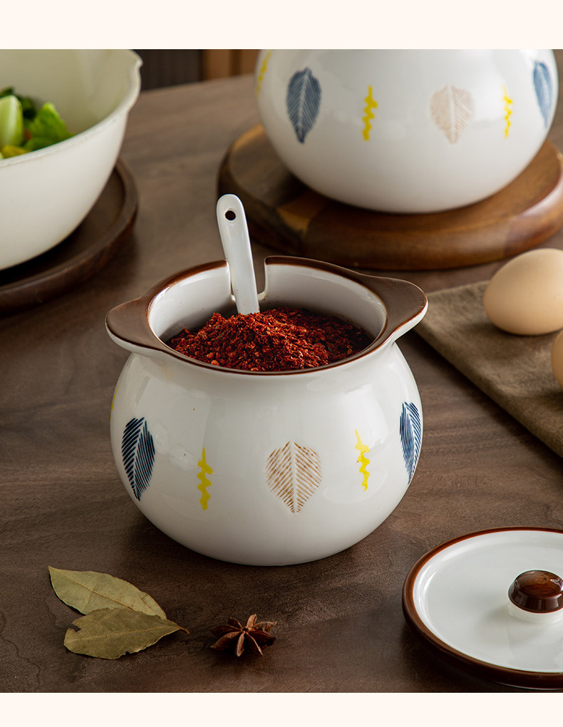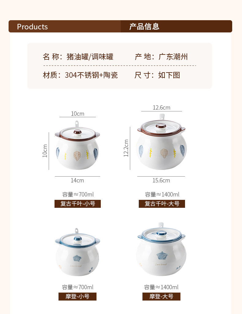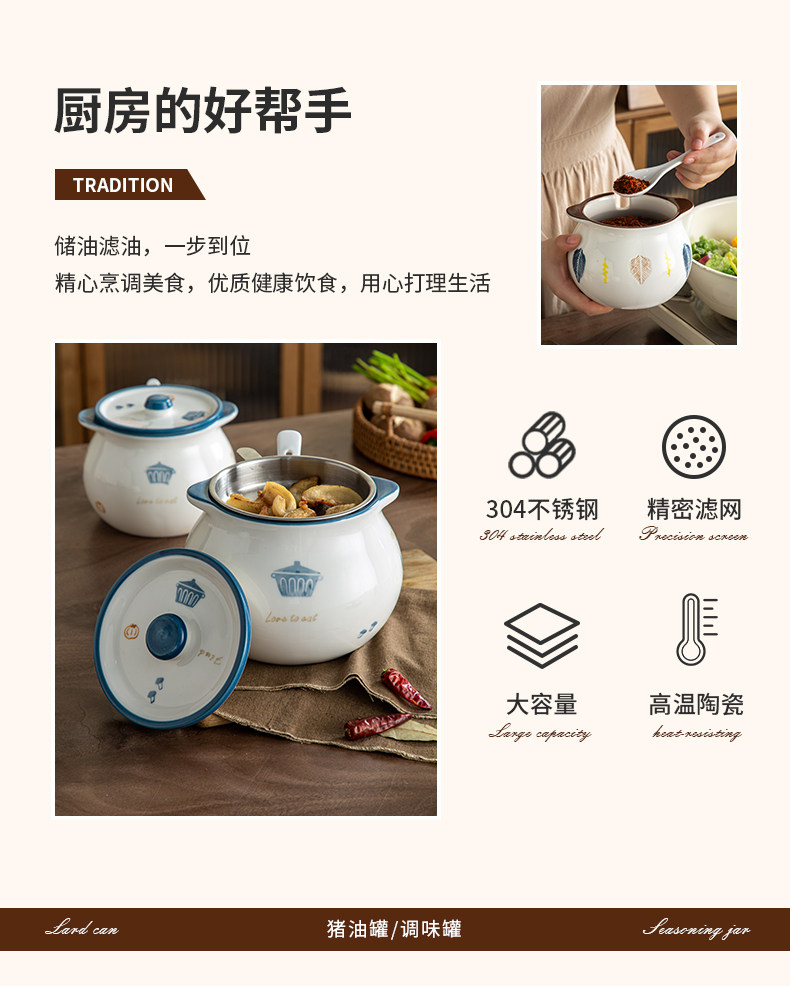 猪油罐陶瓷猪油罐家用耐高温带盖勺厨房油泼辣子罐大容量收纳调味