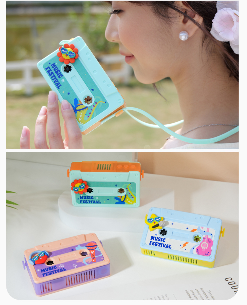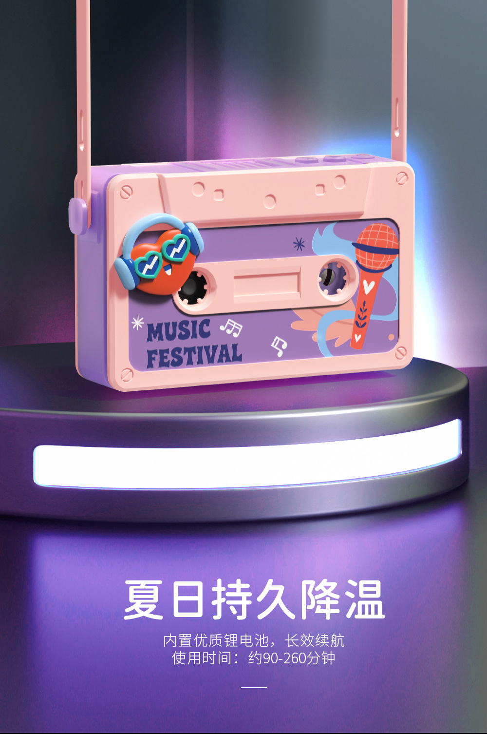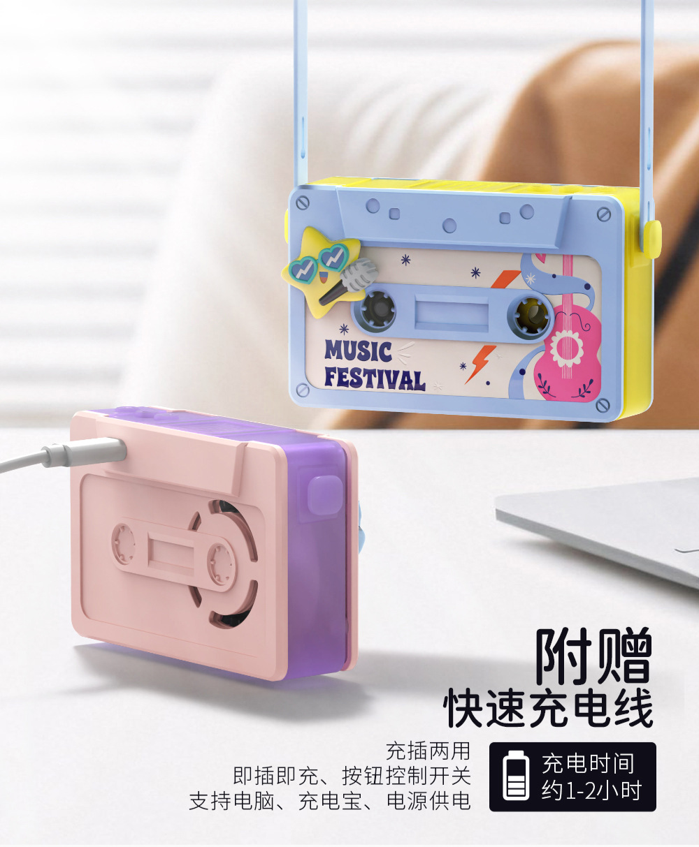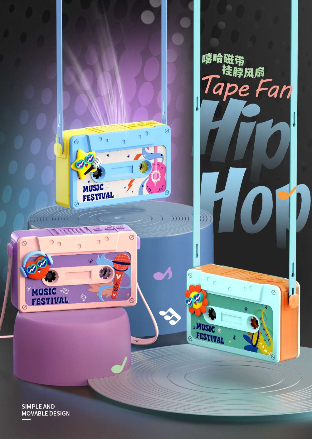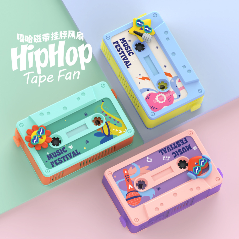 嘻哈风磁带挂脖风扇创意电子录音唱随心录充电款磁带挂脖便携风扇