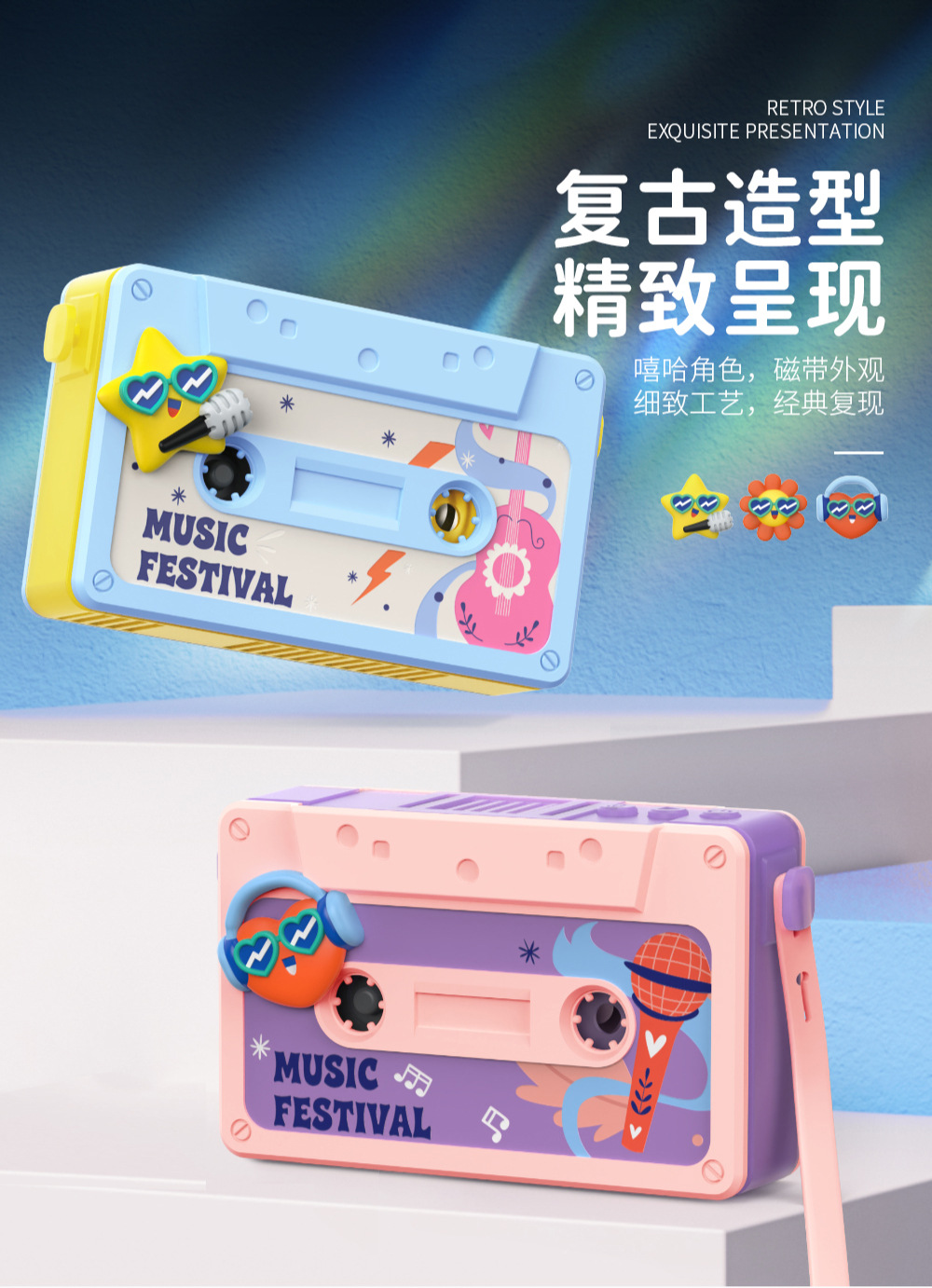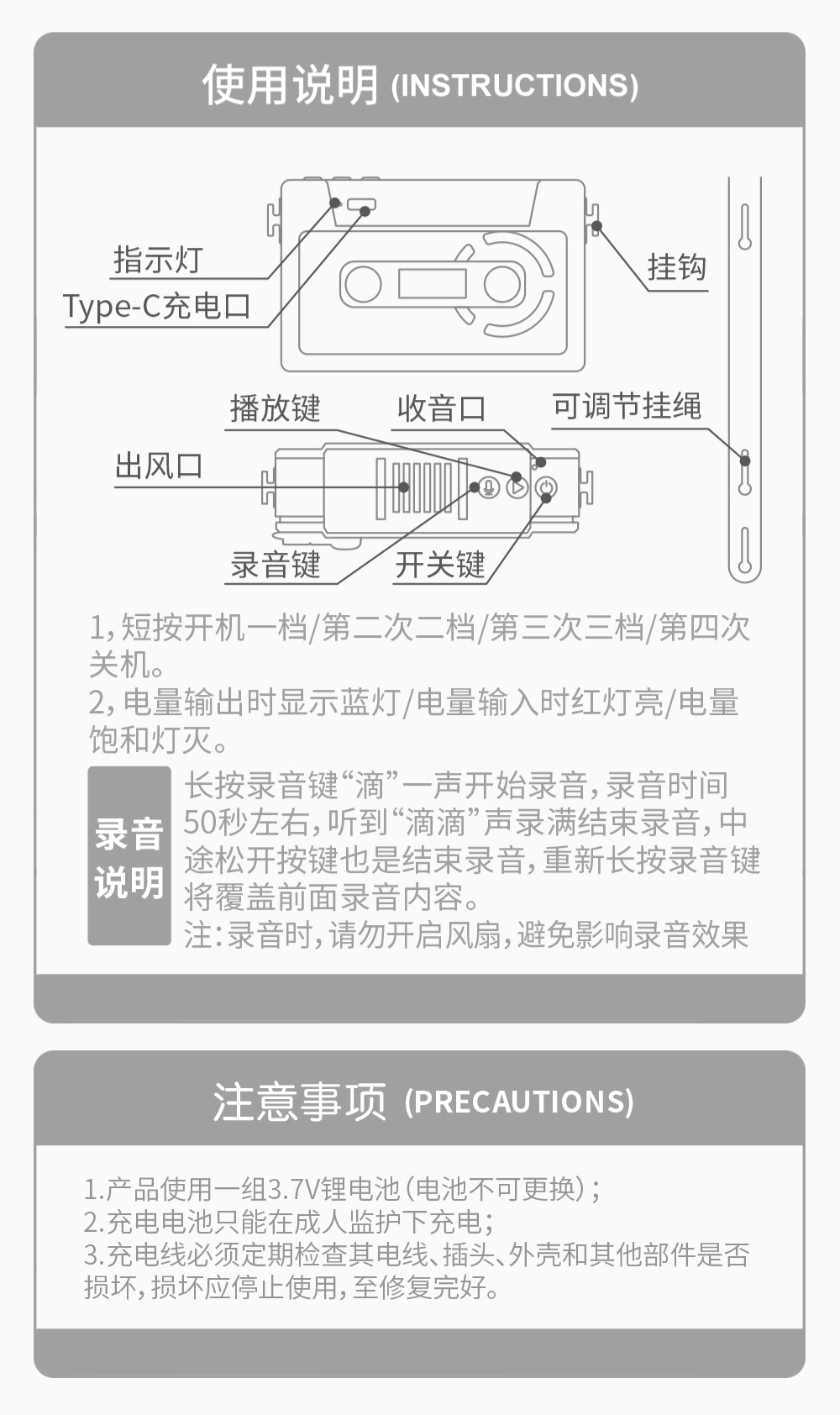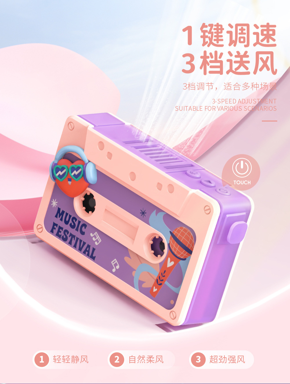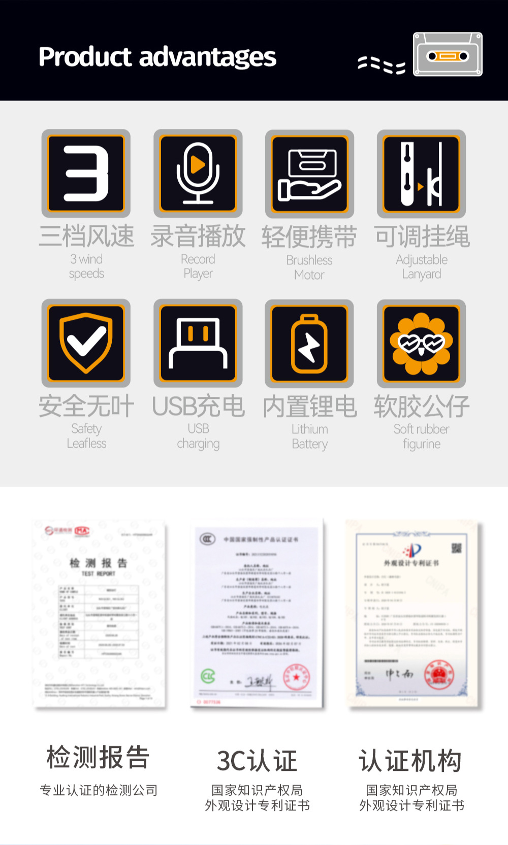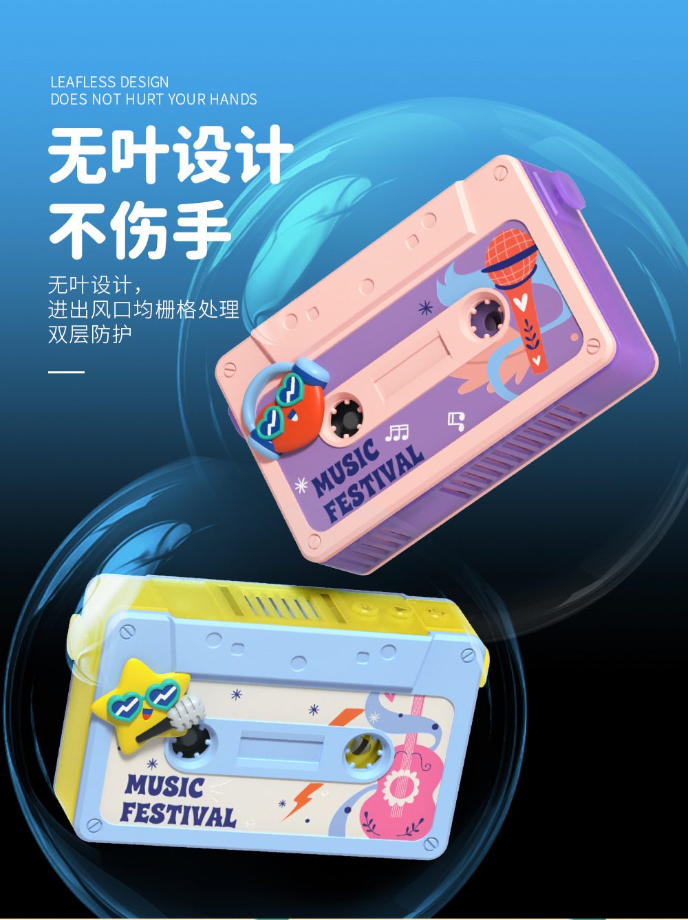 嘻哈风磁带挂脖风扇创意电子录音唱随心录充电款磁带挂脖便携风扇
