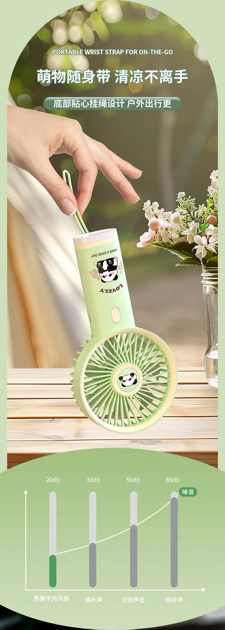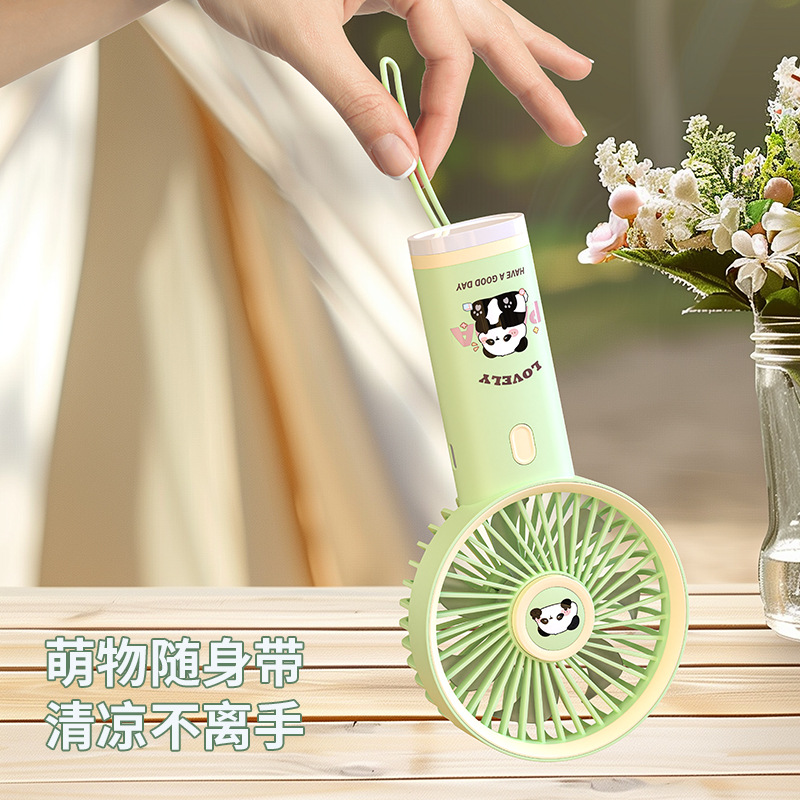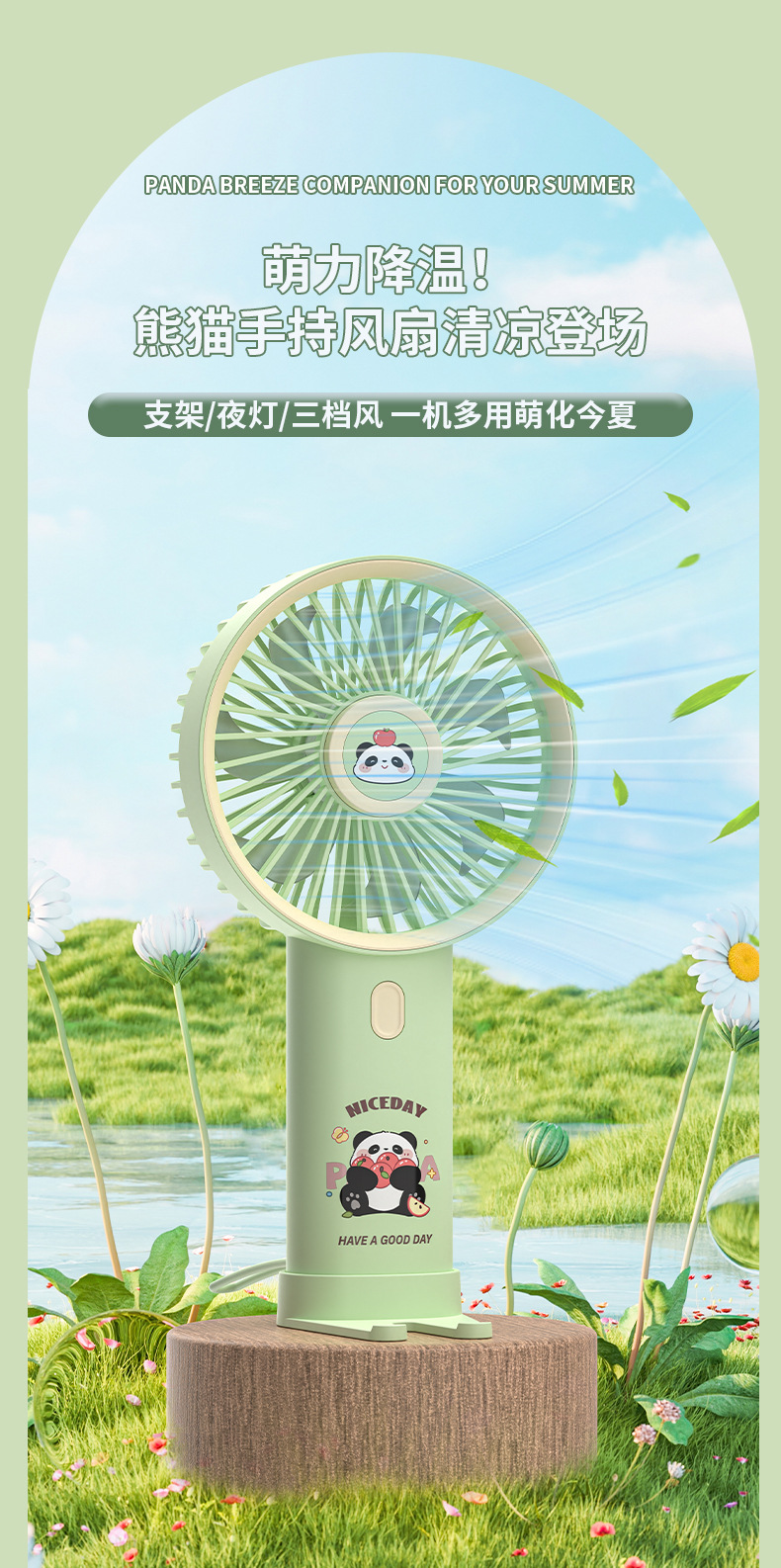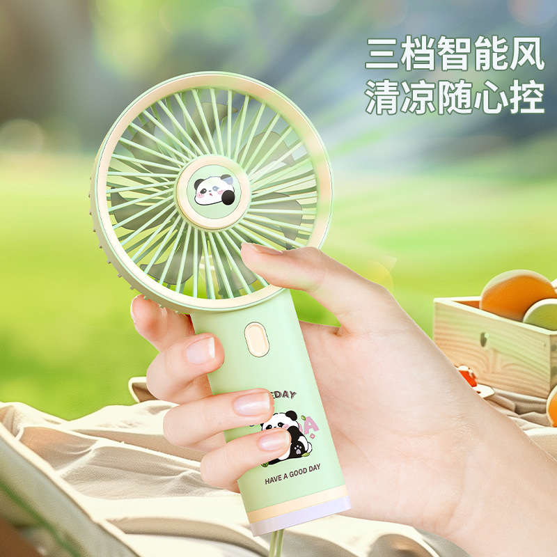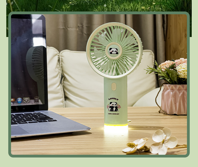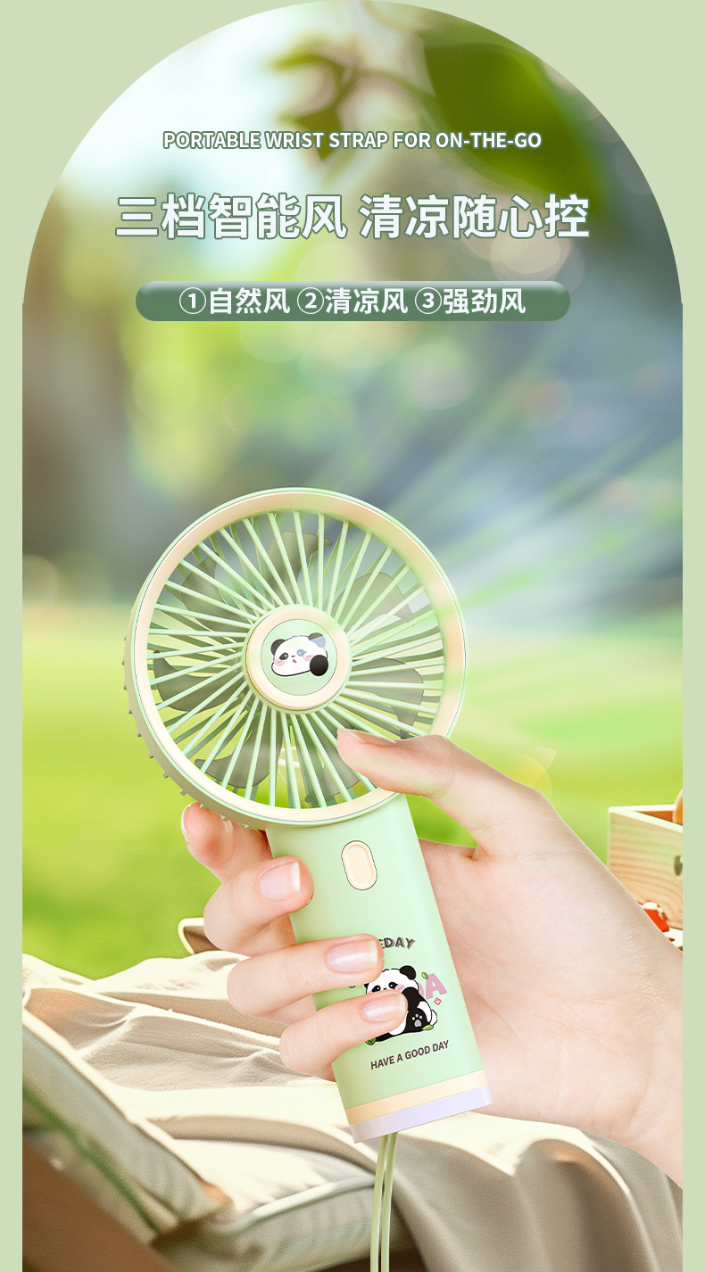 卡通熊猫迷你小风扇充电款手持懒人风扇可爱便携桌面手机支架摆件