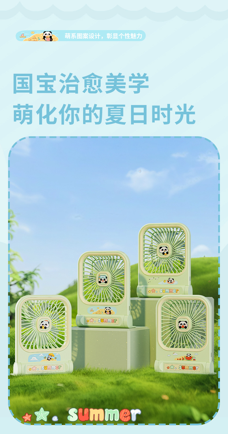 熊猫迷你台式小风扇 USB充电学生桌面便携式卡通手持电扇跨境风扇