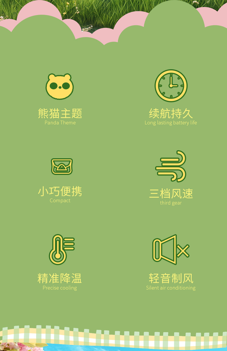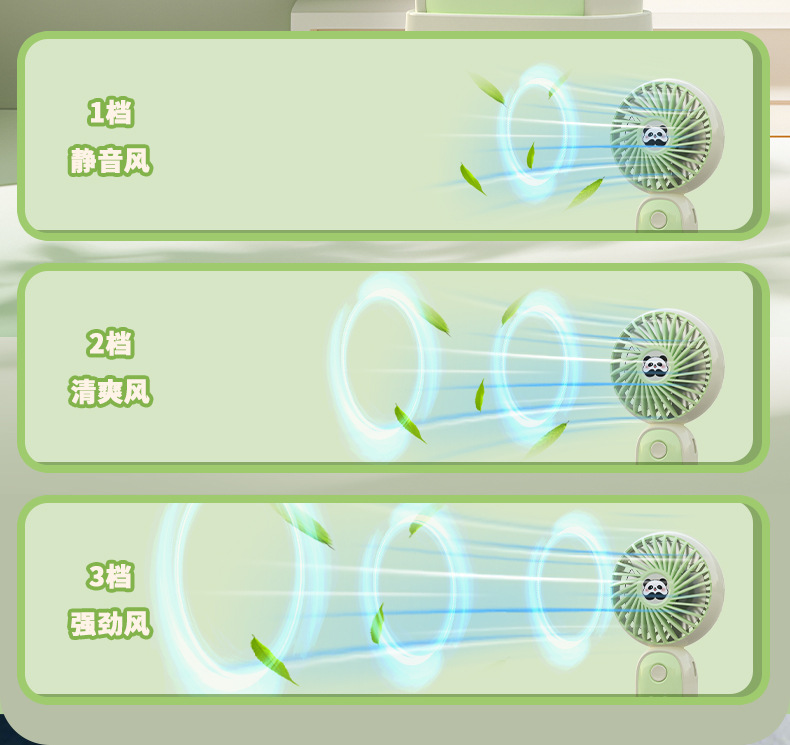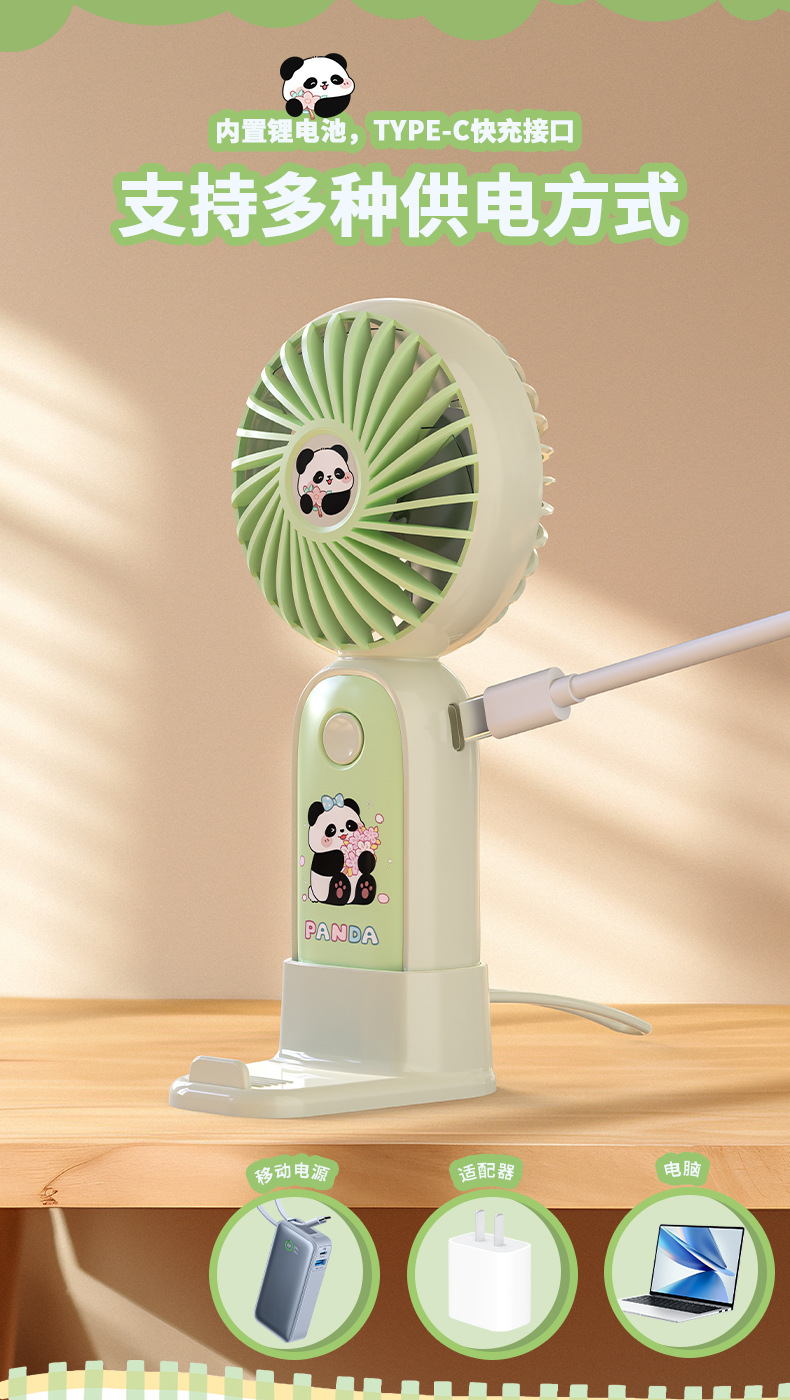 萌趣熊猫手持小风扇手机支架USB充电迷你静音大风力学生电扇批发
