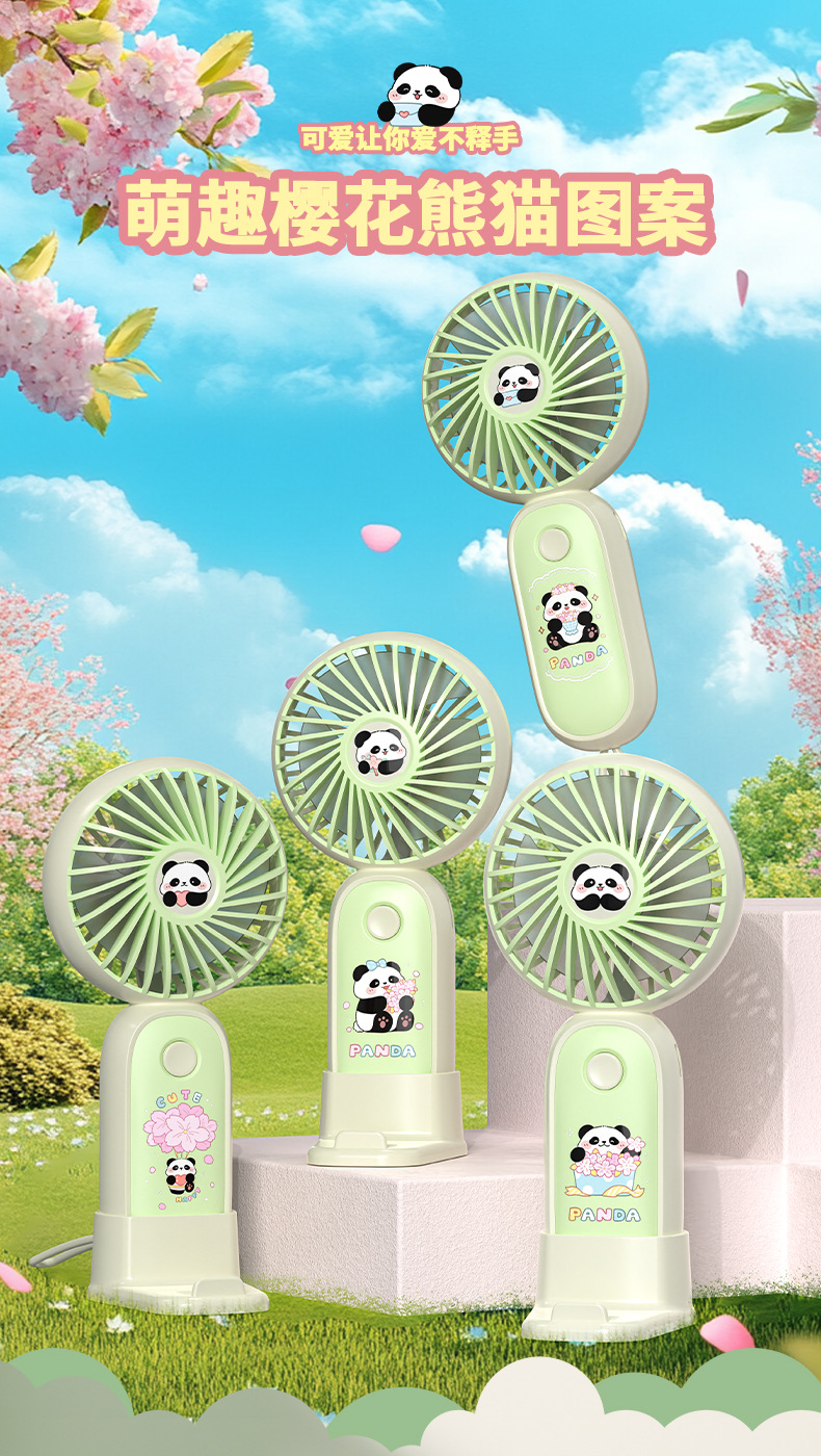 cute panda small handheld fan mobile phone holder usb charging mini noiseless wind student fan wholesale