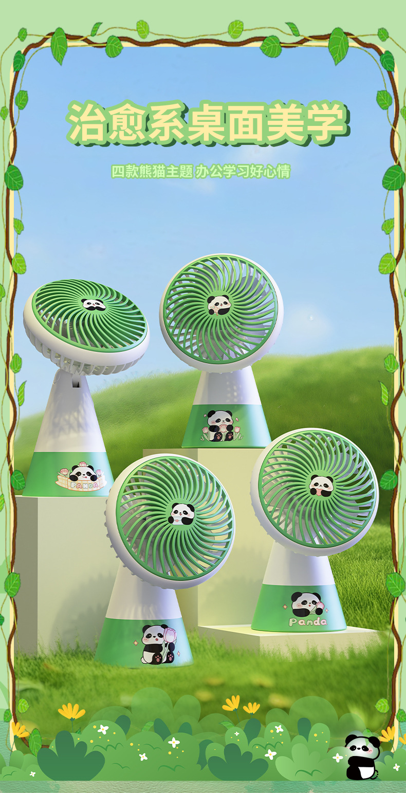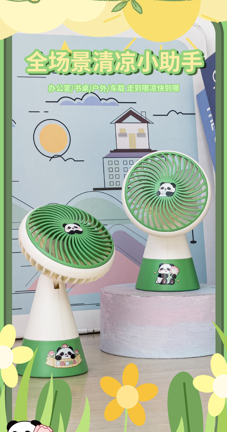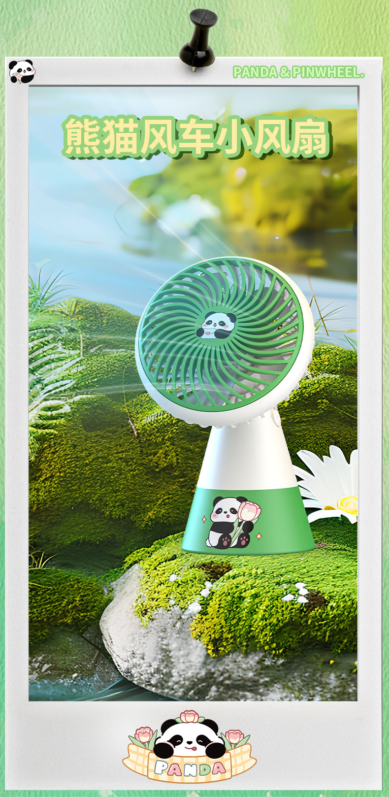 熊猫风车手持风扇 便携可爱迷你小风扇熊猫懒人台式扇小风扇