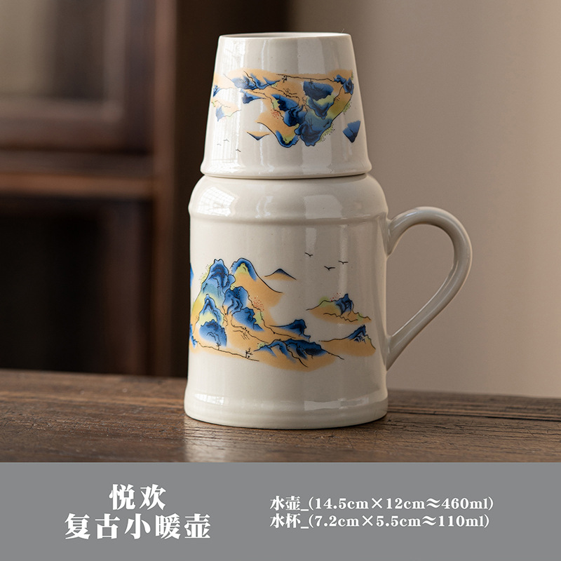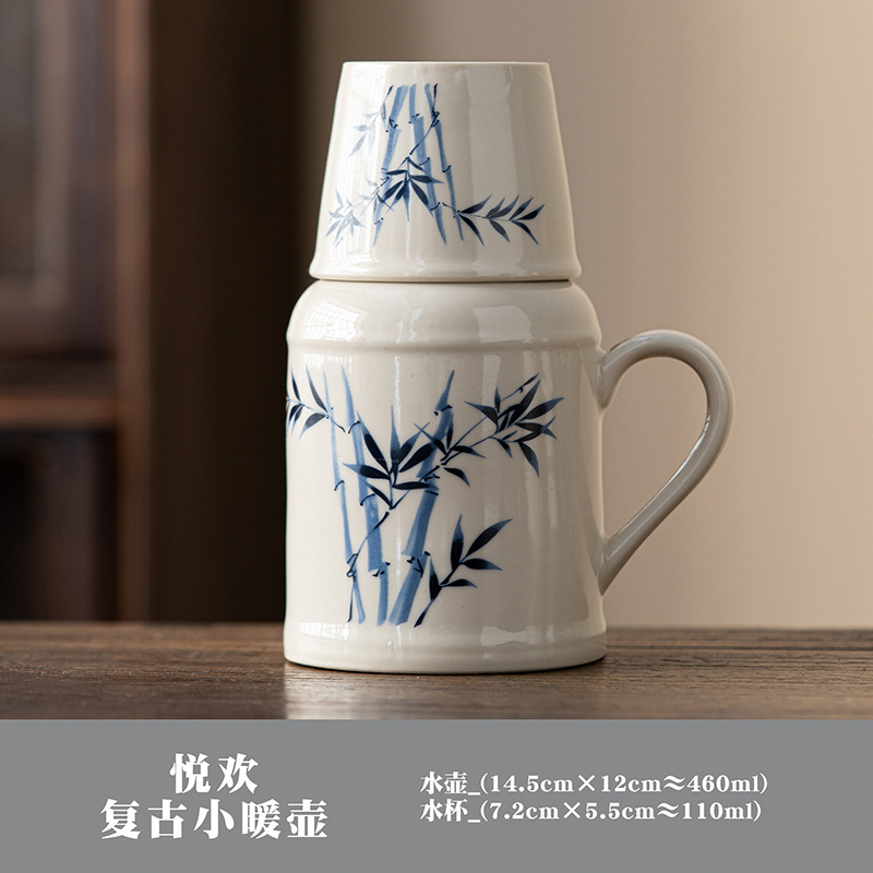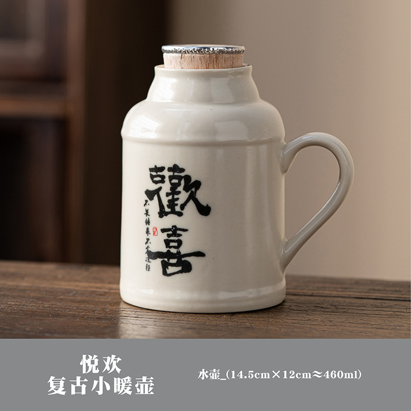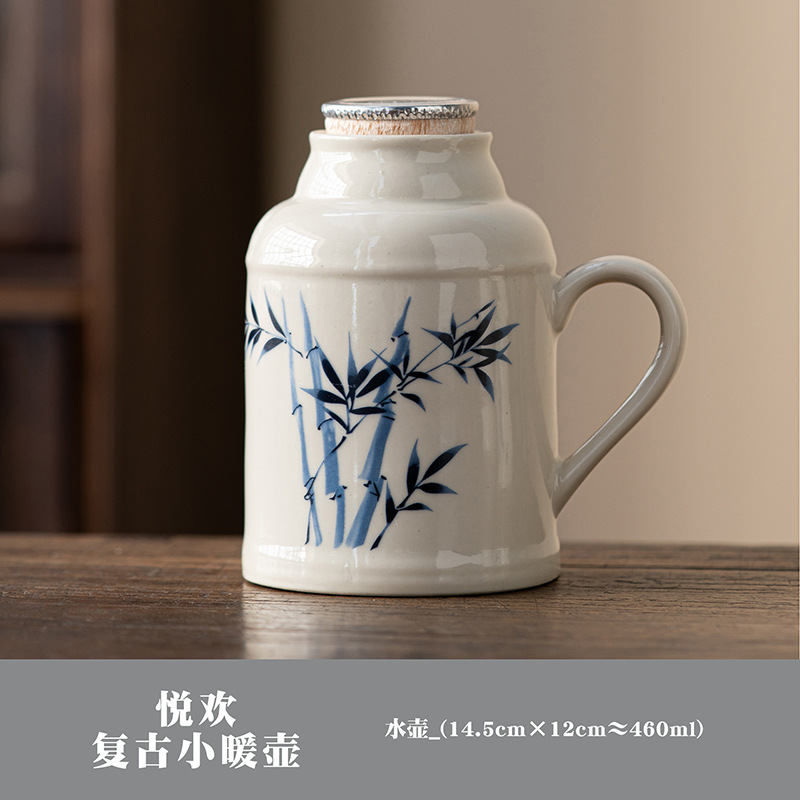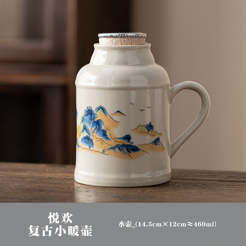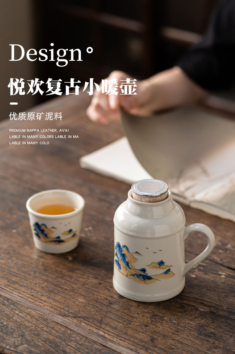 汝窑暖茶壶陶瓷功夫茶具带盖陶瓷焖茶杯大容量保温瓶办公杯带手柄