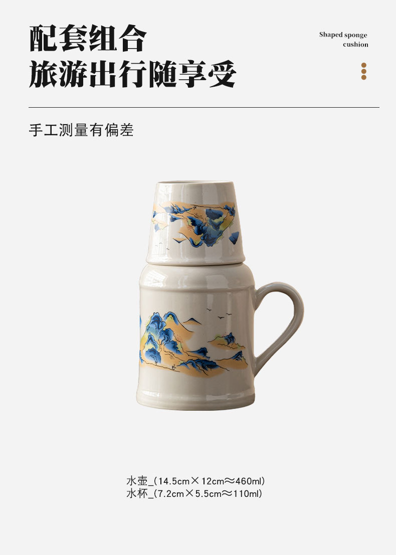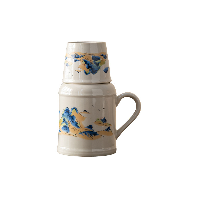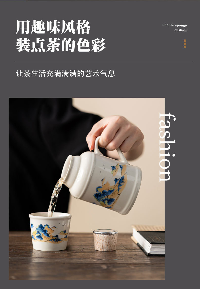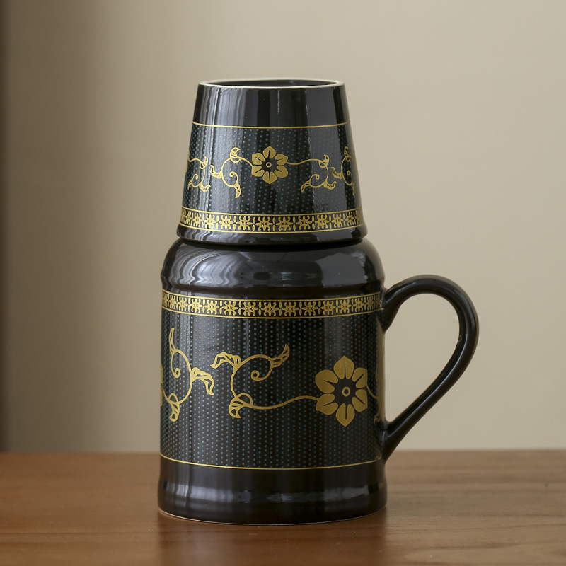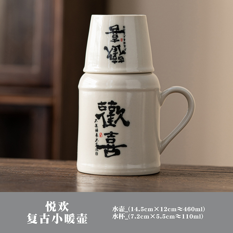 汝窑暖茶壶陶瓷功夫茶具带盖陶瓷焖茶杯大容量保温瓶办公杯带手柄