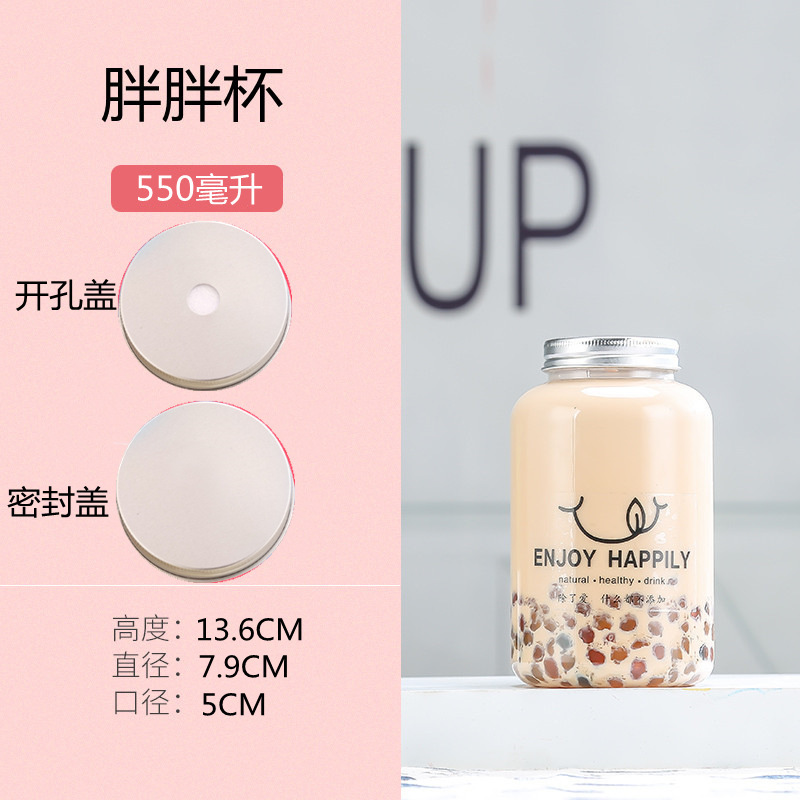 素匠泰茶杯500ml网红奶茶一次性塑料杯子胖胖果汁杯食品级奶茶瓶