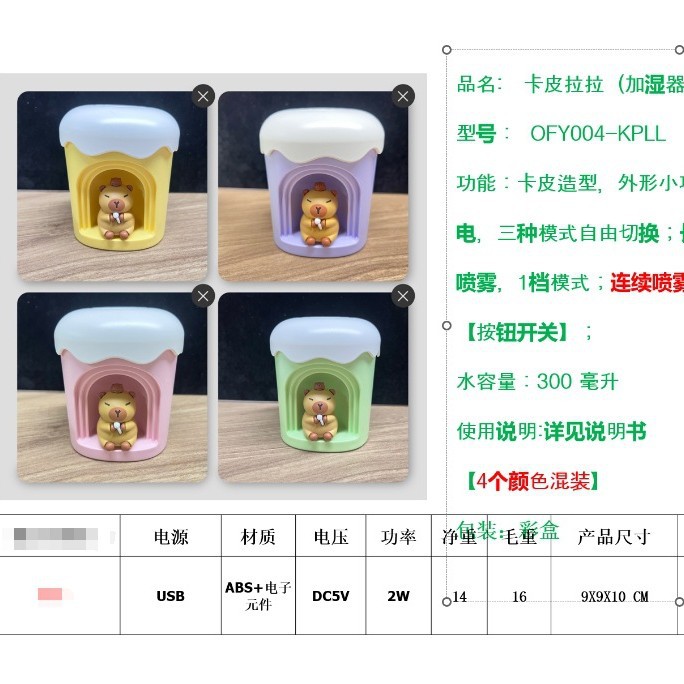 新款卡皮巴拉加湿器办公室桌面宿舍学生充电款加湿器空调房补水