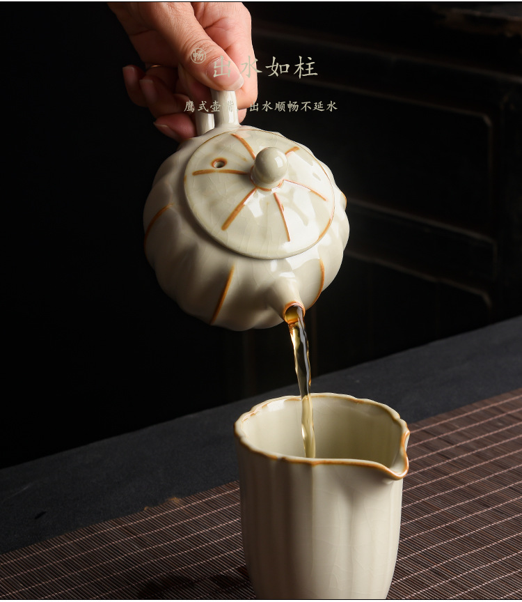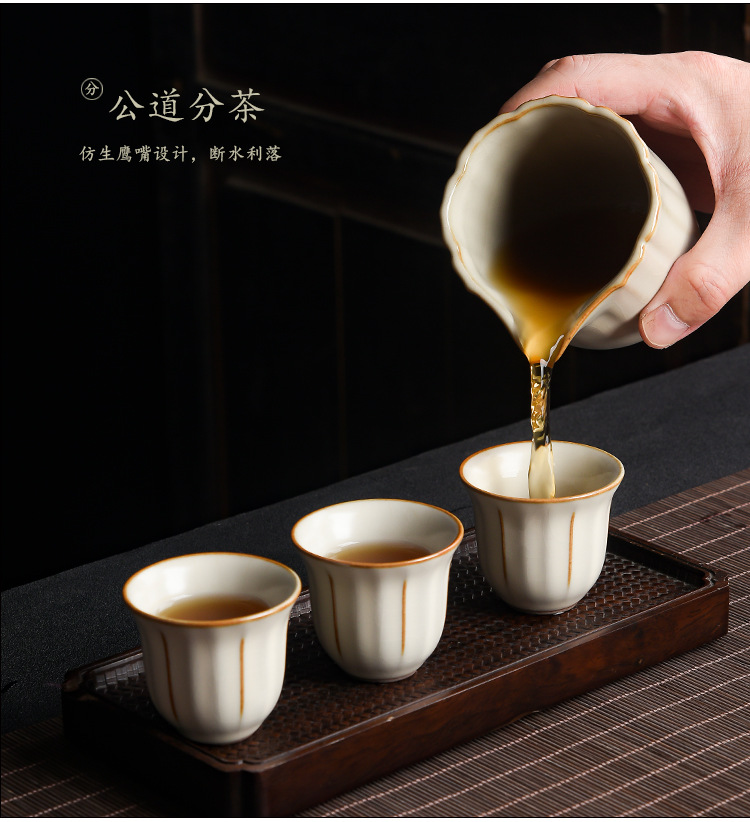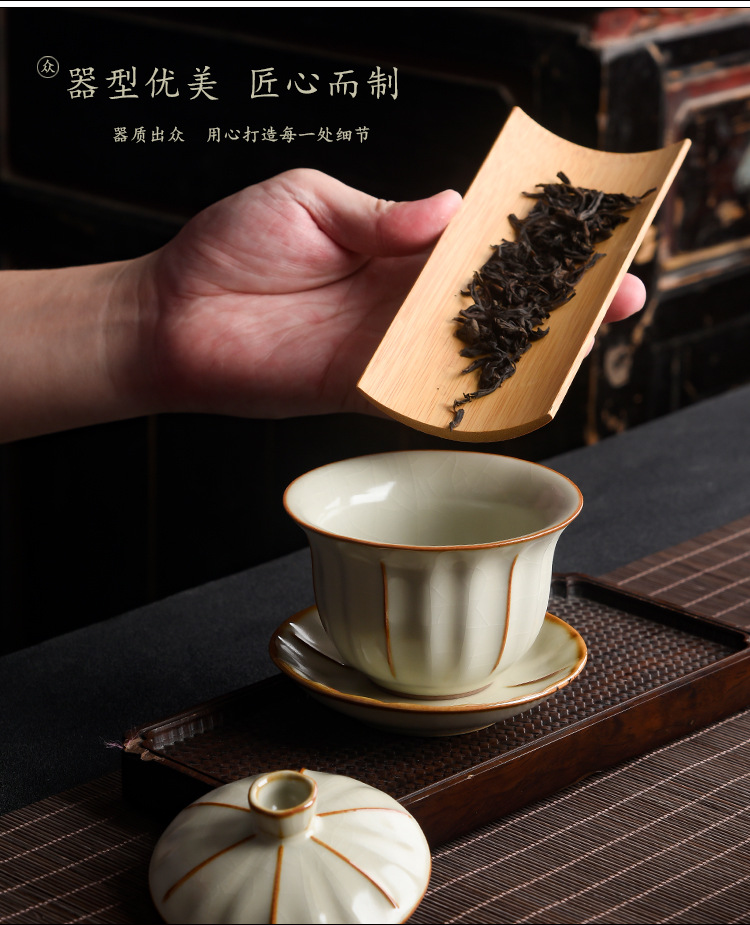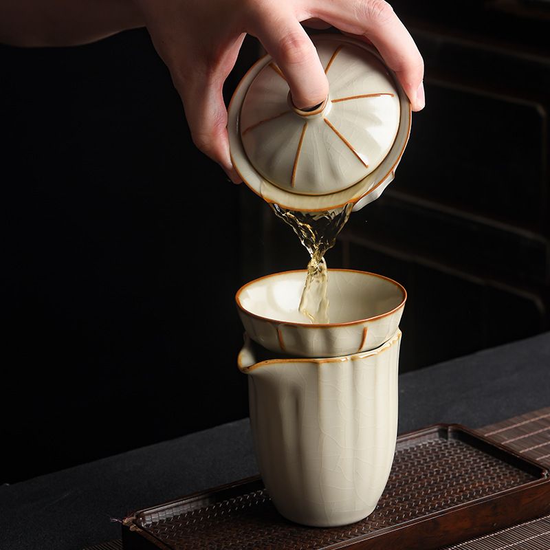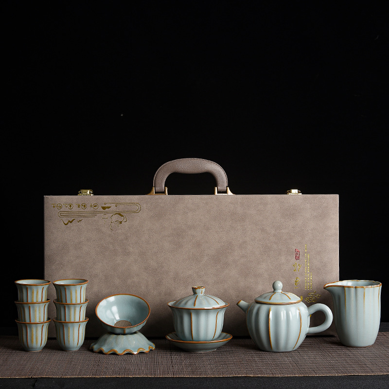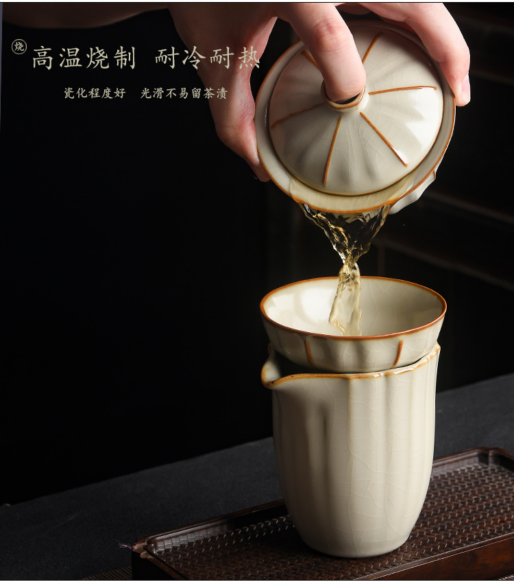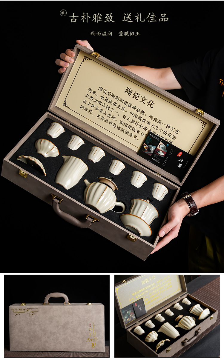 米黄汝窑功夫茶具套装整套批发商务办公室客厅泡茶壶盖碗可印LOGO
