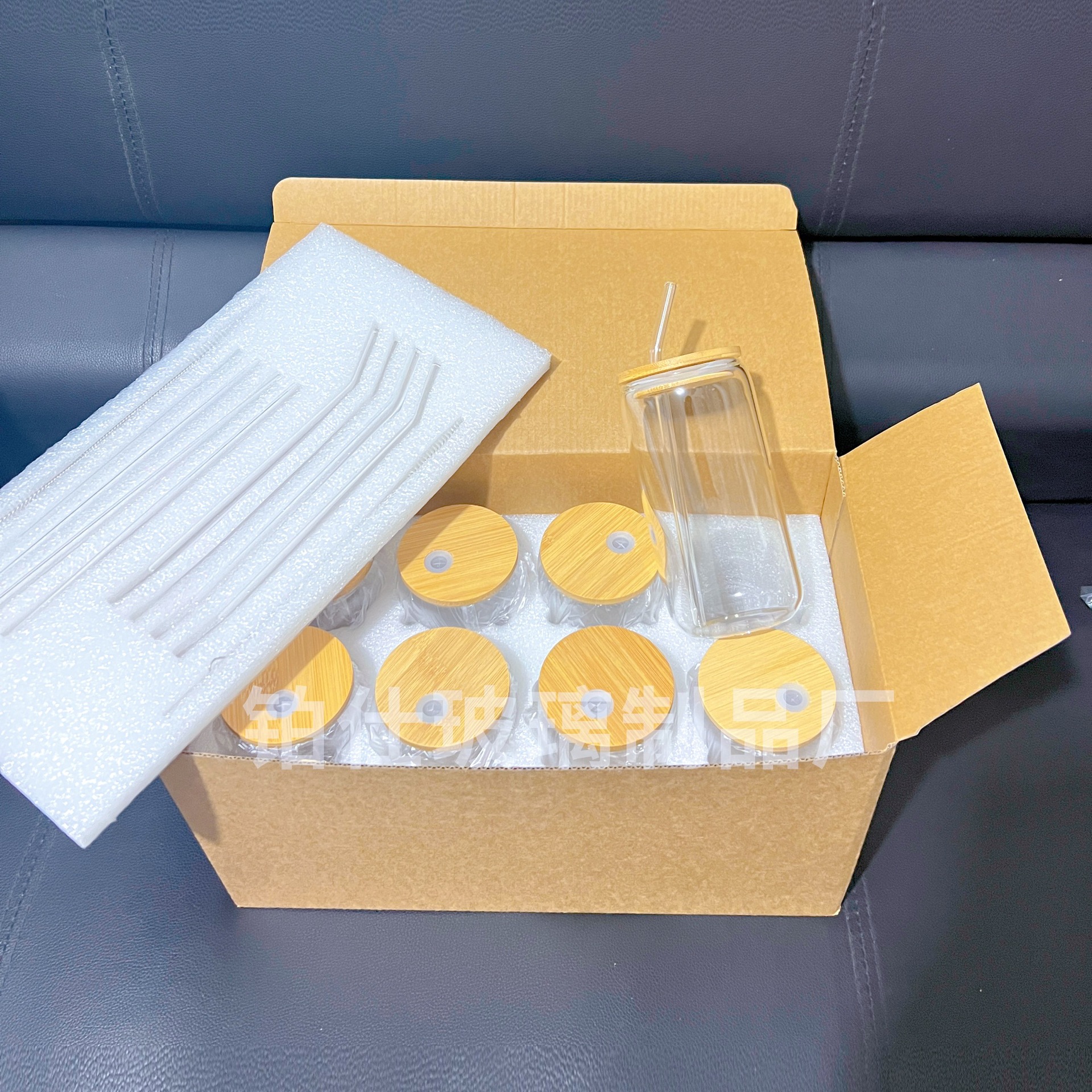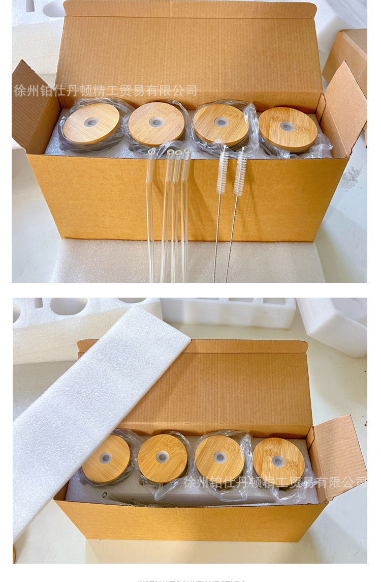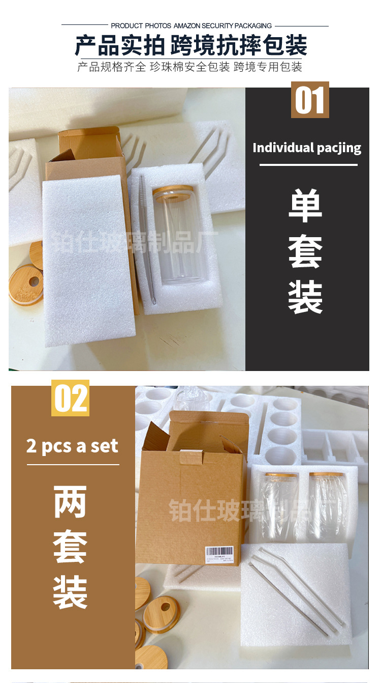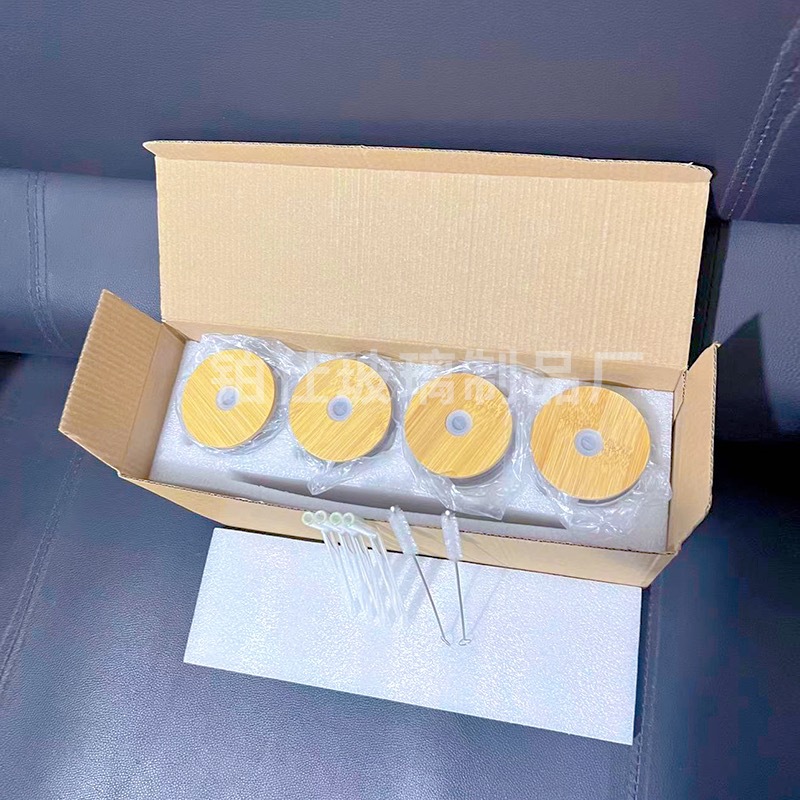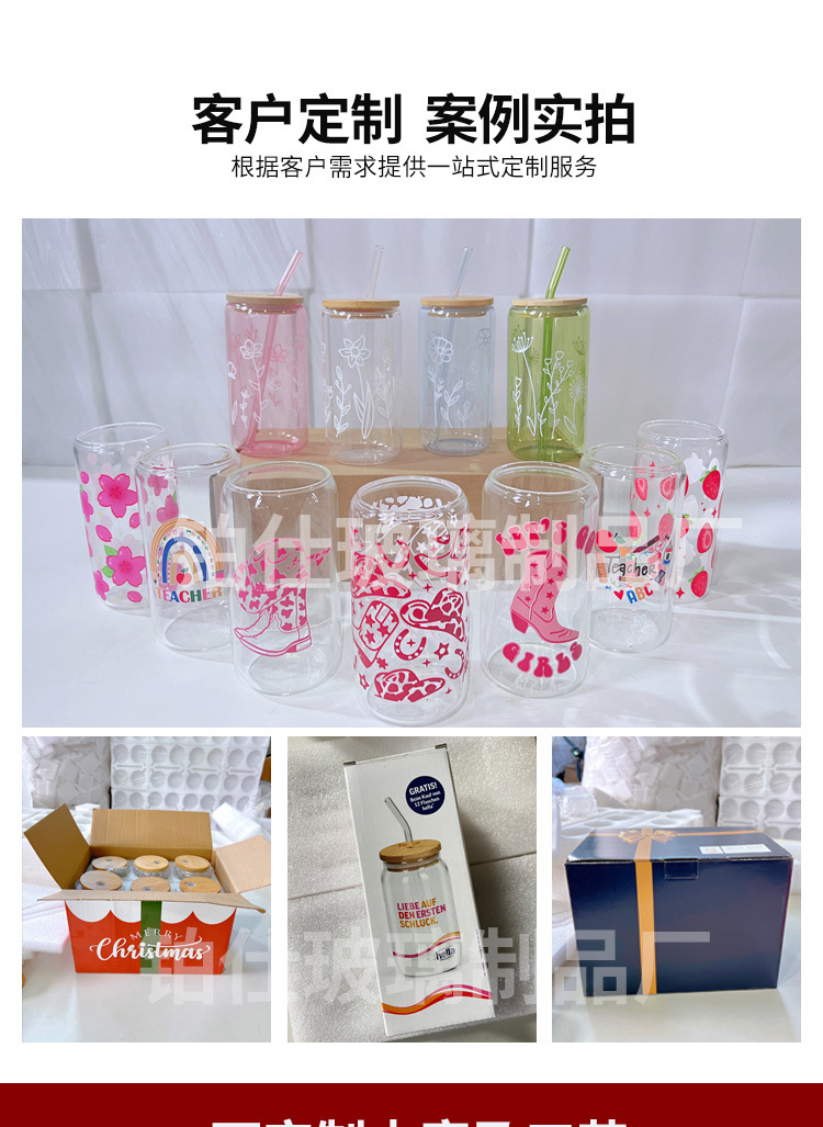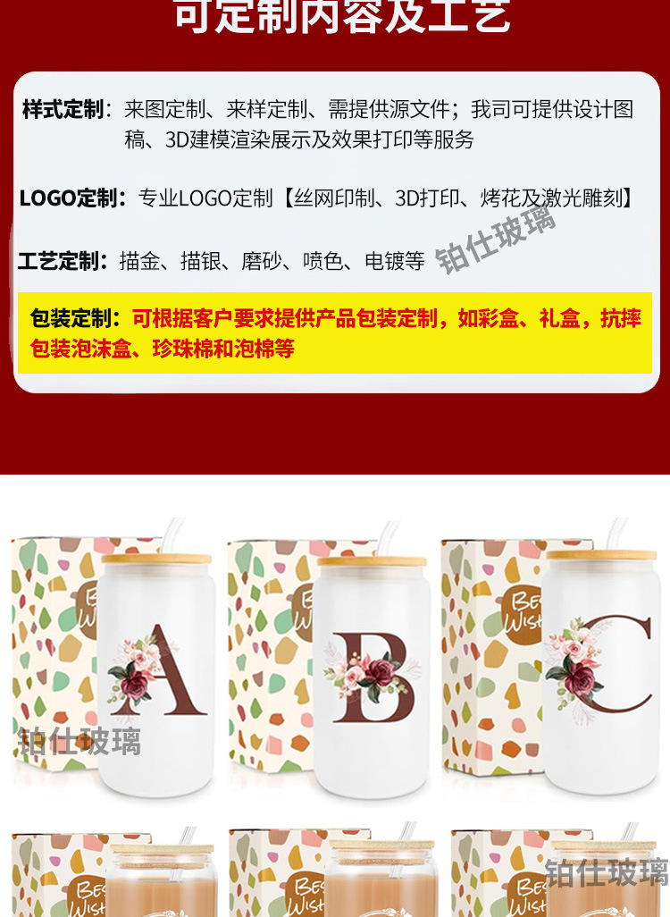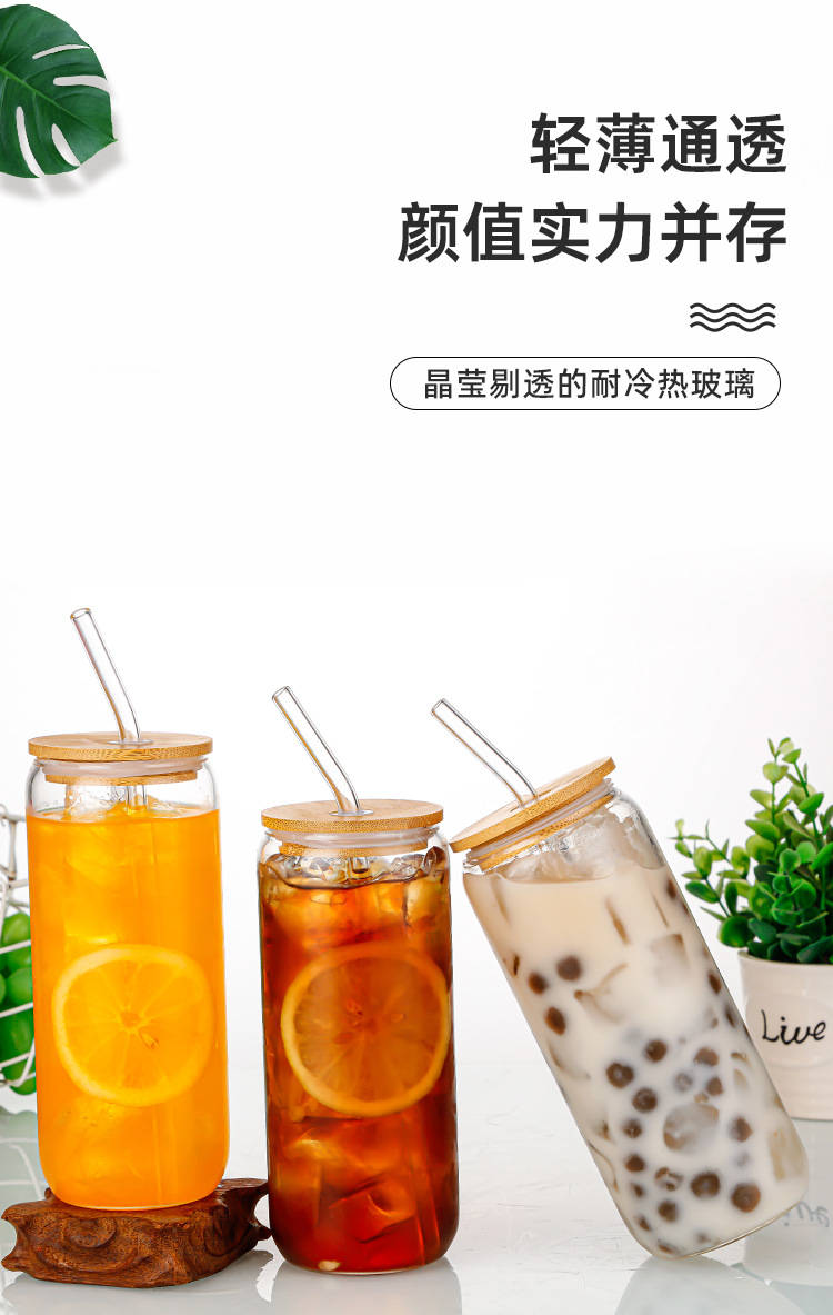跨境亚马逊带竹盖奶茶可乐杯可印LOGO高颜值果汁冷饮玻璃可乐杯