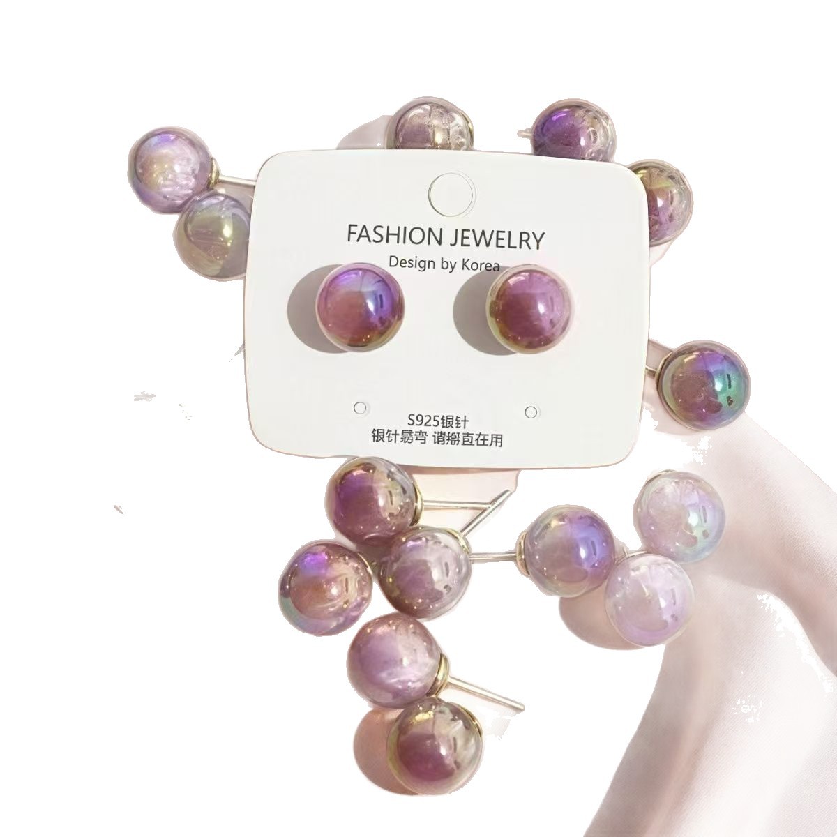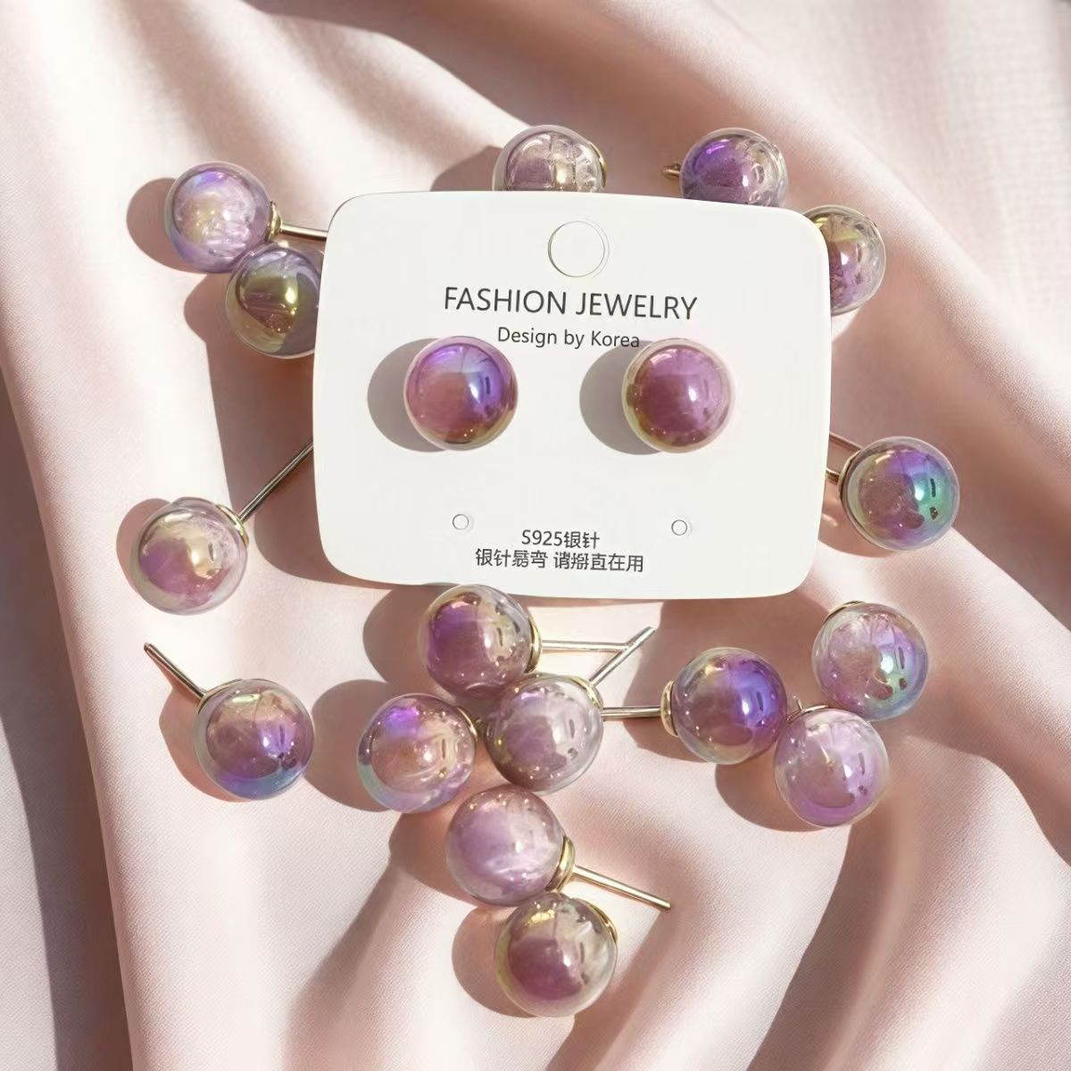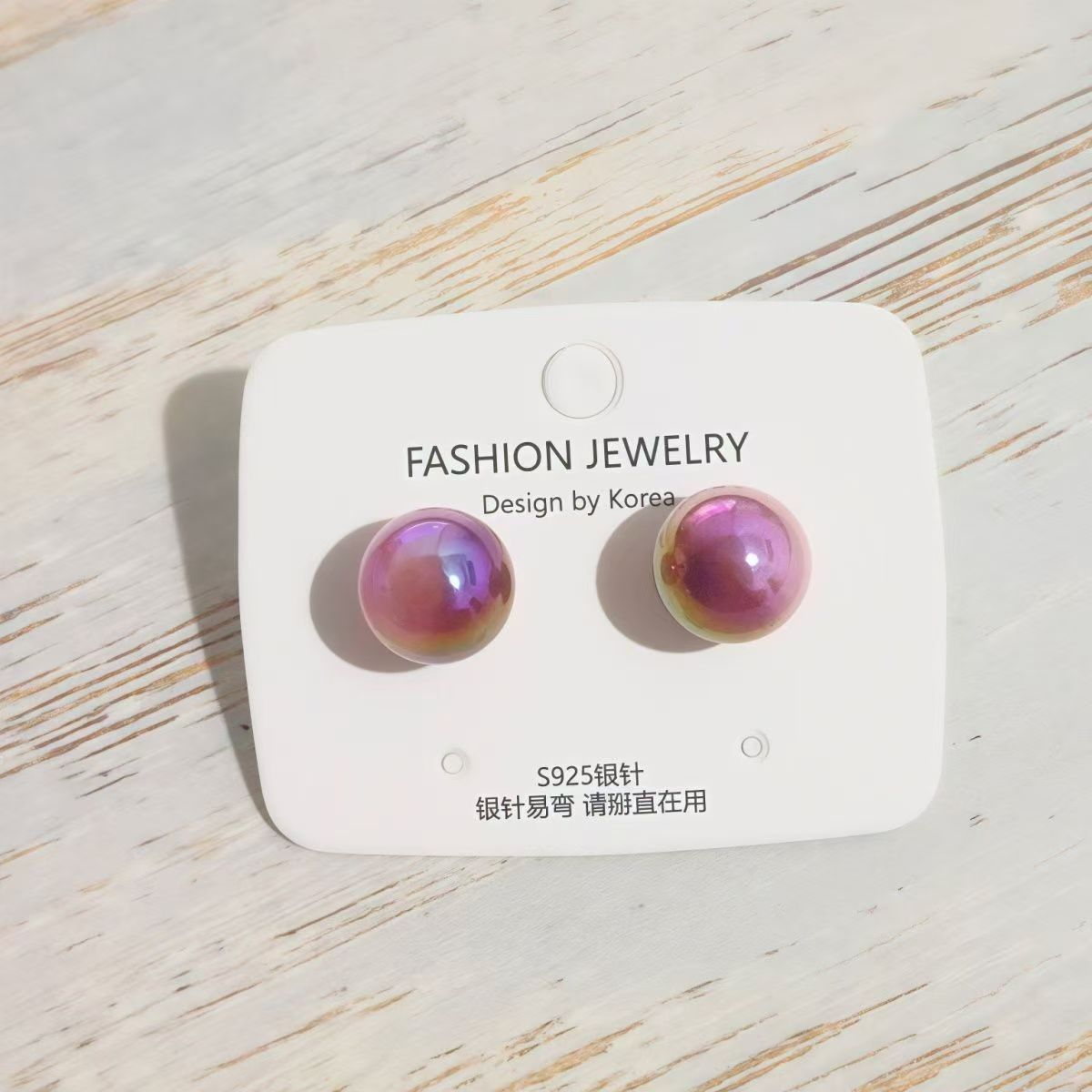 夏季银针12MM幻彩人鱼姬珍珠少女心耳钉韩版感气质糖果色耳环