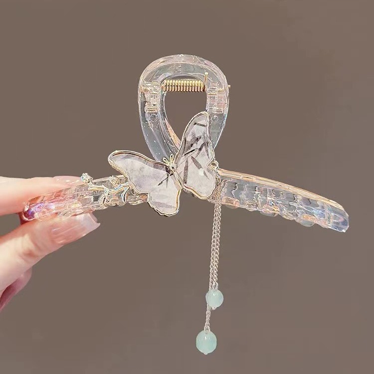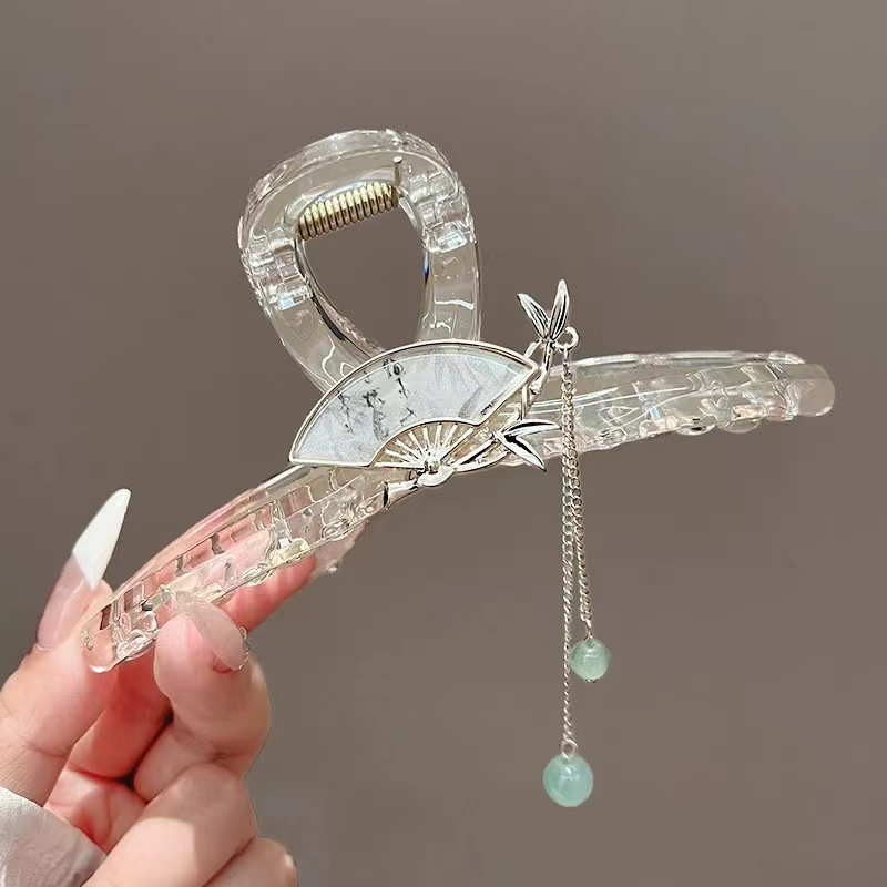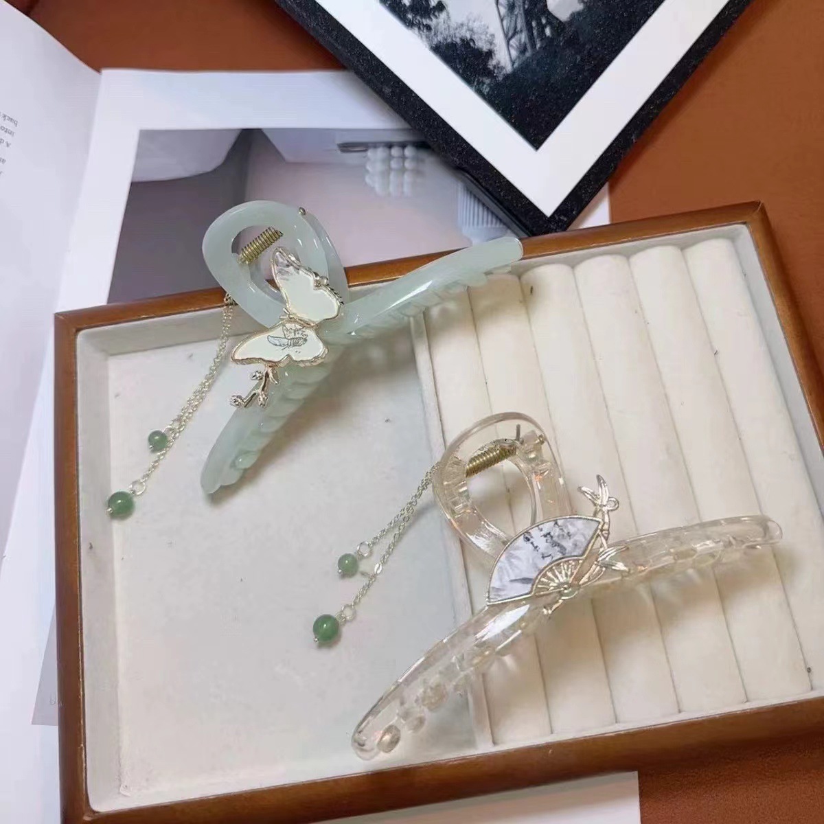 新中式感流苏发夹女后脑勺大号抓夹盘发鲨鱼夹子国风发抓头饰