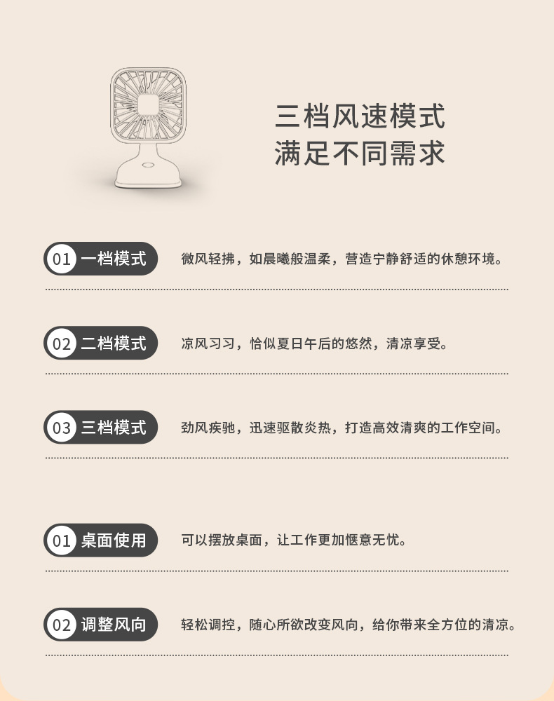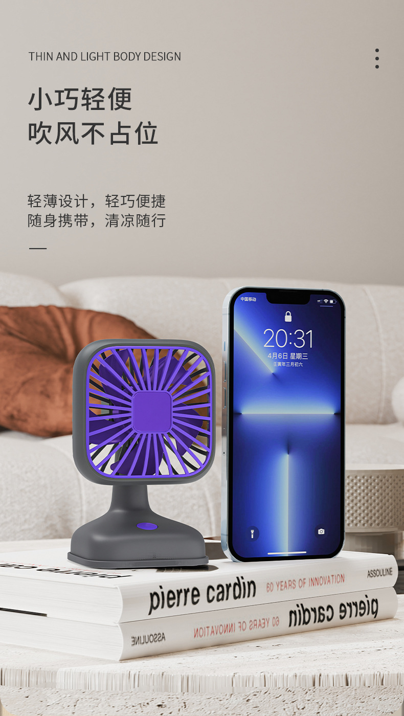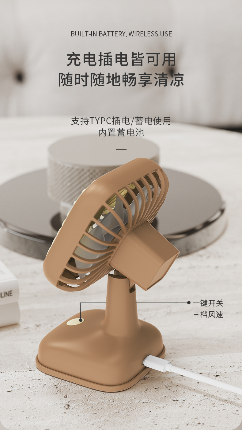 桌面小巧台式风扇 USB充电式小风扇迷你办公室桌面三档调速电风扇