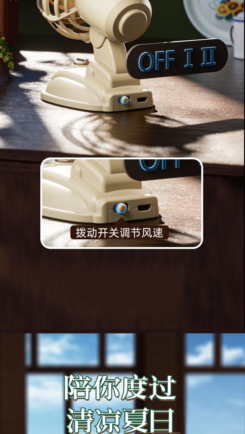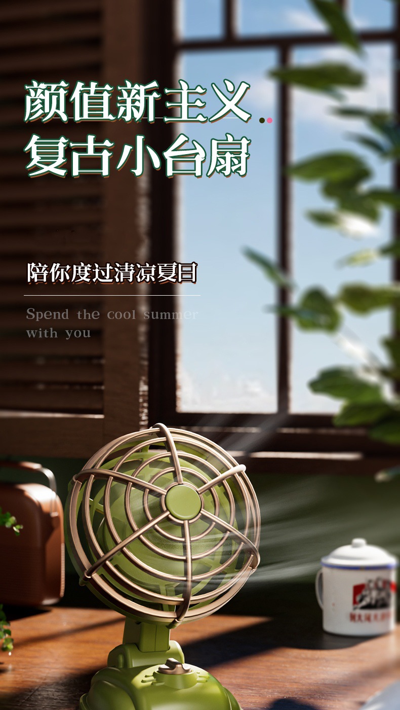复古迷你桌面风扇usb充电宿舍书桌台扇户外便携式手持小风扇跨境