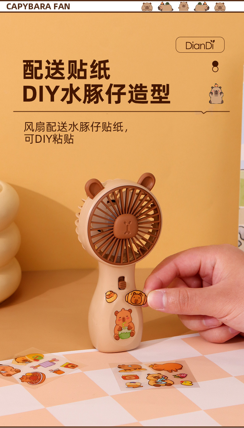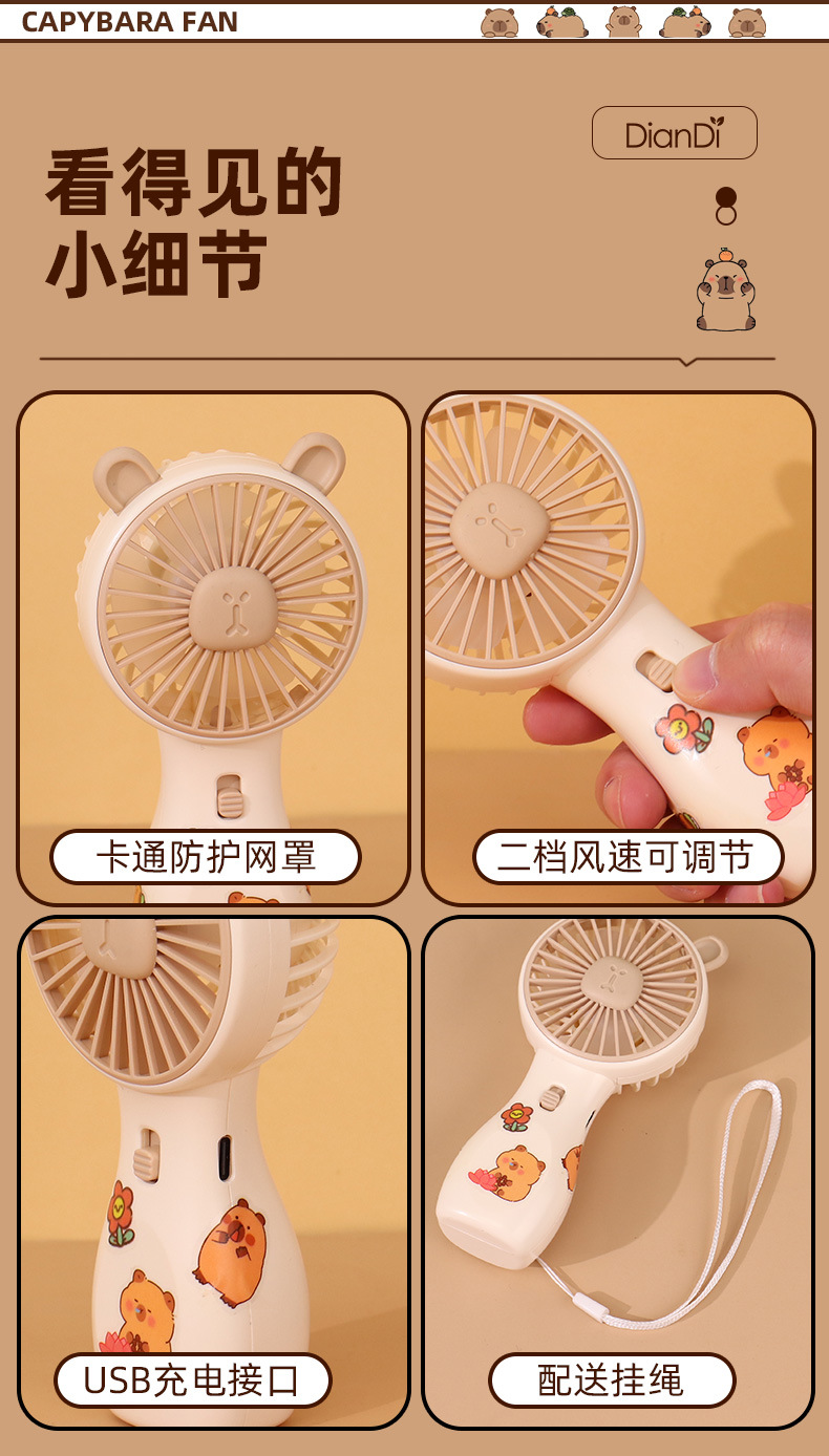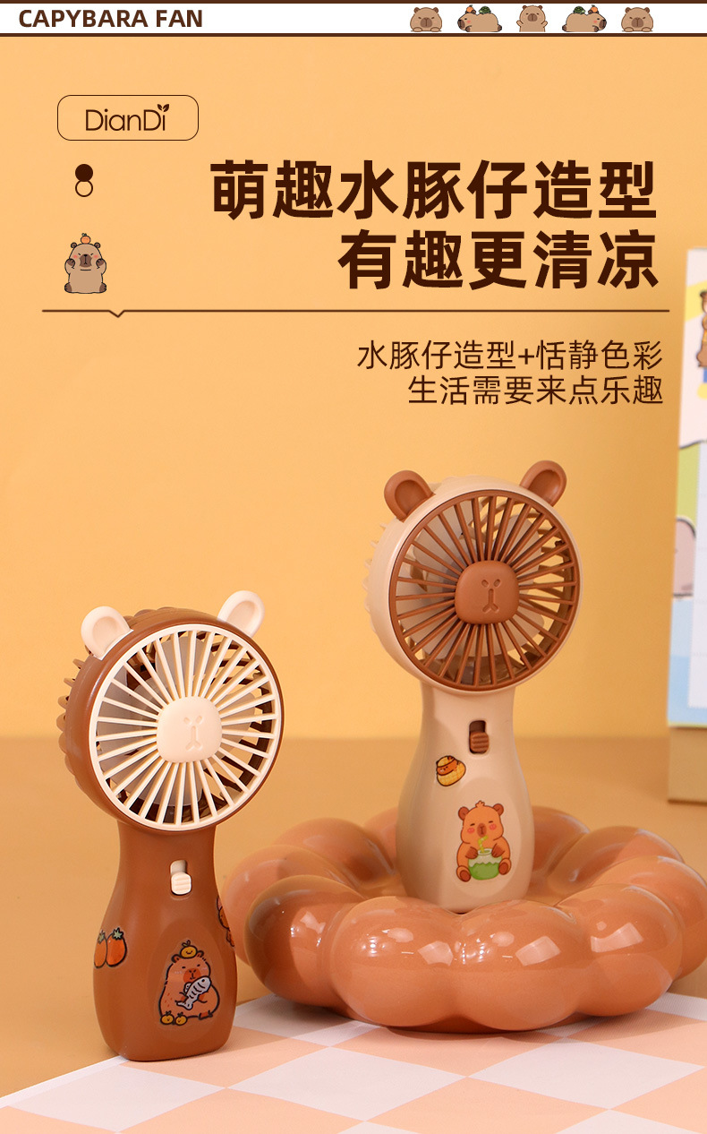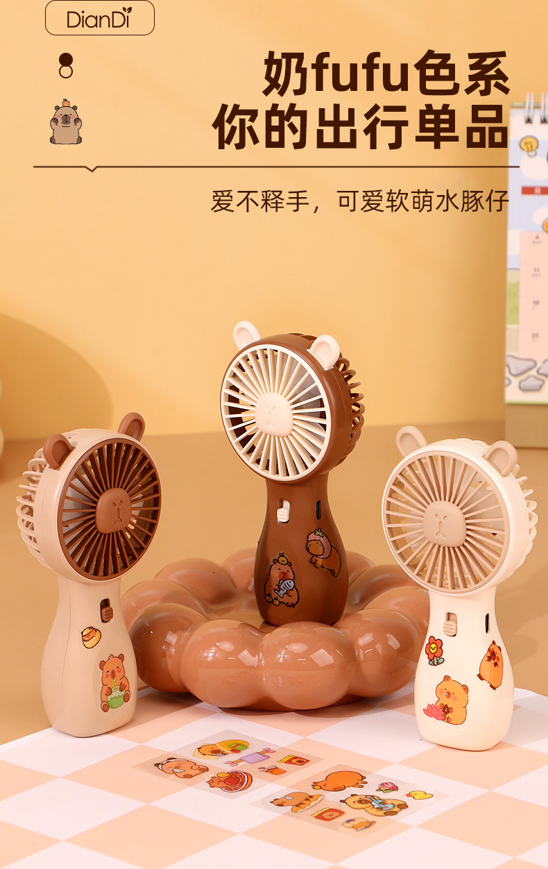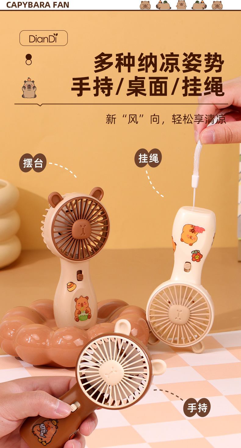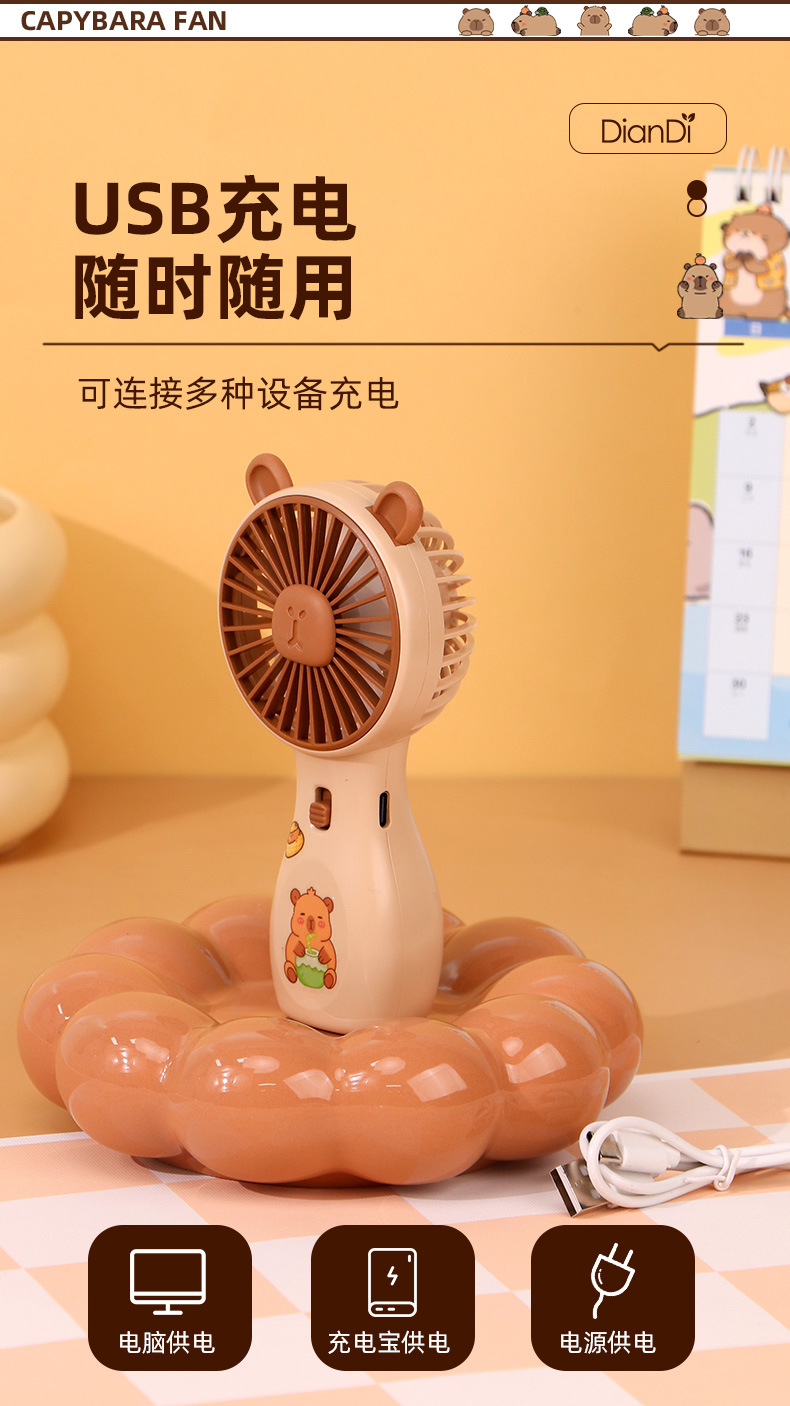 新款水豚卡通小风扇usb迷你手持风扇便携小型桌面电风扇礼品批发