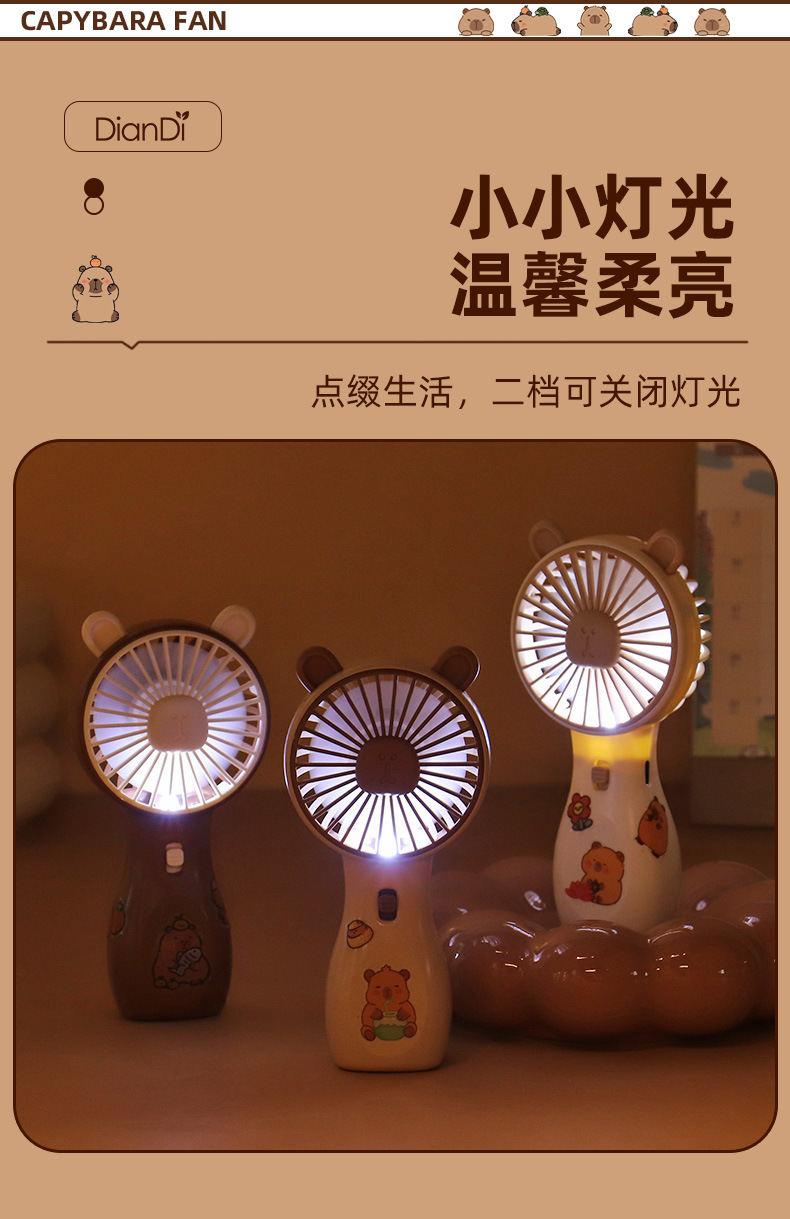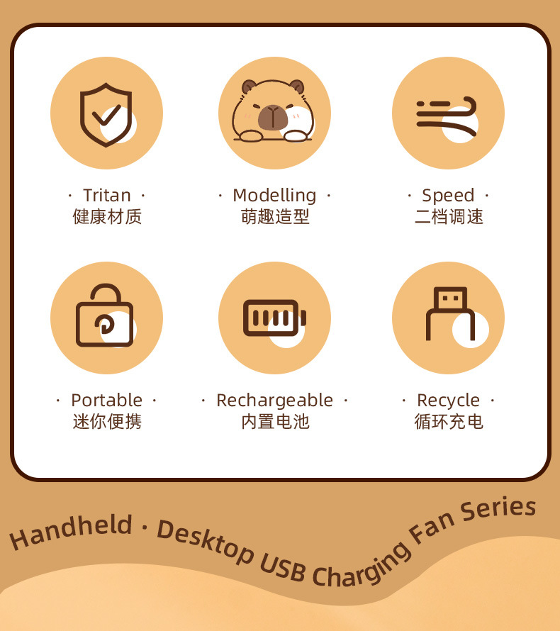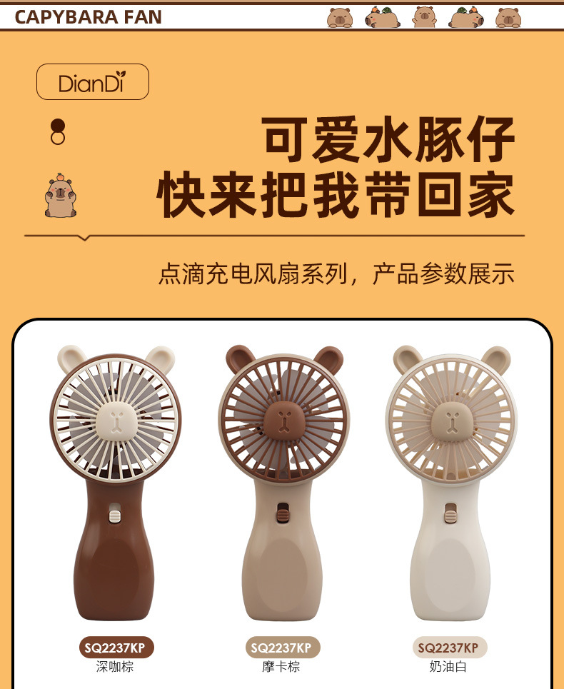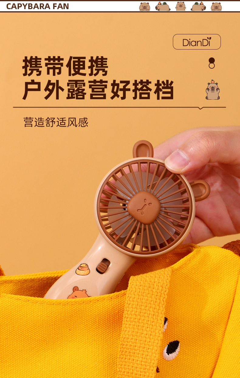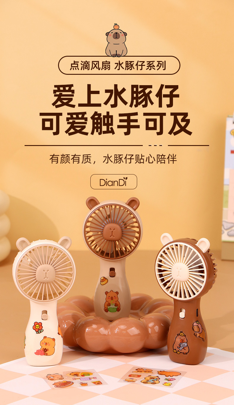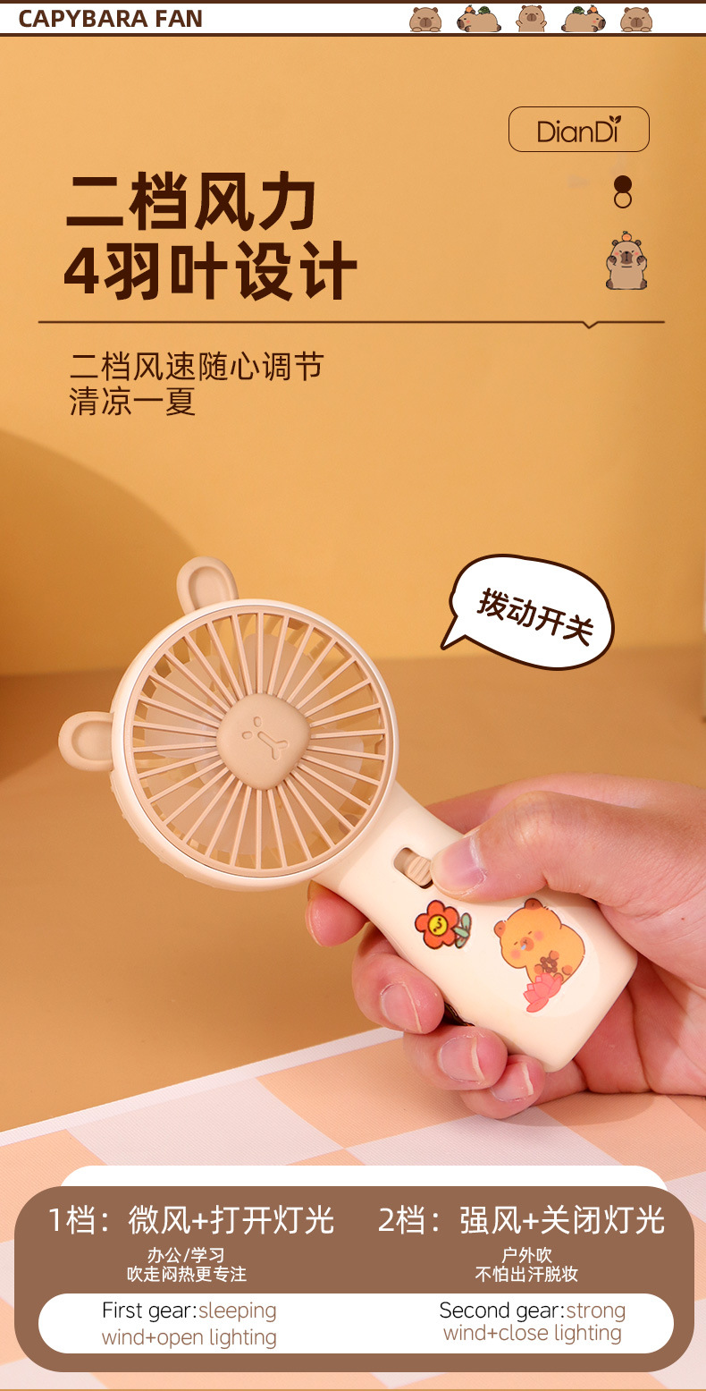 新款水豚卡通小风扇usb迷你手持风扇便携小型桌面电风扇礼品批发