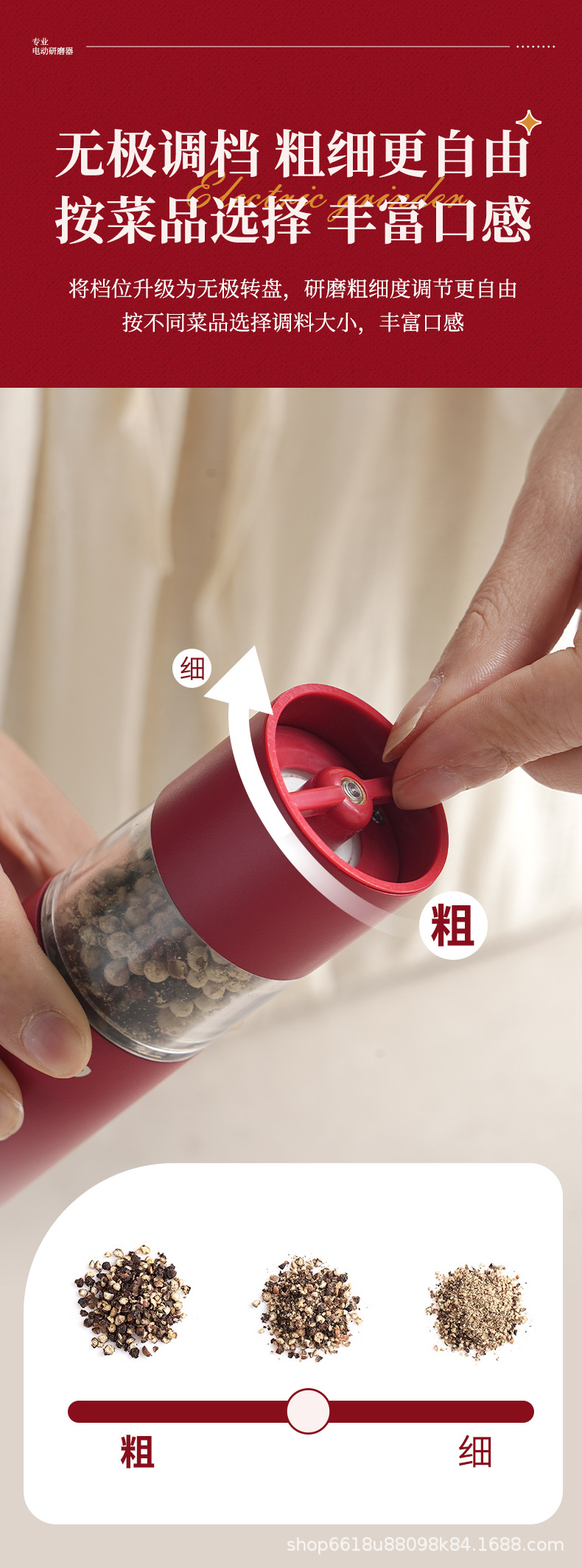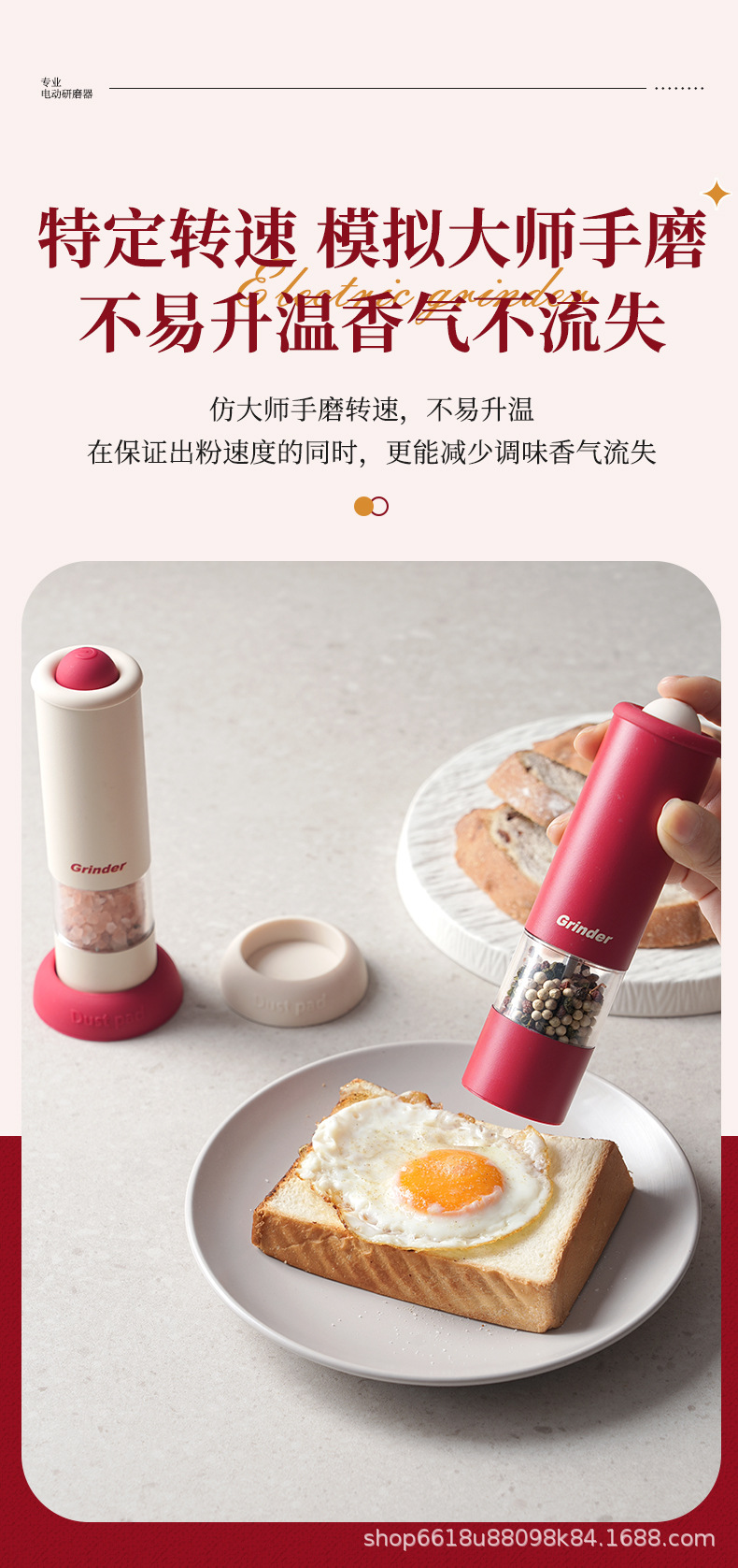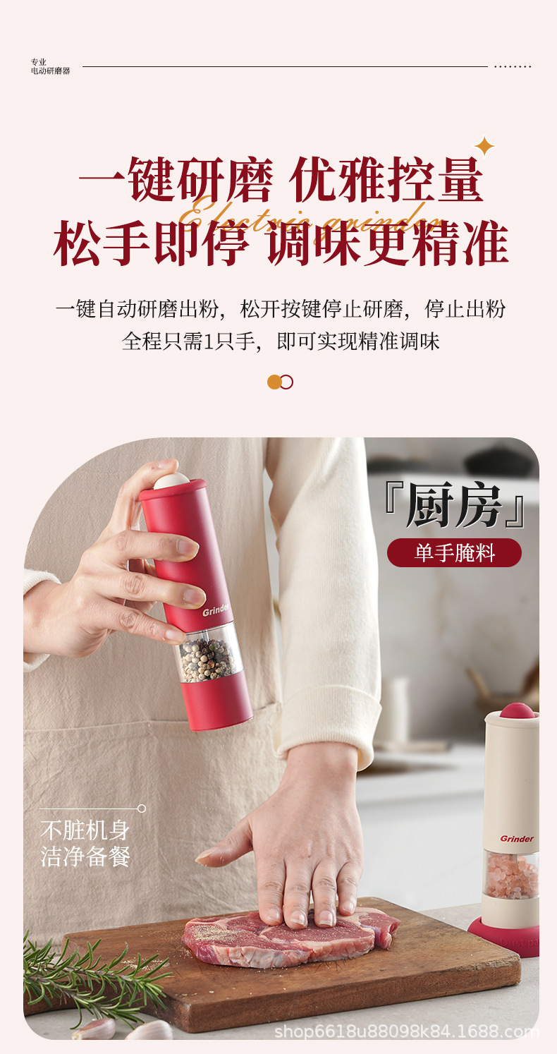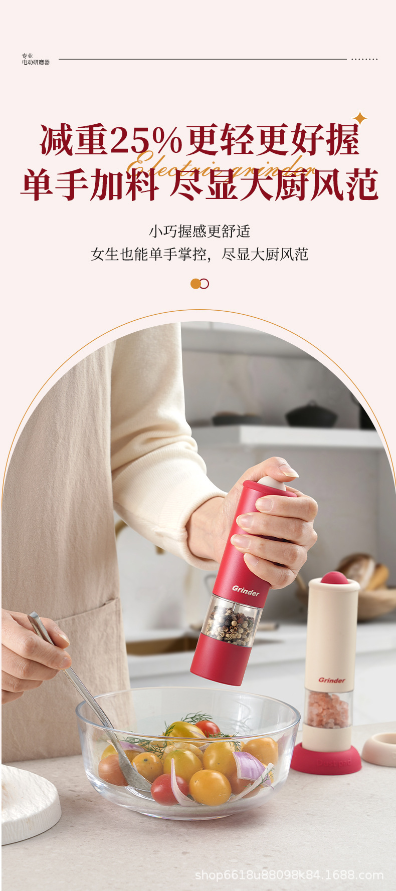 【自主设计】胡椒研磨器家用电动式海盐不锈钢硅胶厨房可调节粗细
