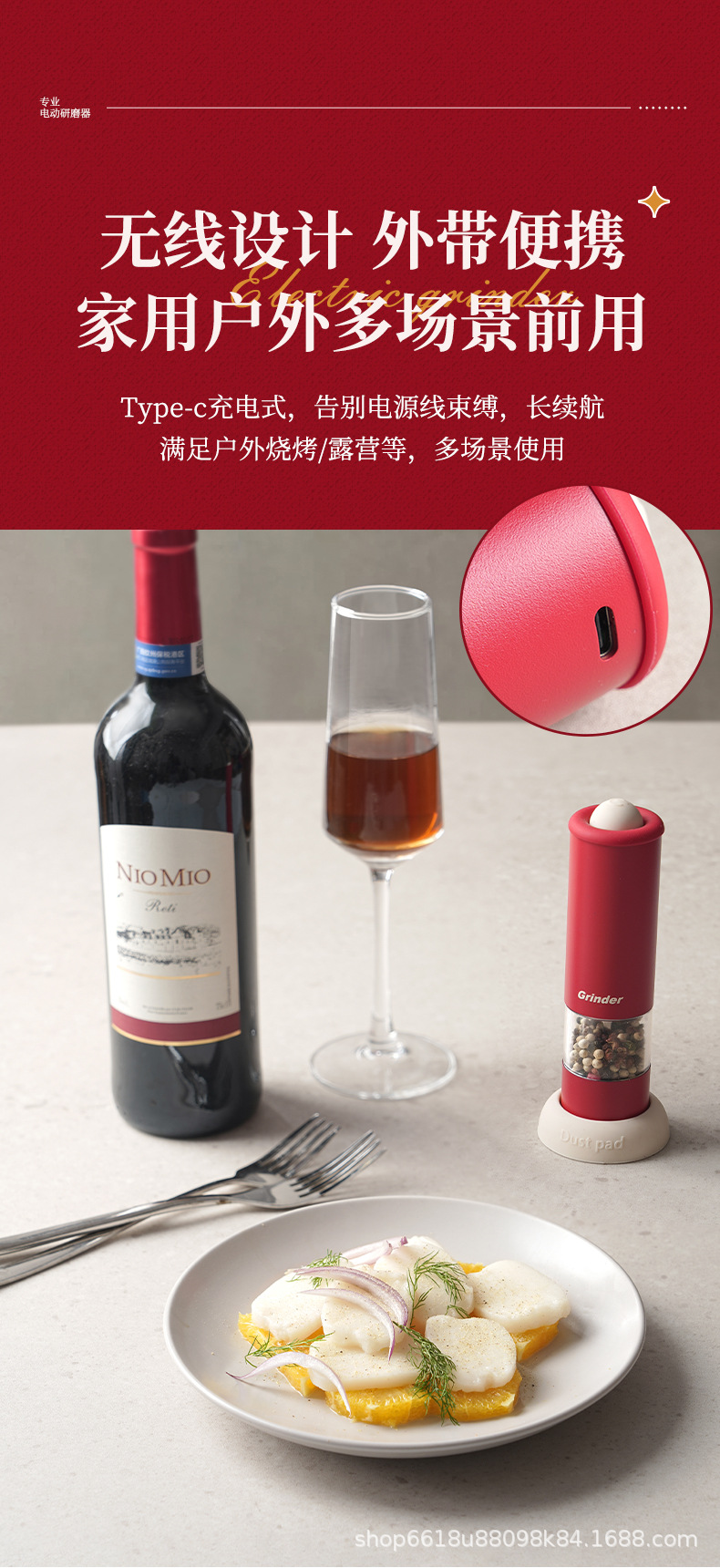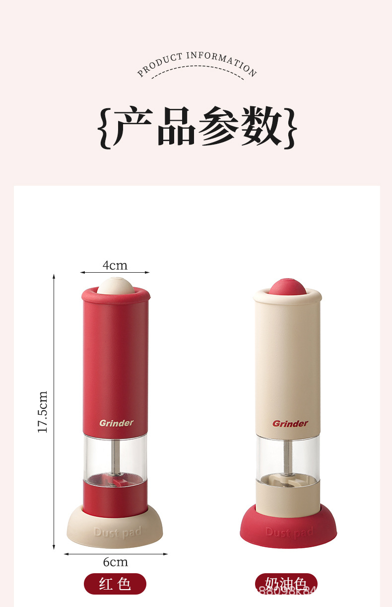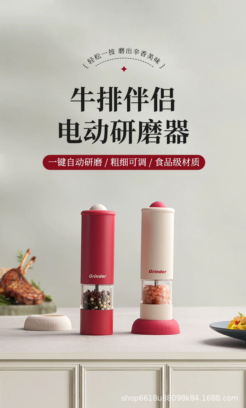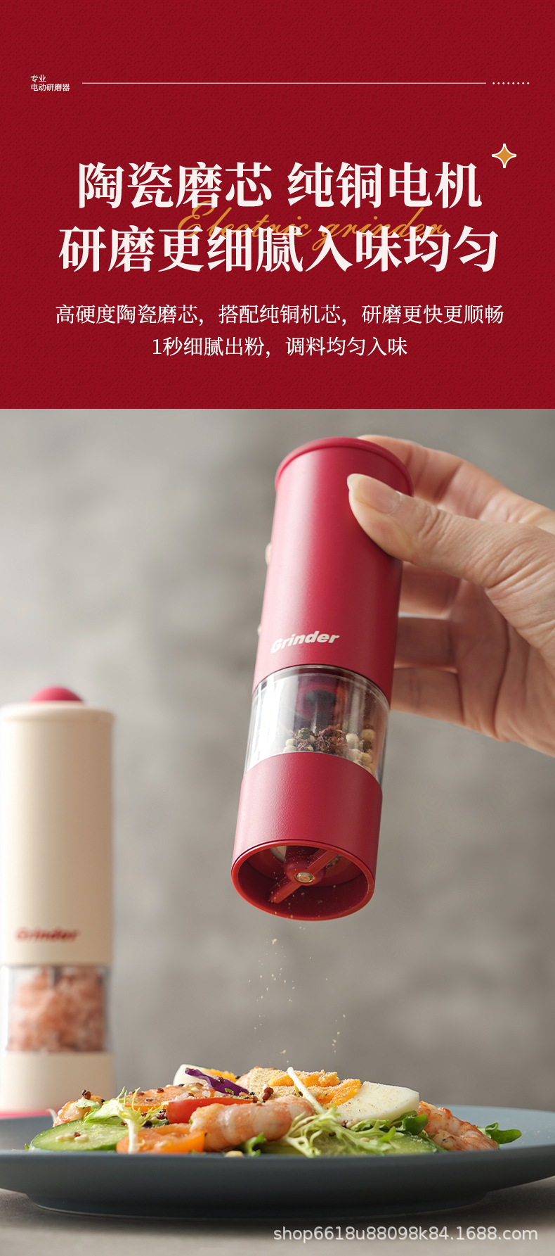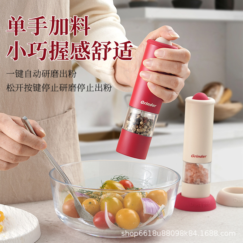 【自主设计】胡椒研磨器家用电动式海盐不锈钢硅胶厨房可调节粗细