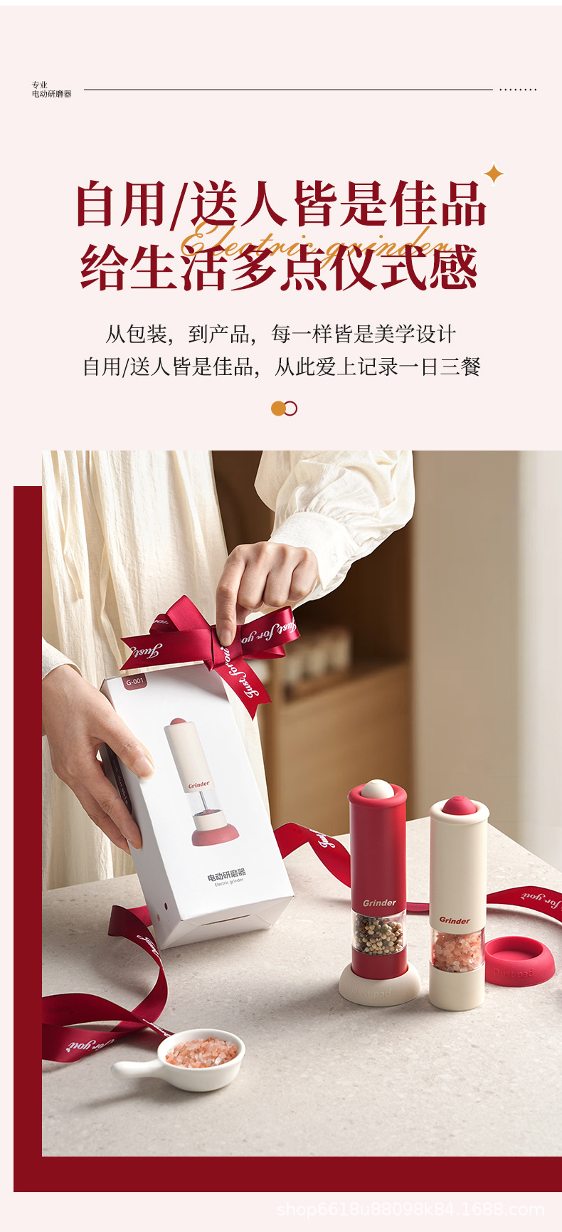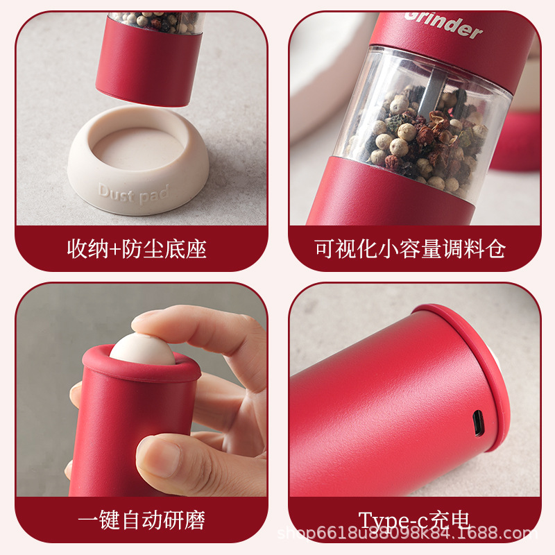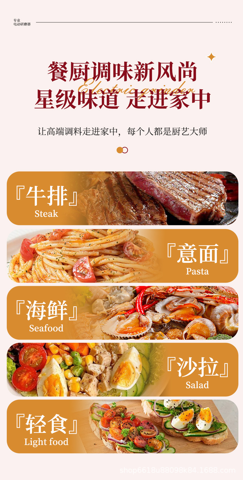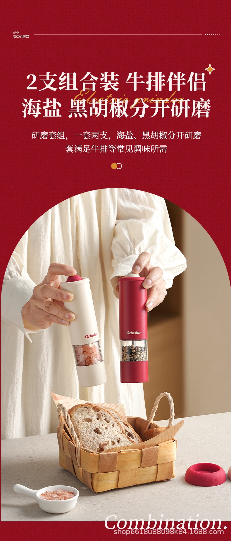 【自主设计】胡椒研磨器家用电动式海盐不锈钢硅胶厨房可调节粗细